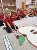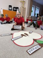 Celem zajęć było zachęcenie dzieci do spożywania owoców- w tym dniu w szczególności jabłek i to pod różnymi postaciami z powodu walorów zdrowotnych i odżywczych.