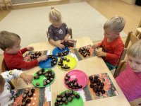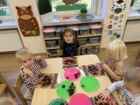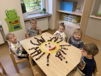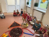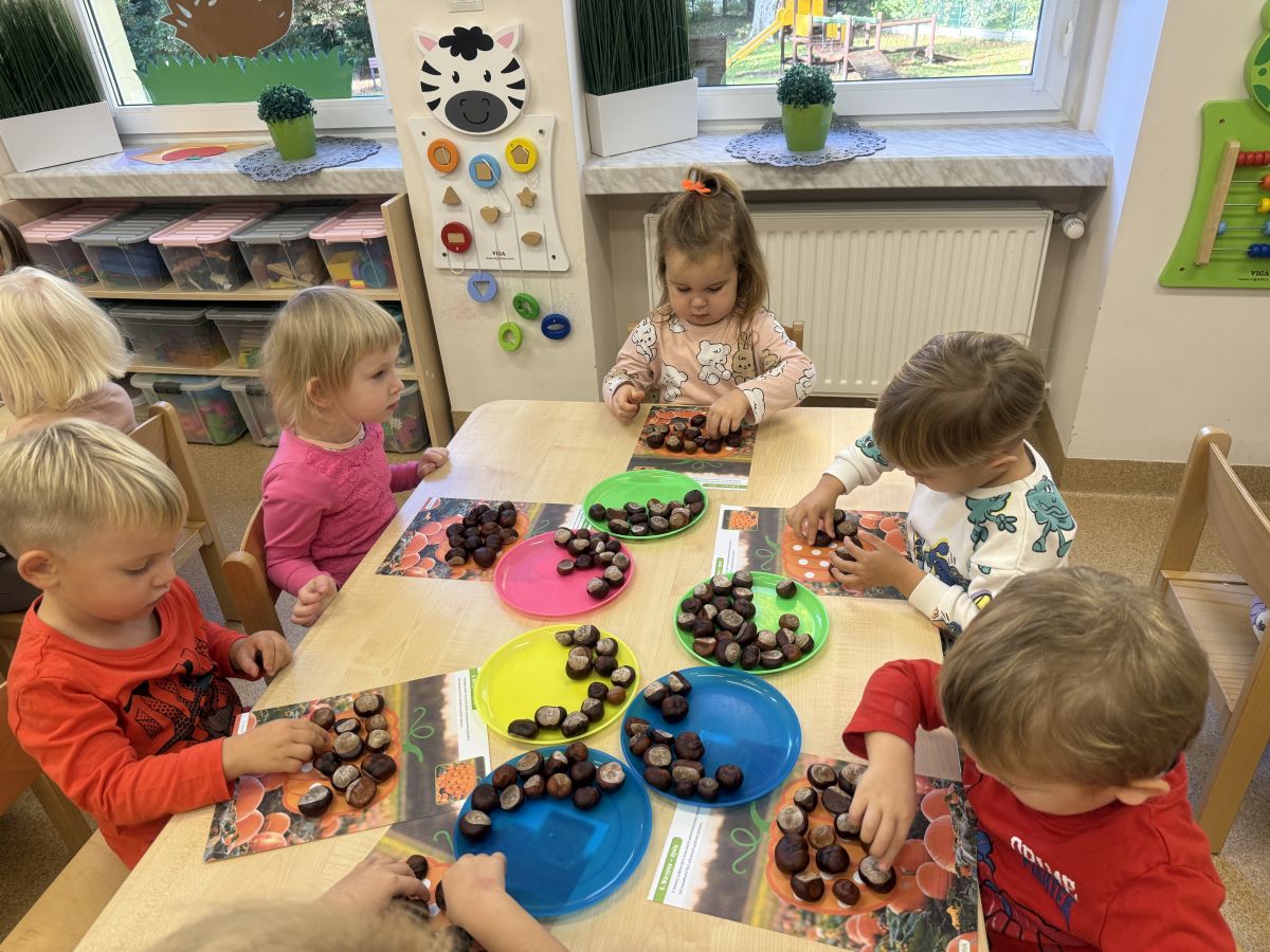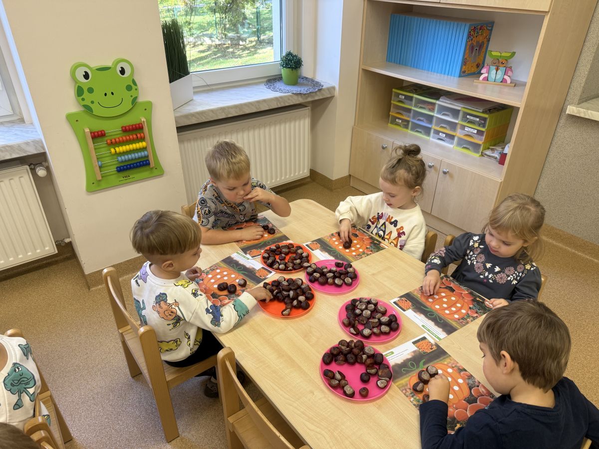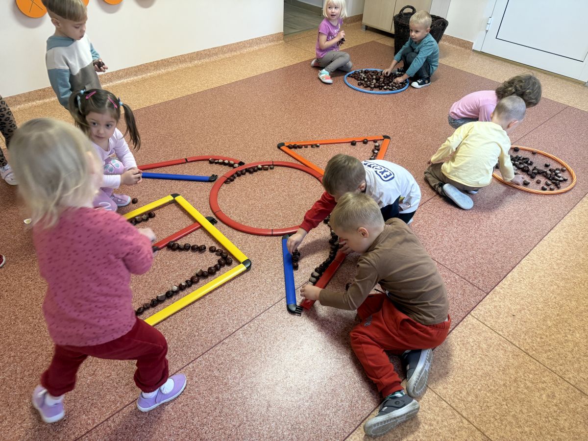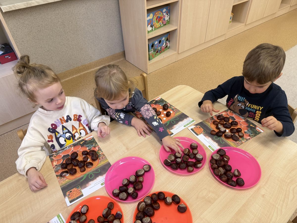 Jesień to pora roku podczas której można na wiele sposobów bawić się darami przyrody, zwłaszcza kasztanami. Krasnale w swojej grupie wykorzystały kasztany do zabaw matematycznych, doskonalimy wtedy umiejętność przeliczania na konkretach, układaliśmy z kasztanów słoneczka oraz tworzyliśmy prace plastyczne .Po zajęciach wybraliśmy się na jesienny spacer aby podziwiać jesienną aurę. Zabawy kasztanami oraz spacer dostarczył przedszkolakom wiele wrażeń i radości.