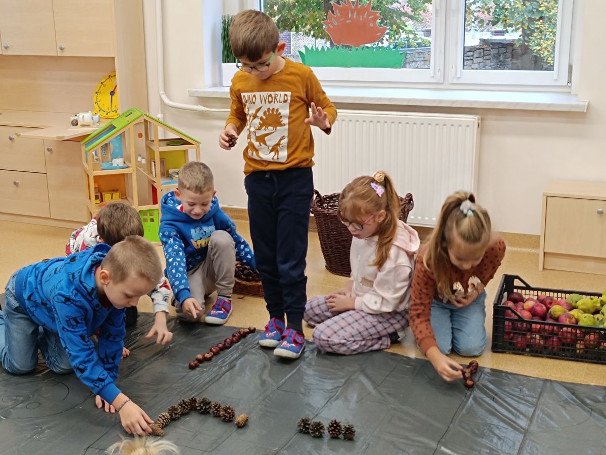 Zajęcia były doskonałą okazją do rozmów o zmianach zachodzących jesienią i o znaczeniu przyrody w naszym życiu.