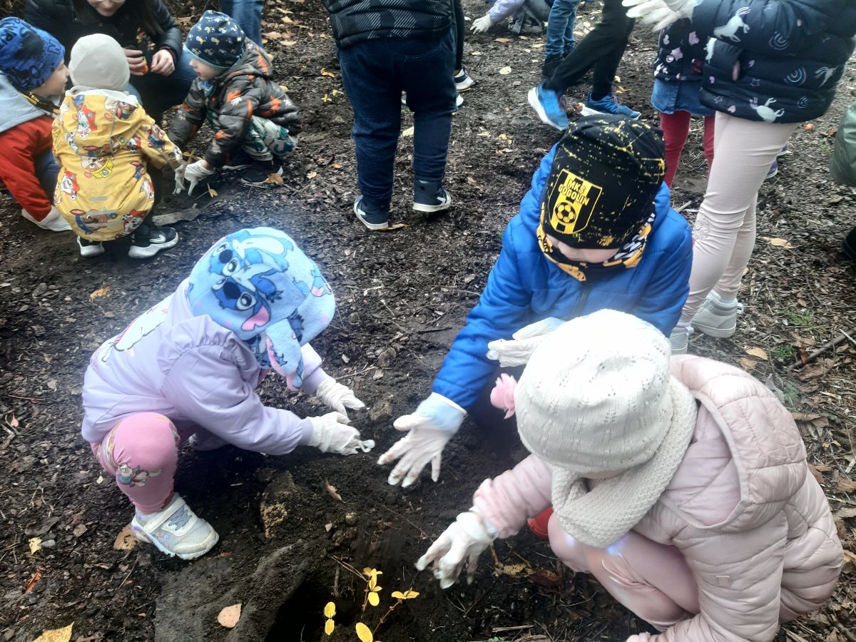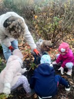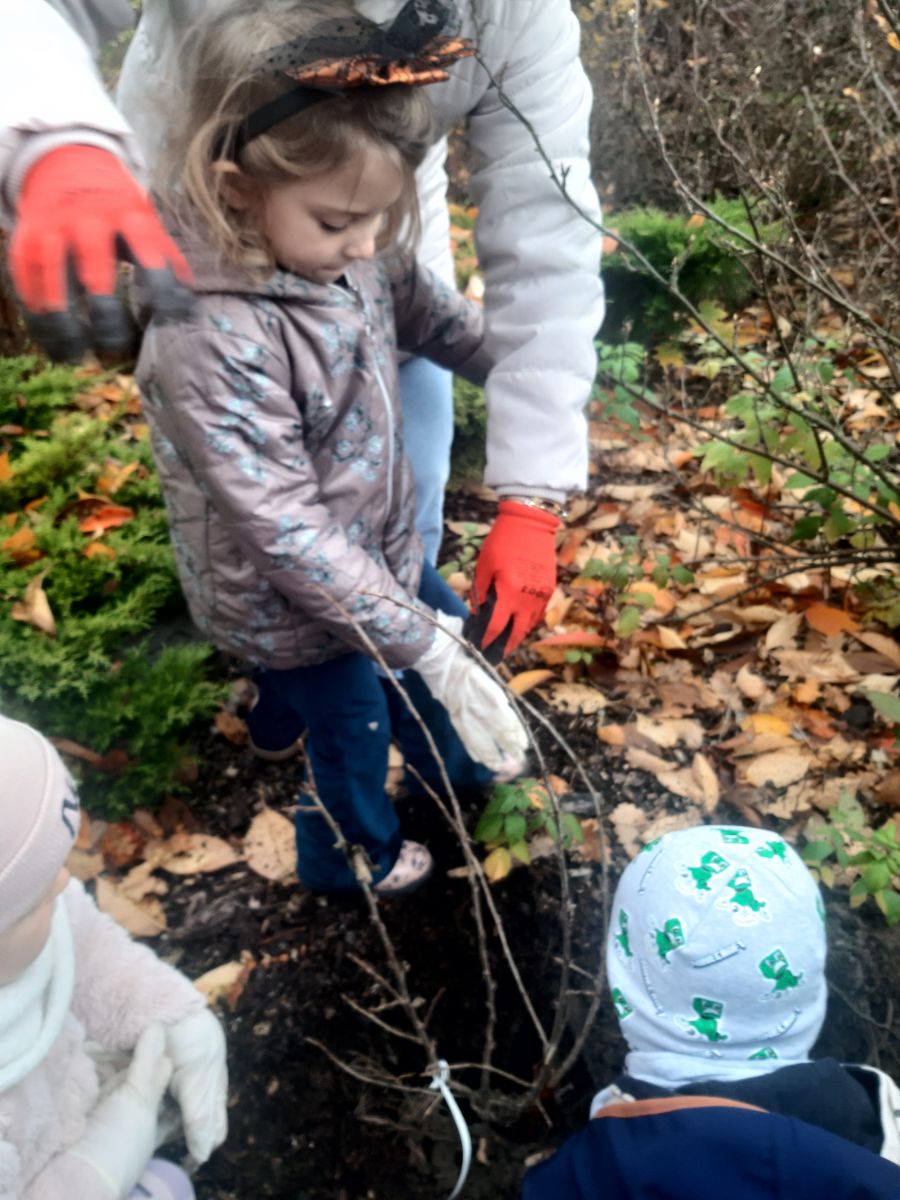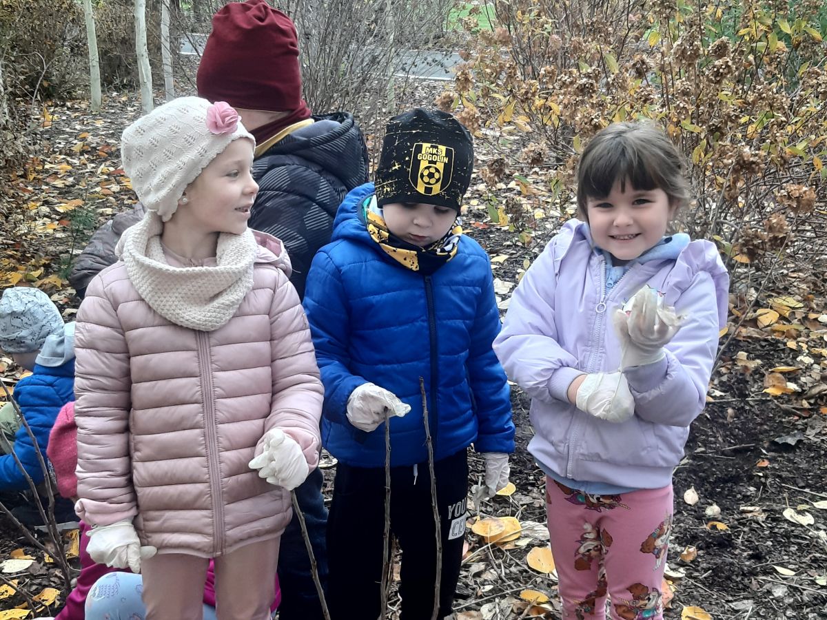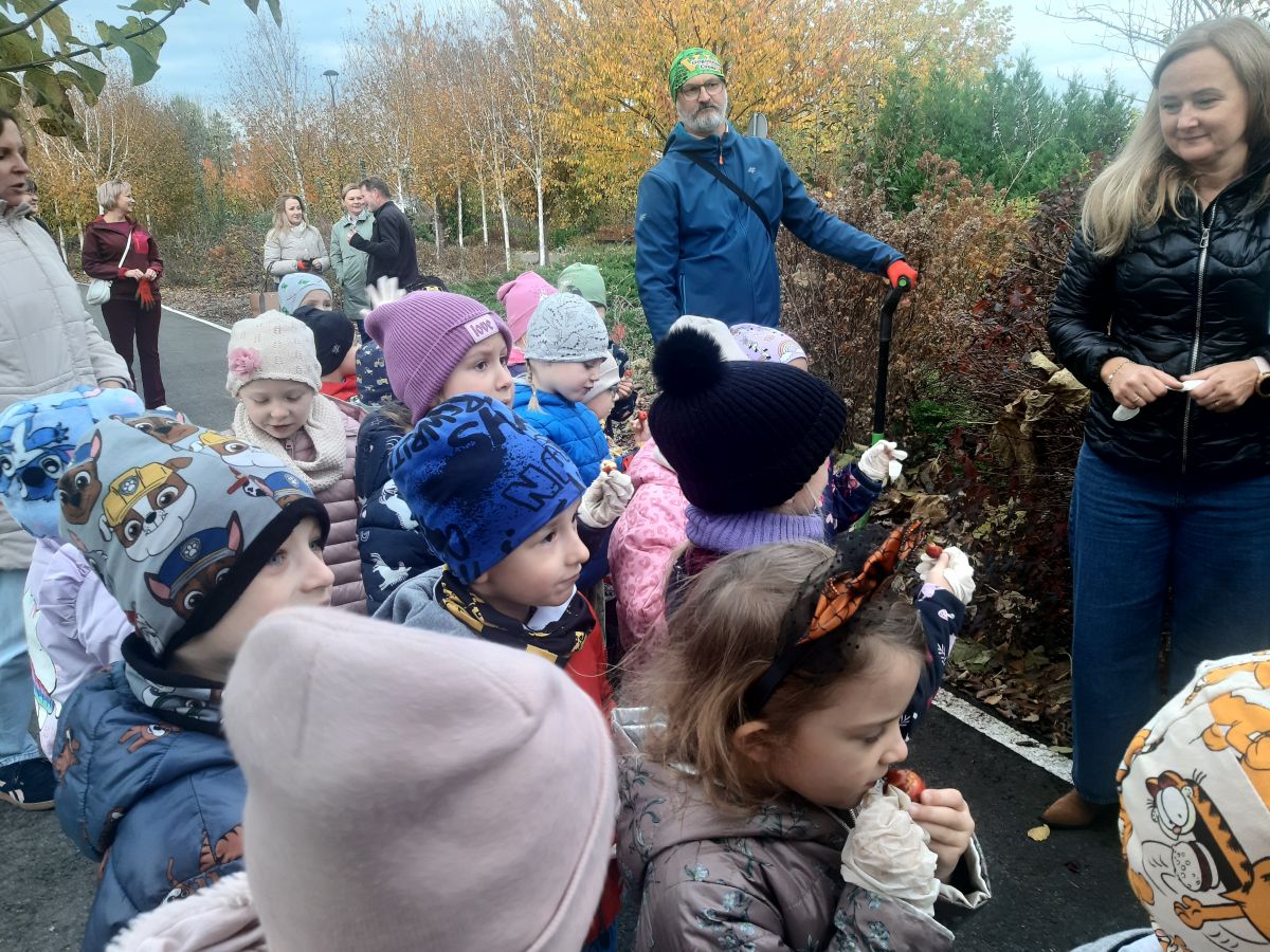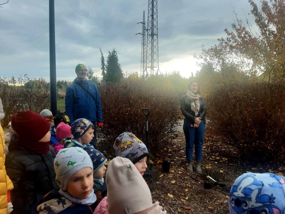 W czwartek 30.10.2025 dzieci z grupy "Motylki' uczestniczyły w zajęciach w "Owocowym Ogrodzie Miejskim" , gdzie wraz z zaproszonymi gośćmi oraz uczniami kl.4 sadziły krzewy owocowe. Podczas spotkania pod hasłem "Zostanie po nas bioróżnorodny ślad " przedszkolaki poznały również historię pierwszego sadu, który powstał w Gogolinie w dawnym wyrobisku kamienia wapiennego.