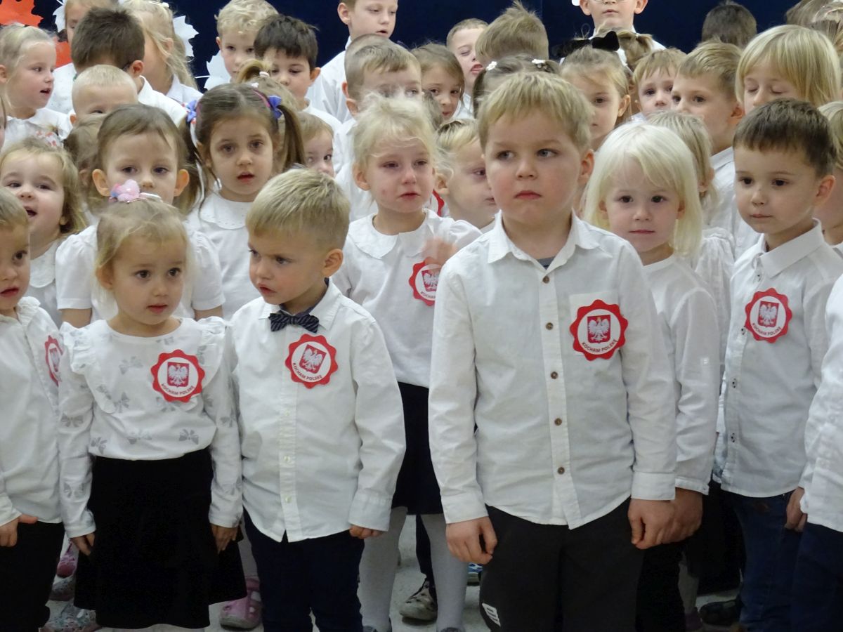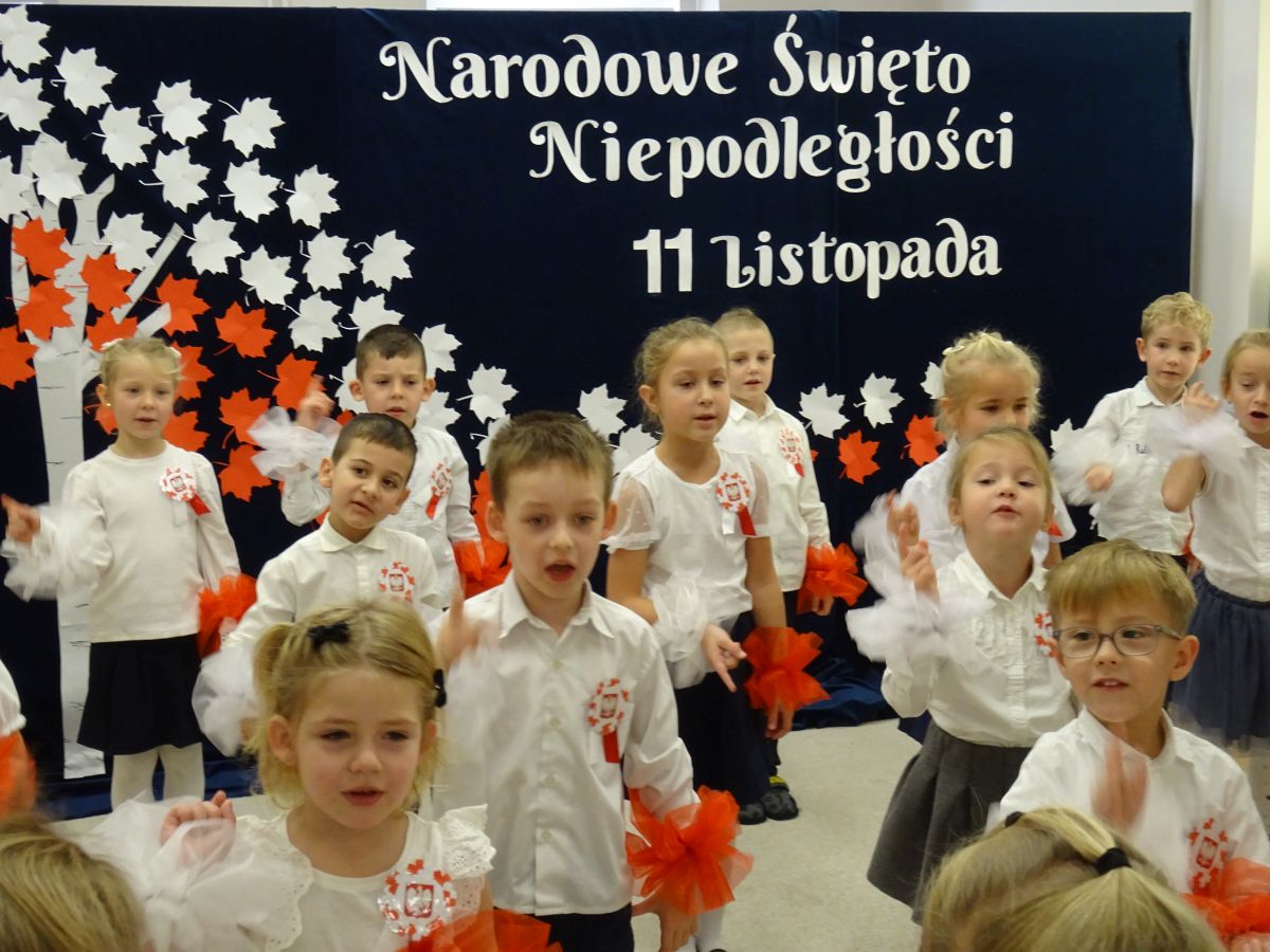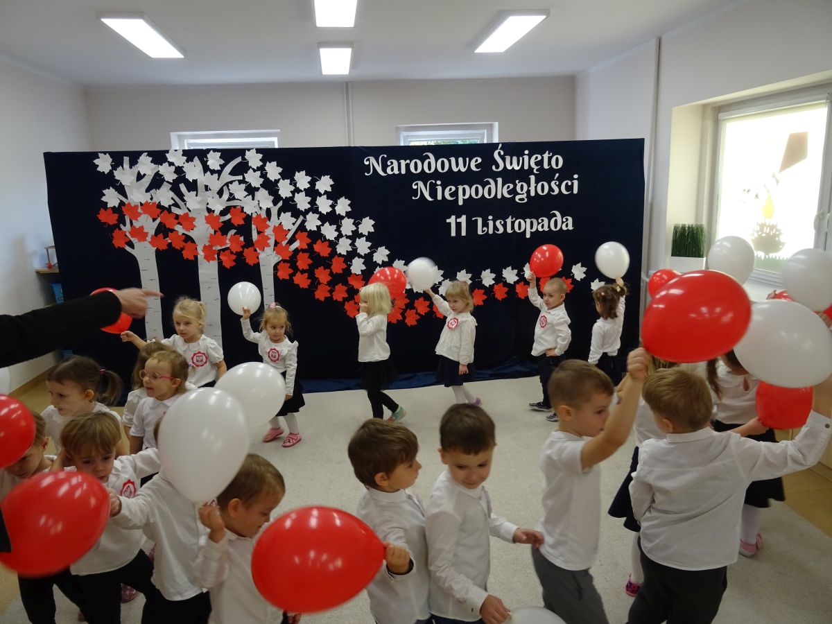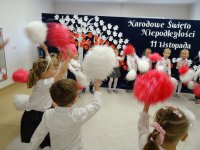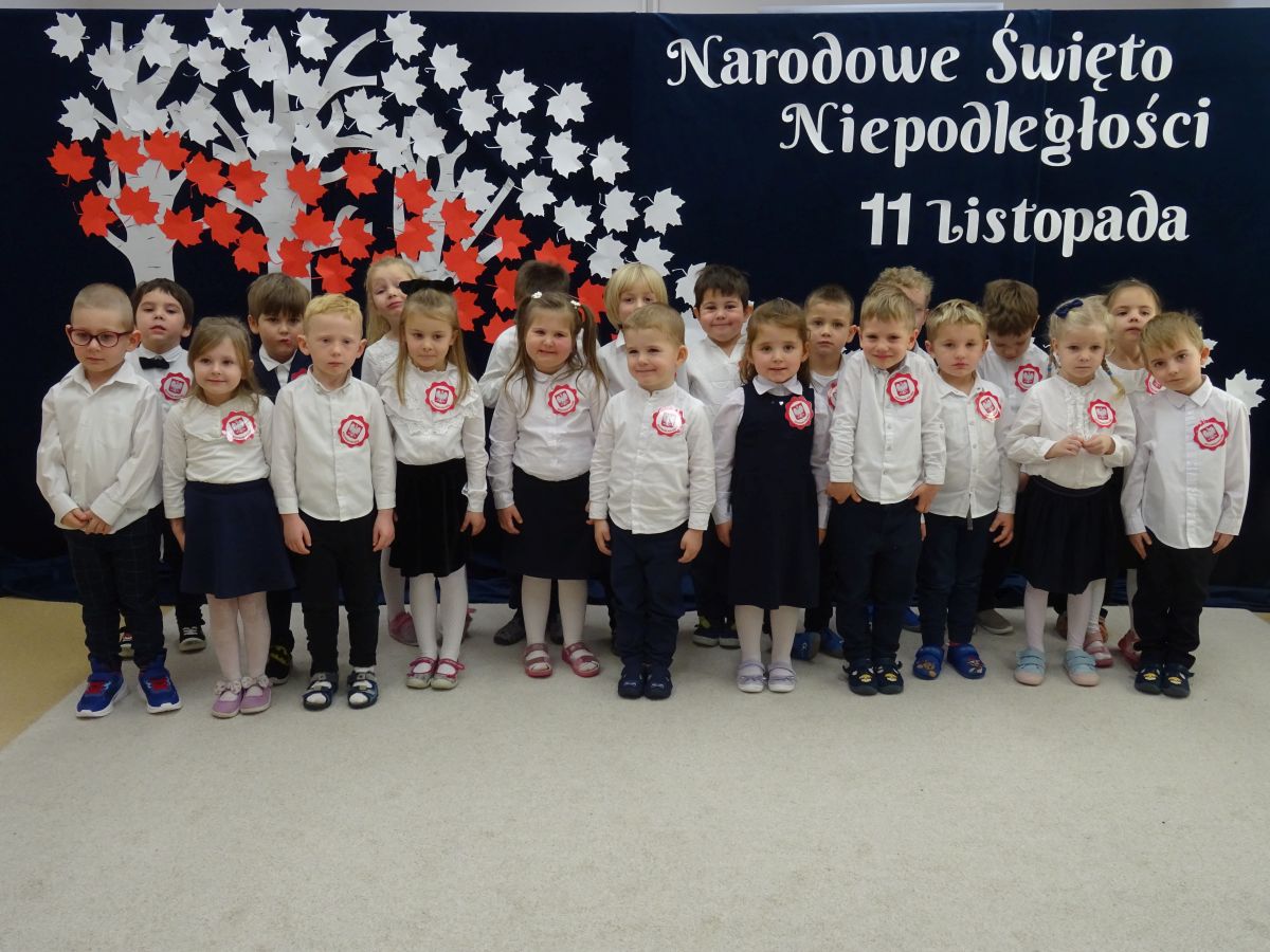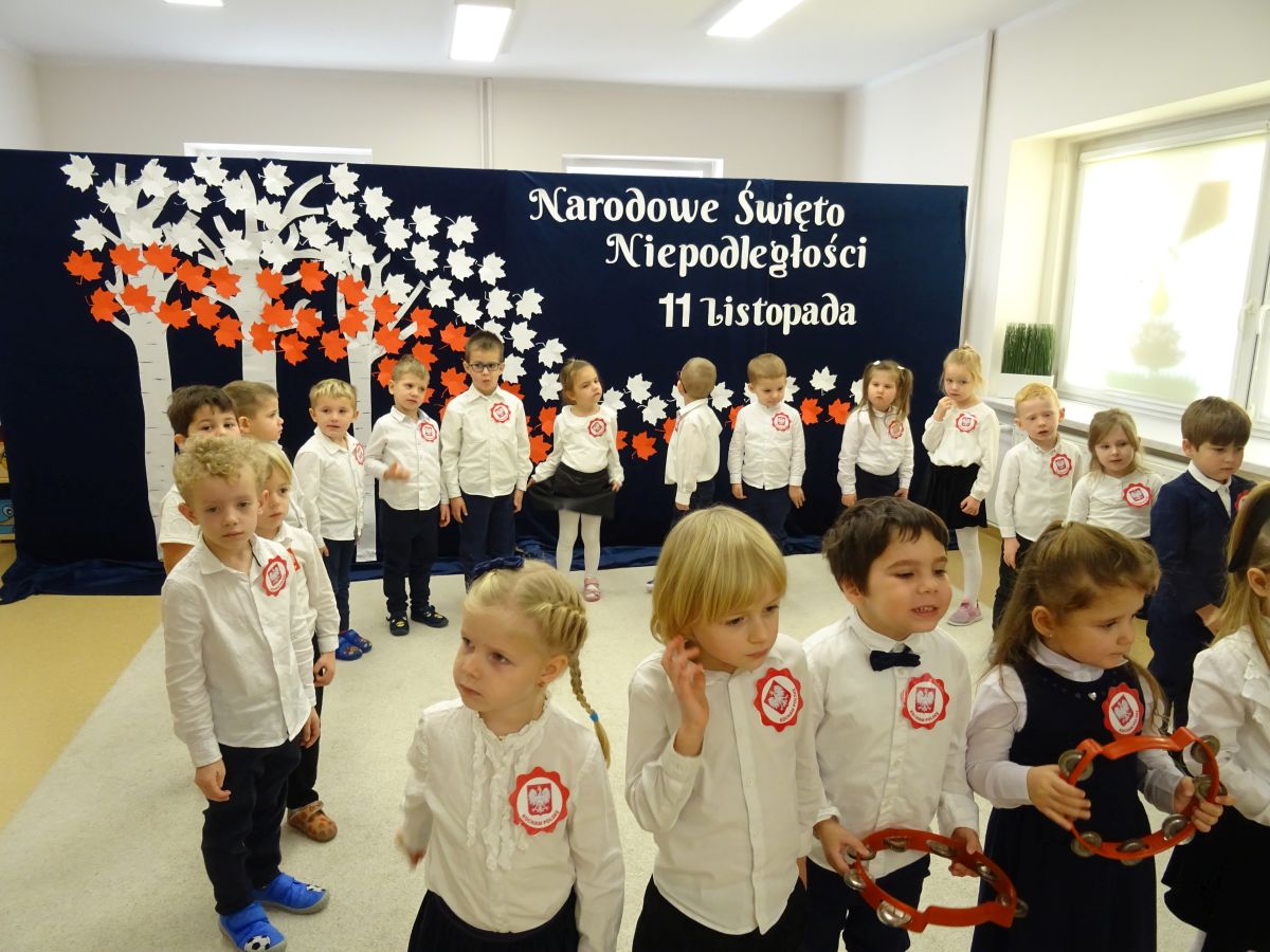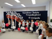 7 listopada w naszym przedszkolu odbyła się uroczysta akademia z okazji "Święta Odzyskania Niepodległości". Przedszkolacy w pełnej gali zaprezentowali piosenki, tańce oraz wiersze nawiązujące tematyką do naszej Ojczyzny - barw narodowych, godła, flagi oraz ważnych wydarzeń związanych z Polską. Na zakończenie wszyscy bardzo uroczyście odśpiewali "Mazurek Dąbrowskiego" - hymn Polski.. Cała uroczystość miała bardzo podniosły charakter. Na twarzach dzieci widać było skupienie i zrozumienie ważności tego święta.