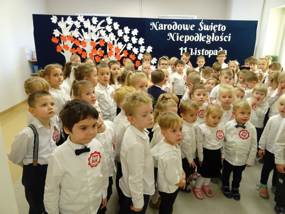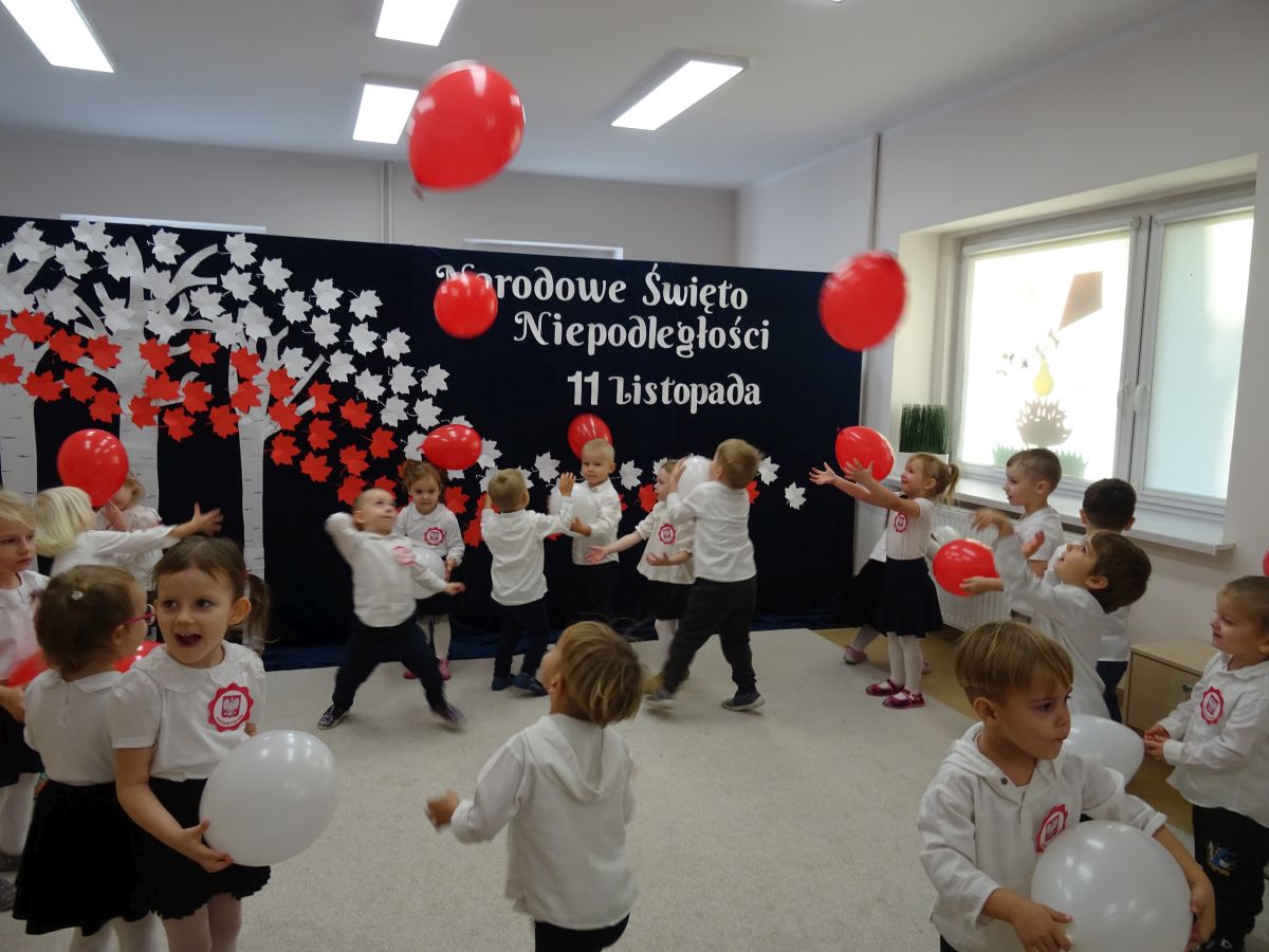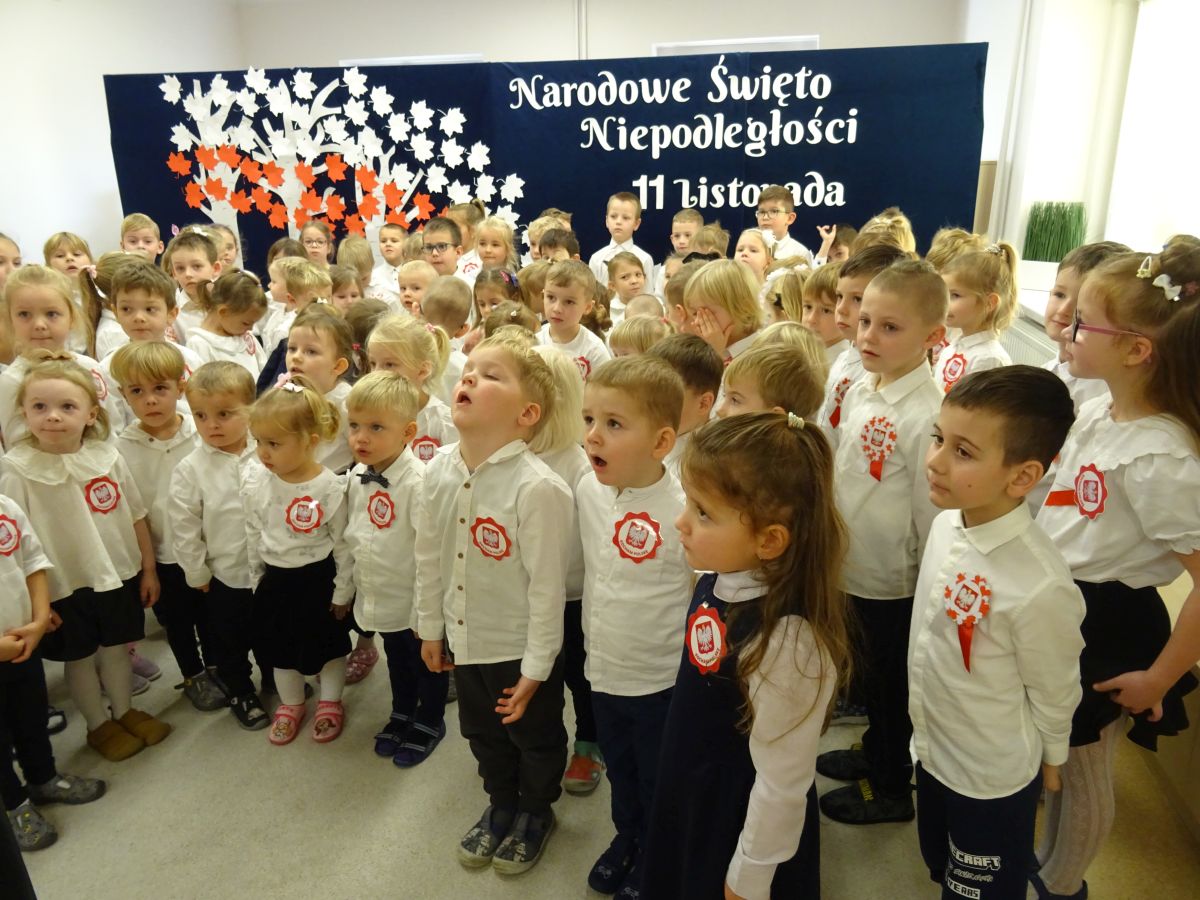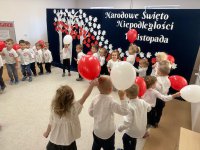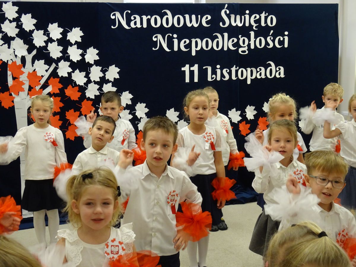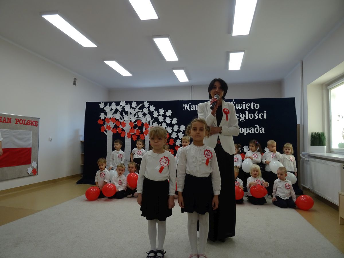 7 listopada w naszym przedszkolu odbyła się uroczysta akademia z okazji "Święta Odzyskania Niepodległości". Przedszkolacy w pełnej gali zaprezentowali piosenki, tańce oraz wiersze nawiązujące tematyką do naszej Ojczyzny - barw narodowych, godła, flagi oraz ważnych wydarzeń związanych z Polską. Na zakończenie wszyscy bardzo uroczyście odśpiewali "Mazurek Dąbrowskiego" - hymn Polski.. Cała uroczystość miała bardzo podniosły charakter. Na twarzach dzieci widać było skupienie i zrozumienie ważności tego święta.