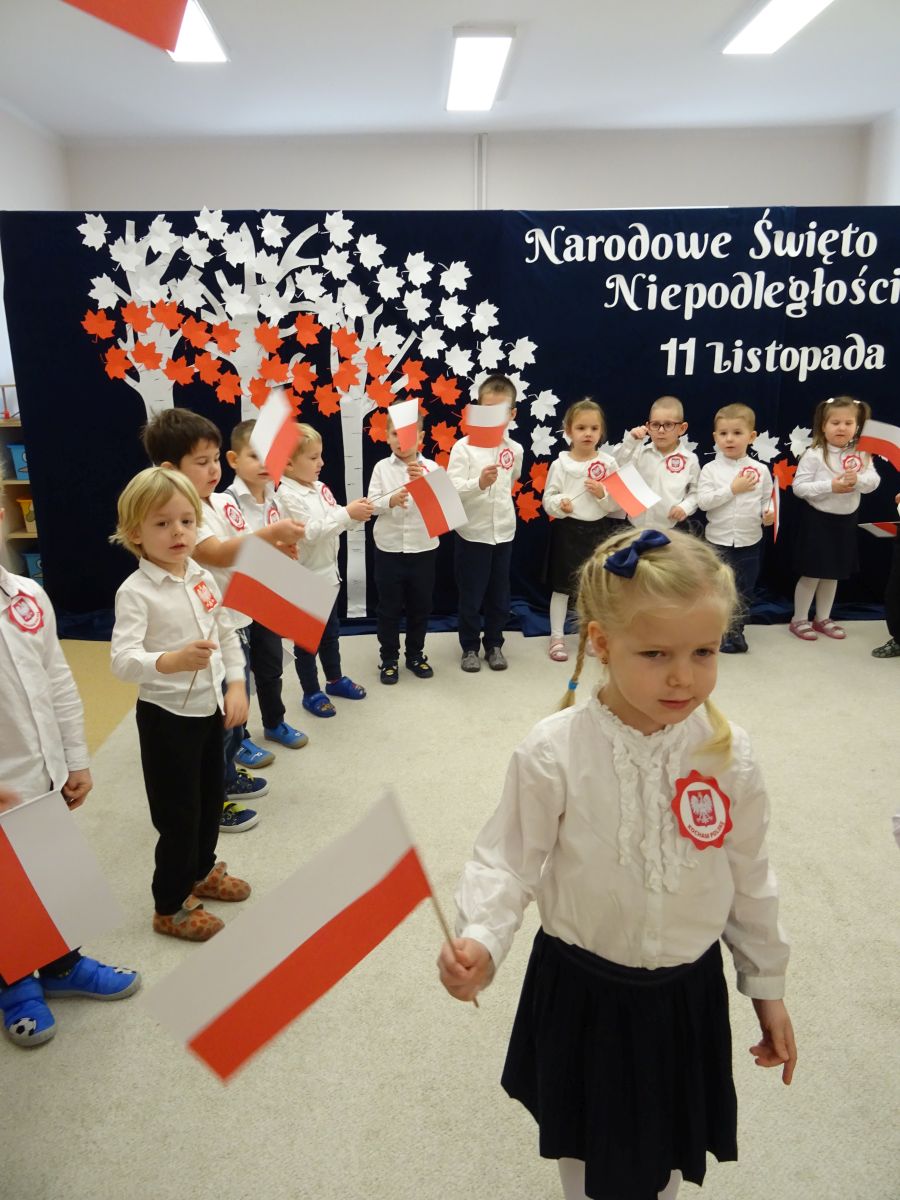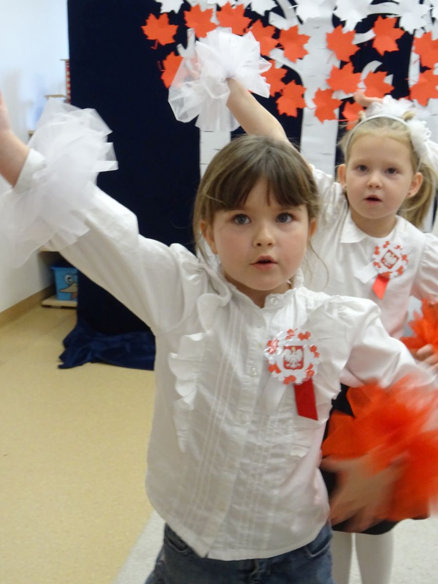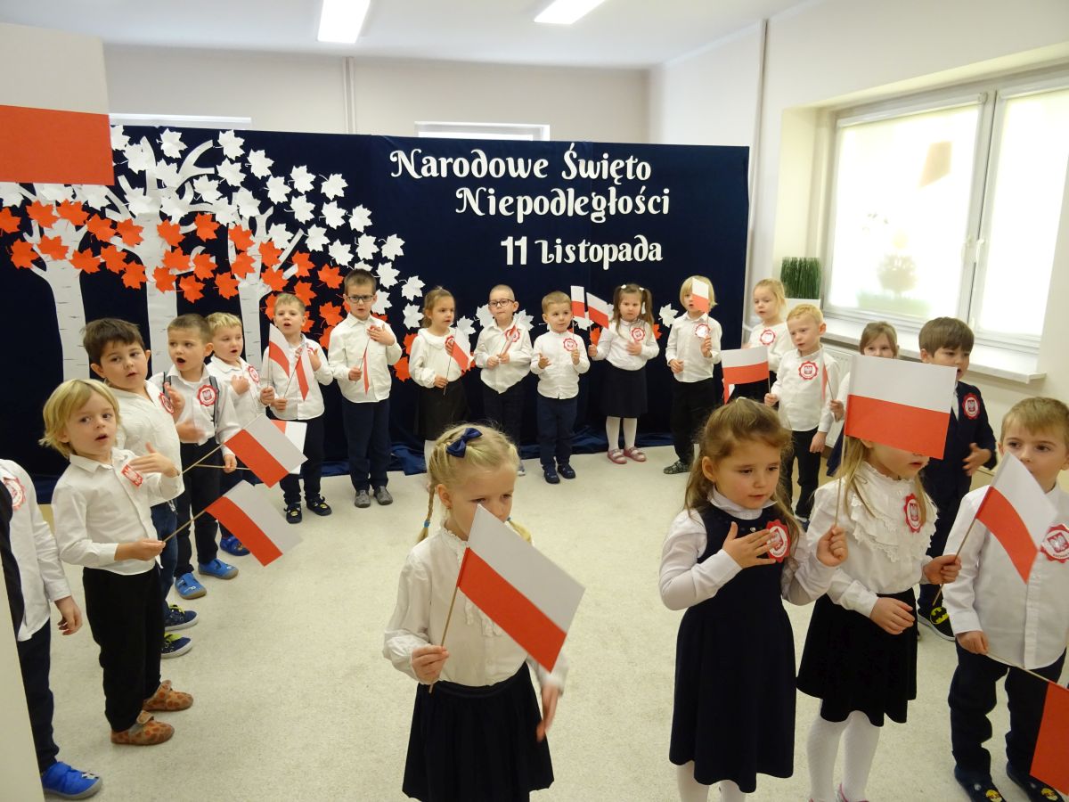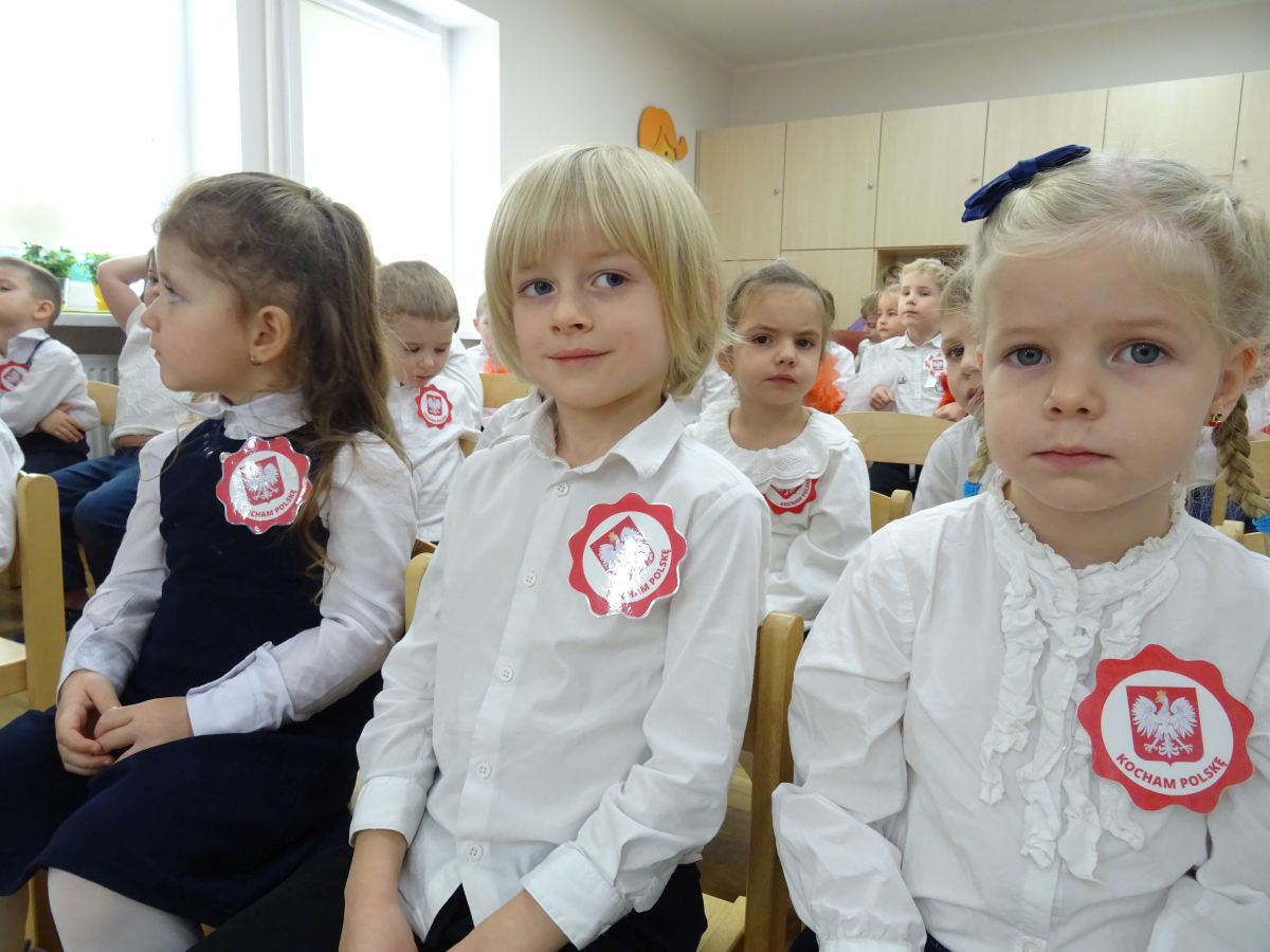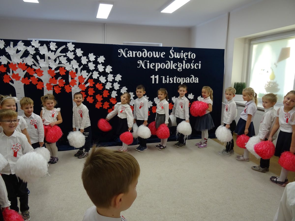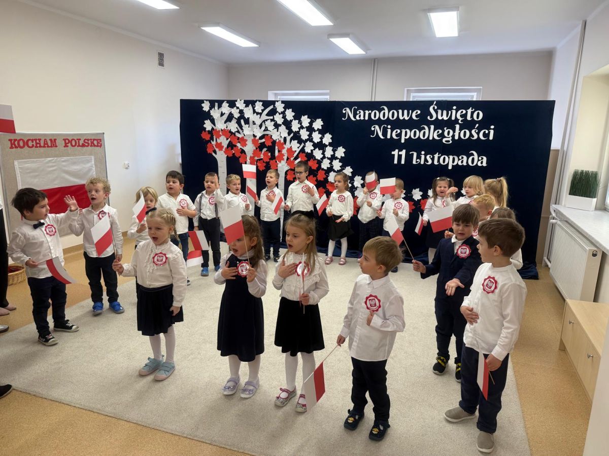 7 listopada w naszym przedszkolu odbyła się uroczysta akademia z okazji "Święta Odzyskania Niepodległości". Przedszkolacy w pełnej gali zaprezentowali piosenki, tańce oraz wiersze nawiązujące tematyką do naszej Ojczyzny - barw narodowych, godła, flagi oraz ważnych wydarzeń związanych z Polską. Na zakończenie wszyscy bardzo uroczyście odśpiewali "Mazurek Dąbrowskiego" - hymn Polski.. Cała uroczystość miała bardzo podniosły charakter. Na twarzach dzieci widać było skupienie i zrozumienie ważności tego święta.