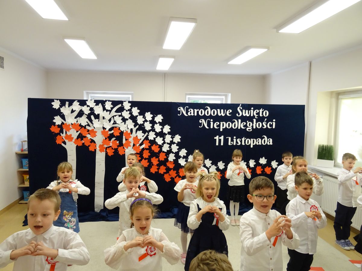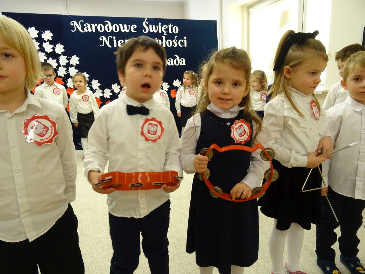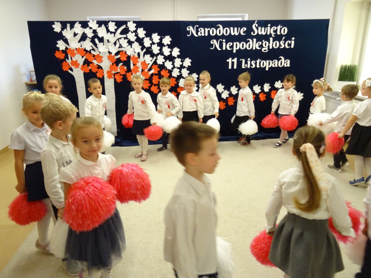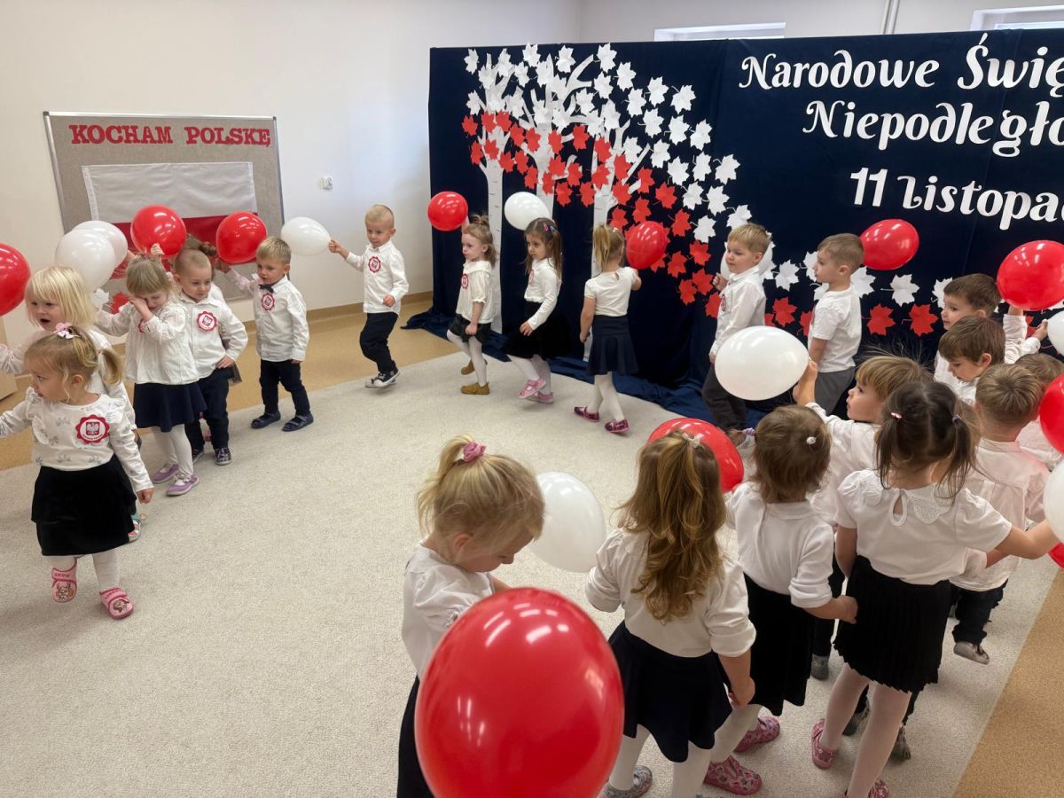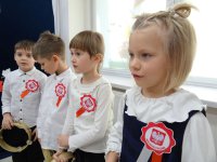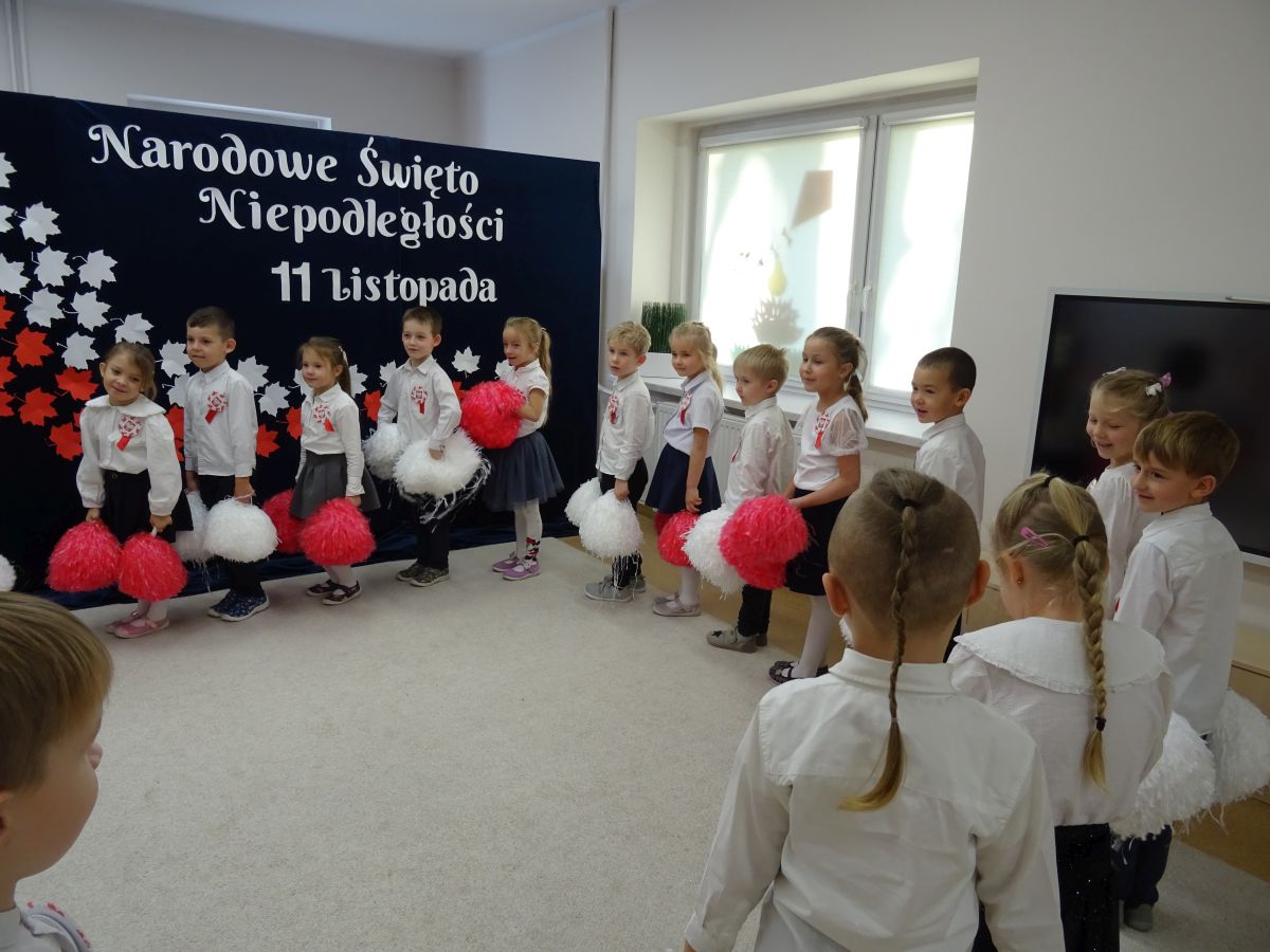 7 listopada w naszym przedszkolu odbyła się uroczysta akademia z okazji "Święta Odzyskania Niepodległości". Przedszkolacy w pełnej gali zaprezentowali piosenki, tańce oraz wiersze nawiązujące tematyką do naszej Ojczyzny - barw narodowych, godła, flagi oraz ważnych wydarzeń związanych z Polską. Na zakończenie wszyscy bardzo uroczyście odśpiewali "Mazurek Dąbrowskiego" - hymn Polski.. Cała uroczystość miała bardzo podniosły charakter. Na twarzach dzieci widać było skupienie i zrozumienie ważności tego święta.