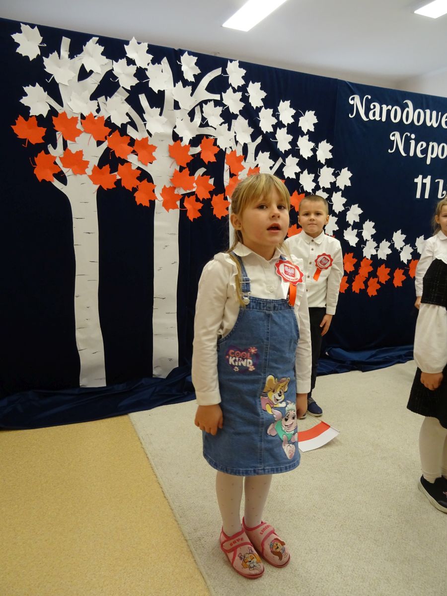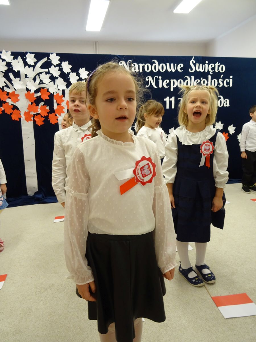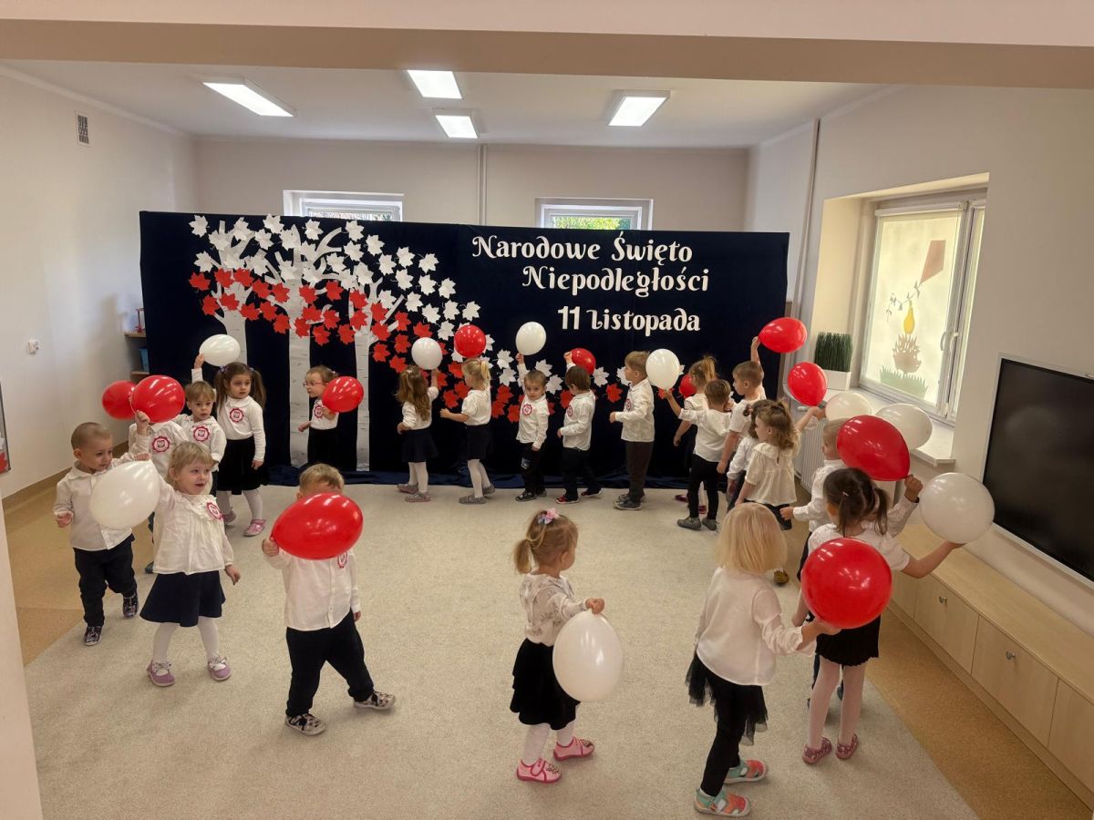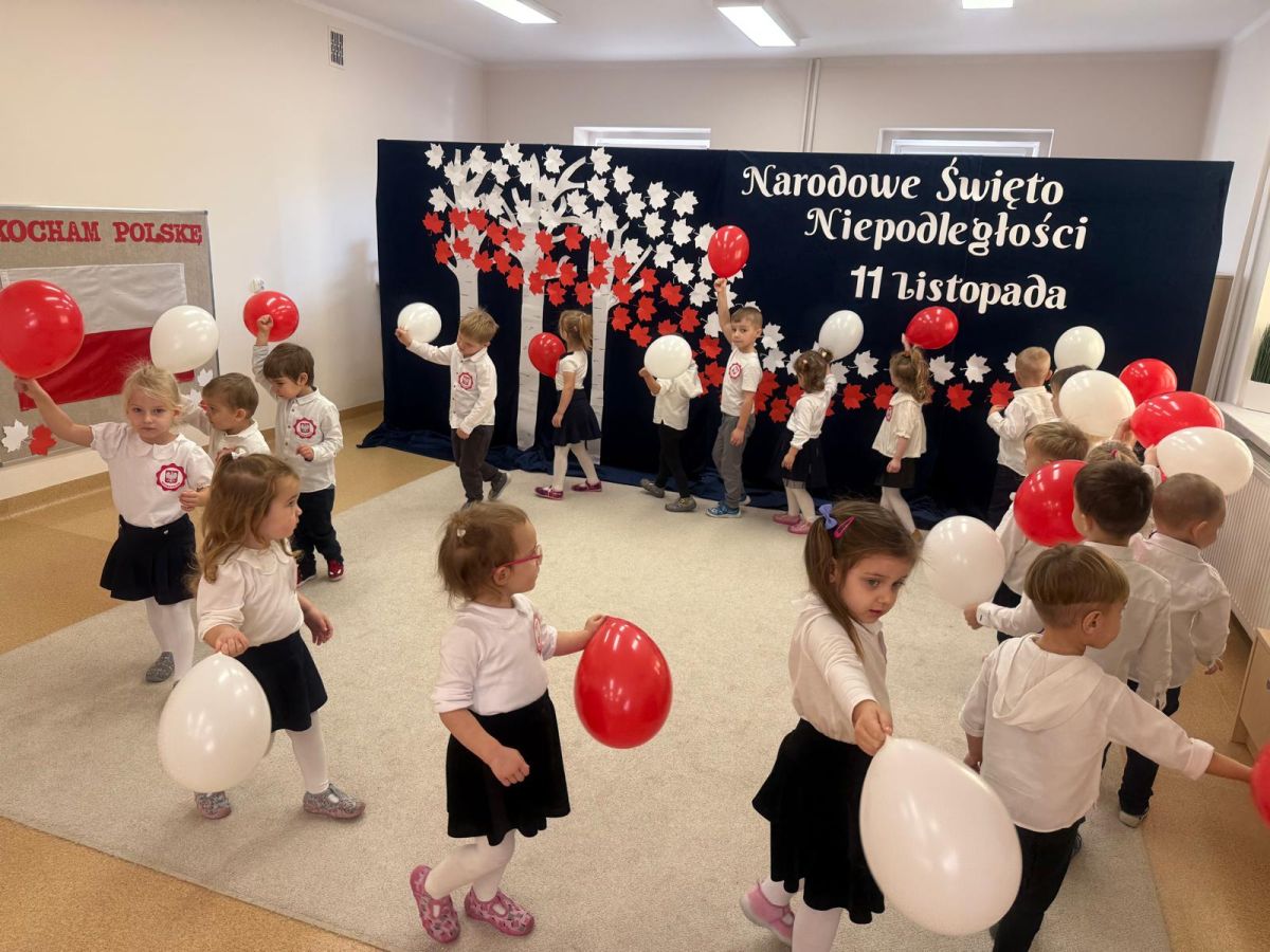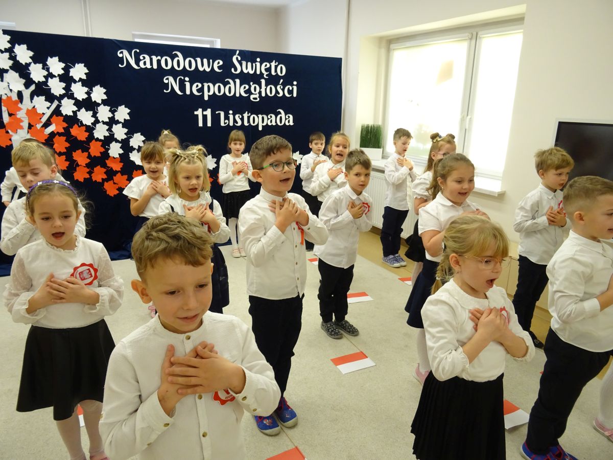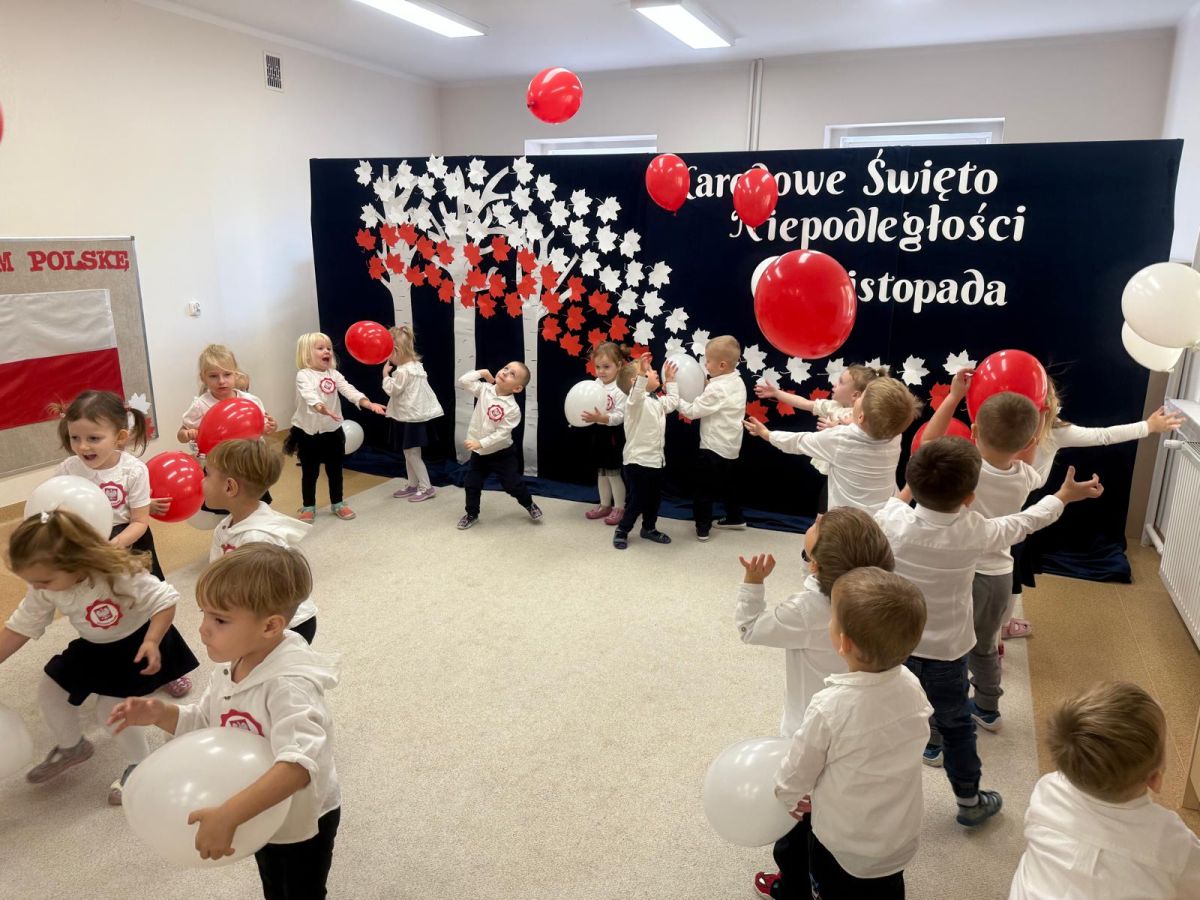 7 listopada w naszym przedszkolu odbyła się uroczysta akademia z okazji "Święta Odzyskania Niepodległości". Przedszkolacy w pełnej gali zaprezentowali piosenki, tańce oraz wiersze nawiązujące tematyką do naszej Ojczyzny - barw narodowych, godła, flagi oraz ważnych wydarzeń związanych z Polską. Na zakończenie wszyscy bardzo uroczyście odśpiewali "Mazurek Dąbrowskiego" - hymn Polski.. Cała uroczystość miała bardzo podniosły charakter. Na twarzach dzieci widać było skupienie i zrozumienie ważności tego święta.
