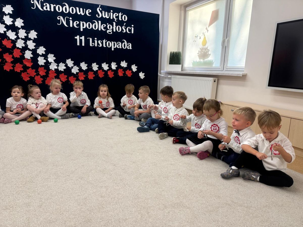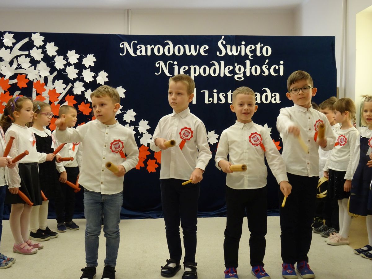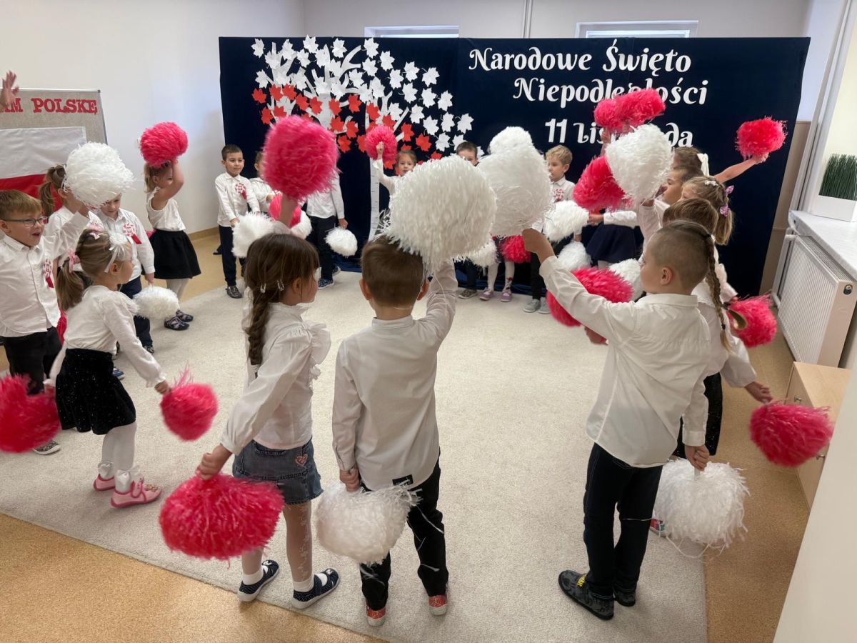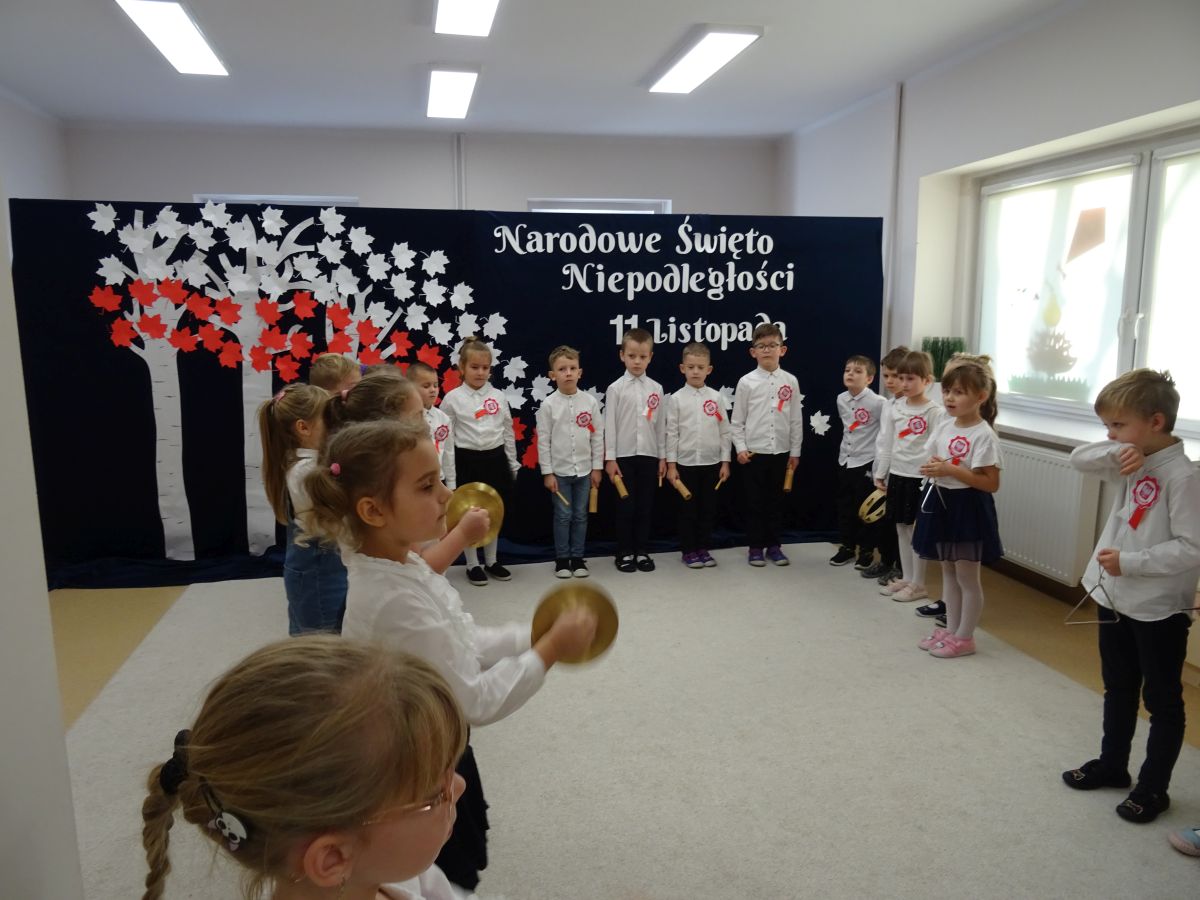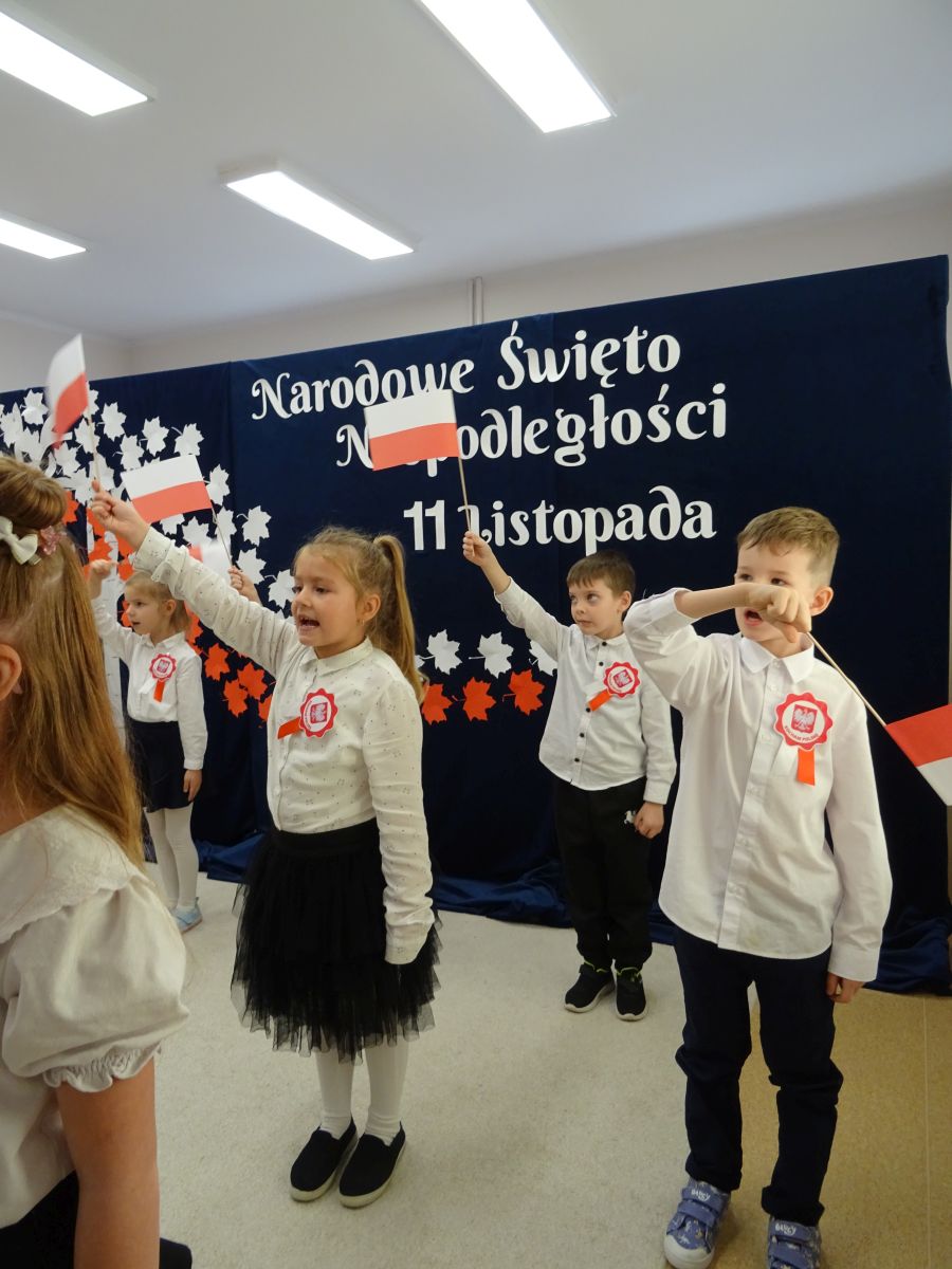 7 listopada w naszym przedszkolu odbyła się uroczysta akademia z okazji "Święta Odzyskania Niepodległości". Przedszkolacy w pełnej gali zaprezentowali piosenki, tańce oraz wiersze nawiązujące tematyką do naszej Ojczyzny - barw narodowych, godła, flagi oraz ważnych wydarzeń związanych z Polską. Na zakończenie wszyscy bardzo uroczyście odśpiewali "Mazurek Dąbrowskiego" - hymn Polski.. Cała uroczystość miała bardzo podniosły charakter. Na twarzach dzieci widać było skupienie i zrozumienie ważności tego święta.