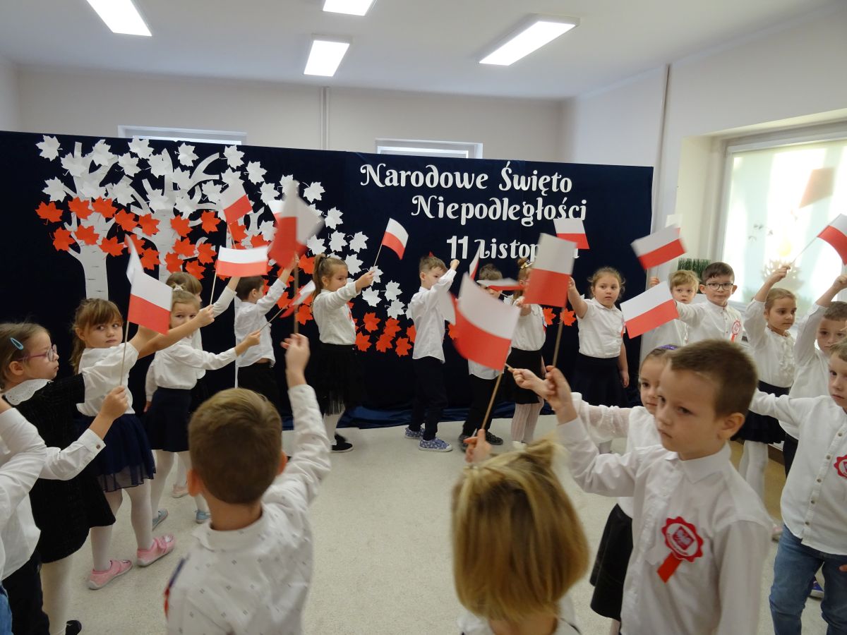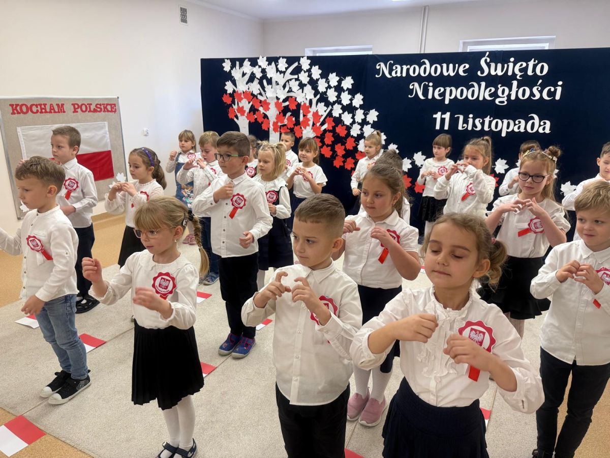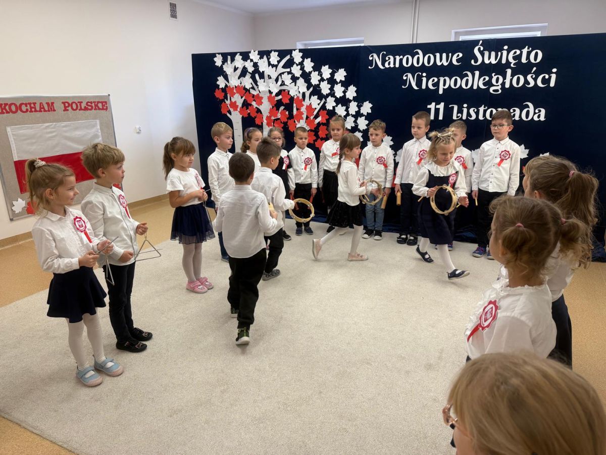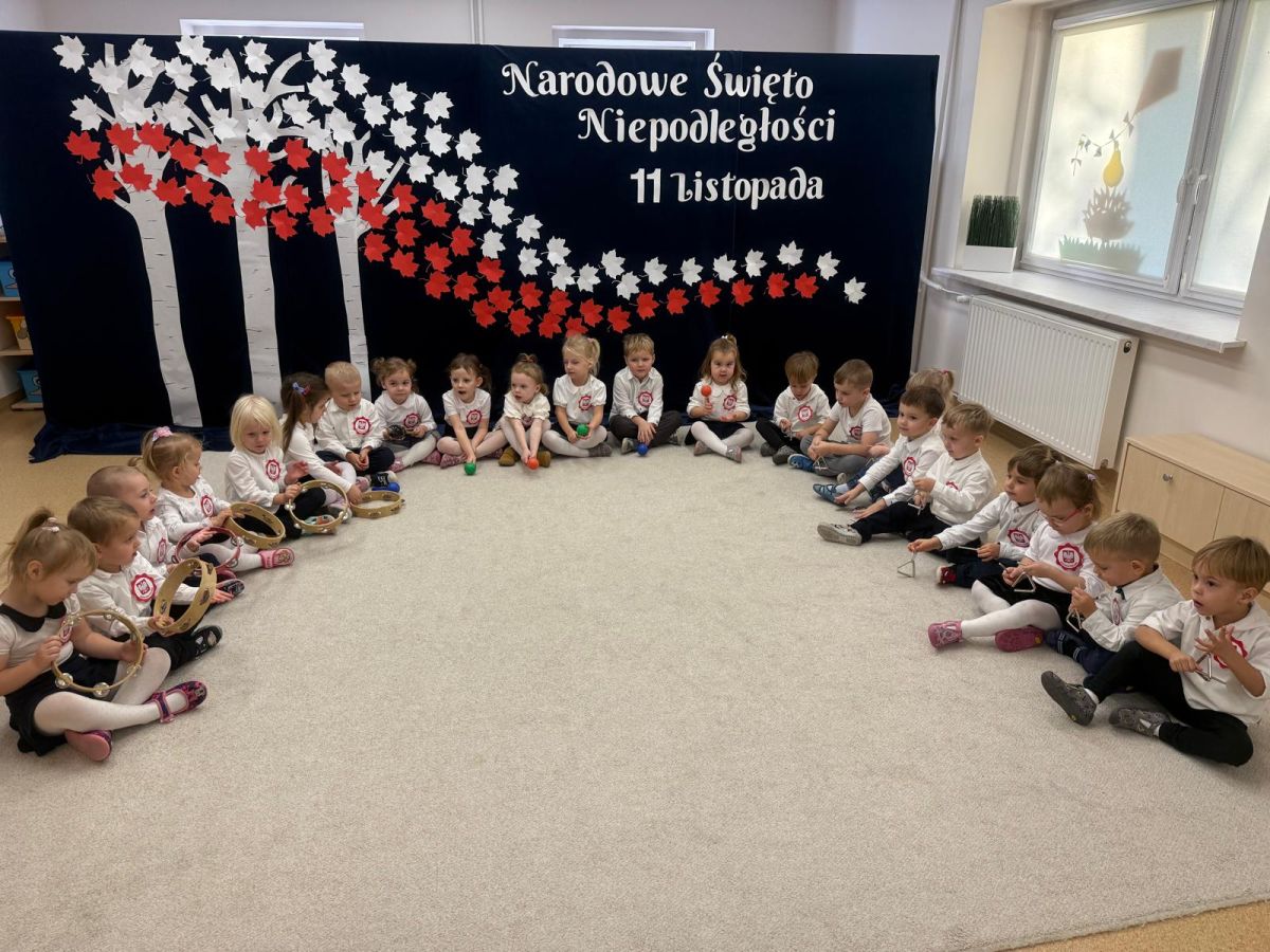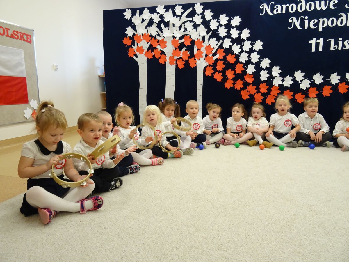 7 listopada w naszym przedszkolu odbyła się uroczysta akademia z okazji "Święta Odzyskania Niepodległości". Przedszkolacy w pełnej gali zaprezentowali piosenki, tańce oraz wiersze nawiązujące tematyką do naszej Ojczyzny - barw narodowych, godła, flagi oraz ważnych wydarzeń związanych z Polską. Na zakończenie wszyscy bardzo uroczyście odśpiewali "Mazurek Dąbrowskiego" - hymn Polski.. Cała uroczystość miała bardzo podniosły charakter. Na twarzach dzieci widać było skupienie i zrozumienie ważności tego święta.