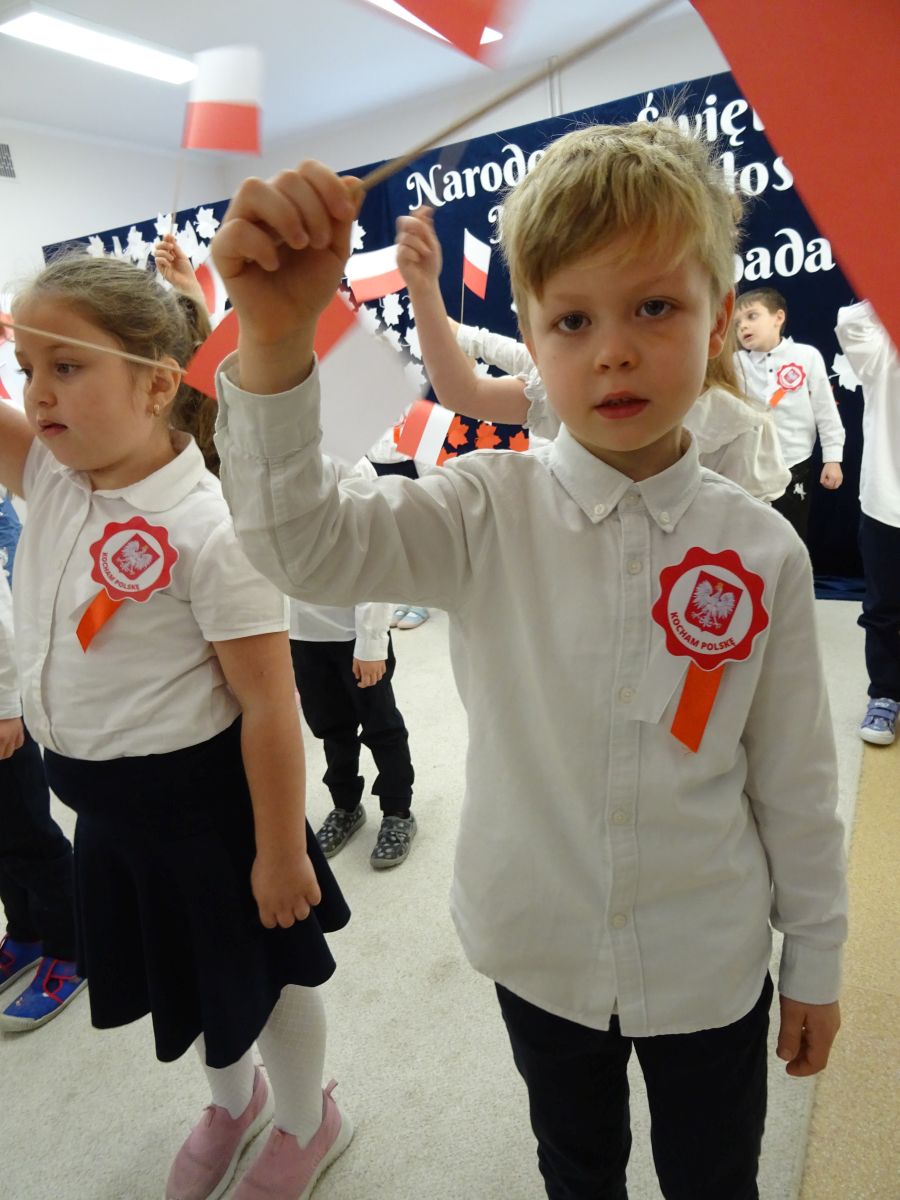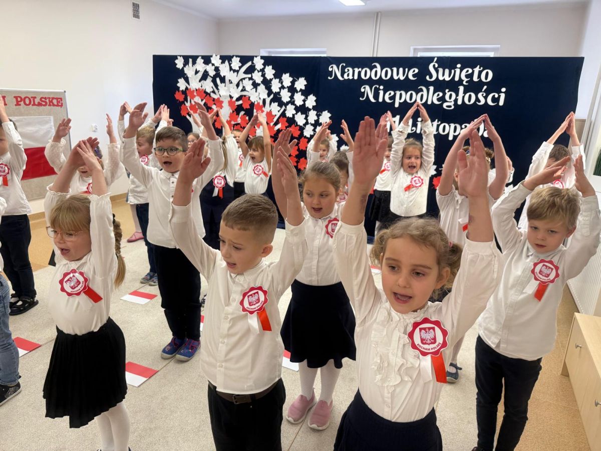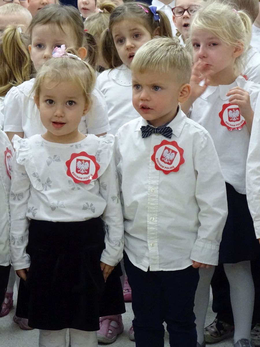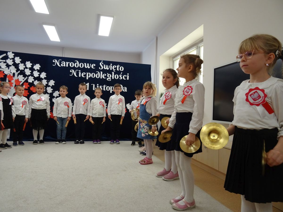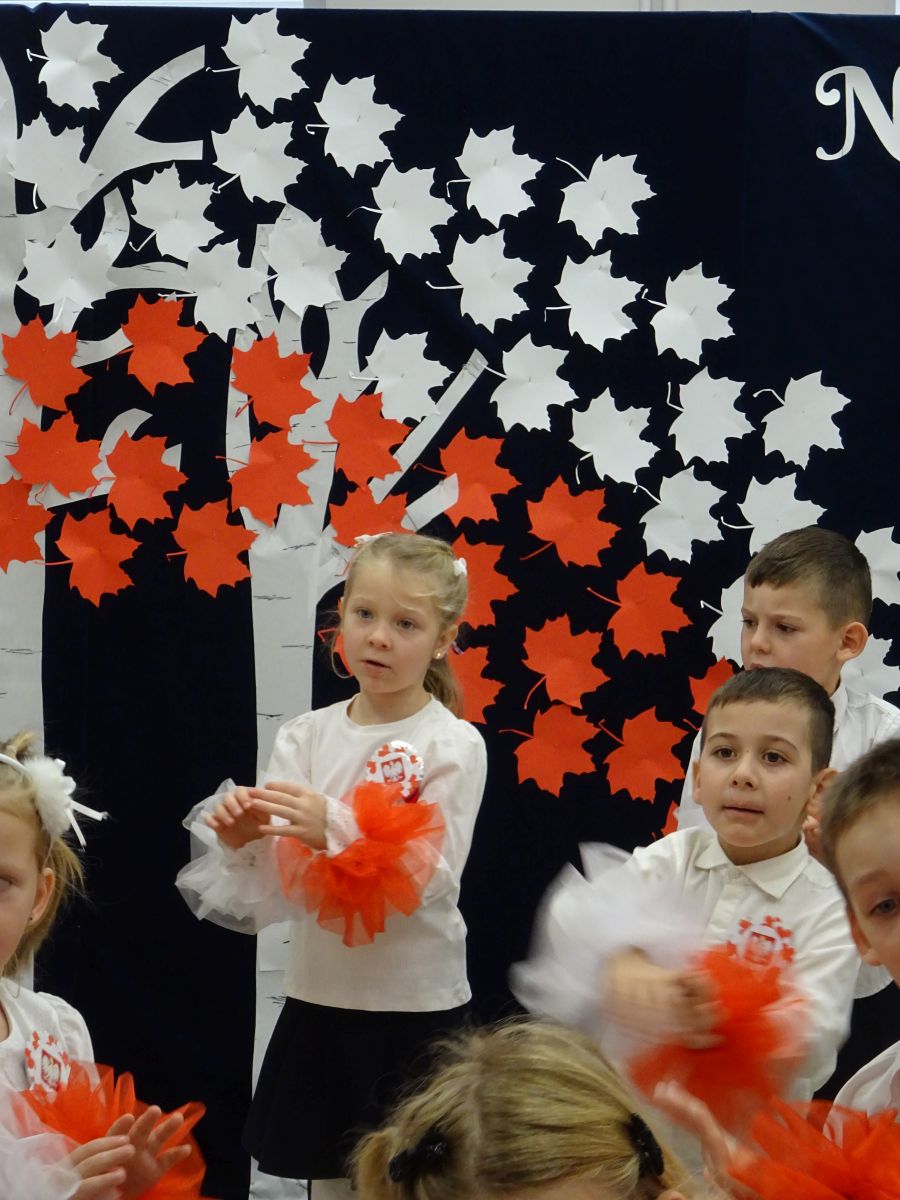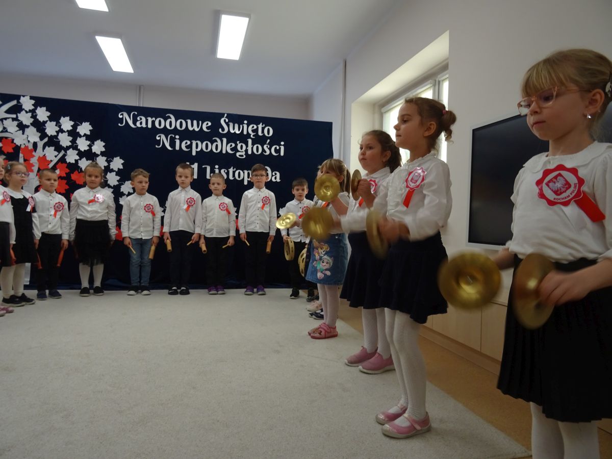 7 listopada w naszym przedszkolu odbyła się uroczysta akademia z okazji "Święta Odzyskania Niepodległości". Przedszkolacy w pełnej gali zaprezentowali piosenki, tańce oraz wiersze nawiązujące tematyką do naszej Ojczyzny - barw narodowych, godła, flagi oraz ważnych wydarzeń związanych z Polską. Na zakończenie wszyscy bardzo uroczyście odśpiewali "Mazurek Dąbrowskiego" - hymn Polski.. Cała uroczystość miała bardzo podniosły charakter. Na twarzach dzieci widać było skupienie i zrozumienie ważności tego święta.