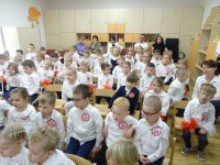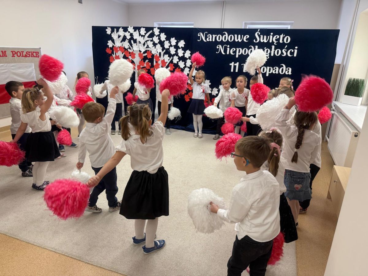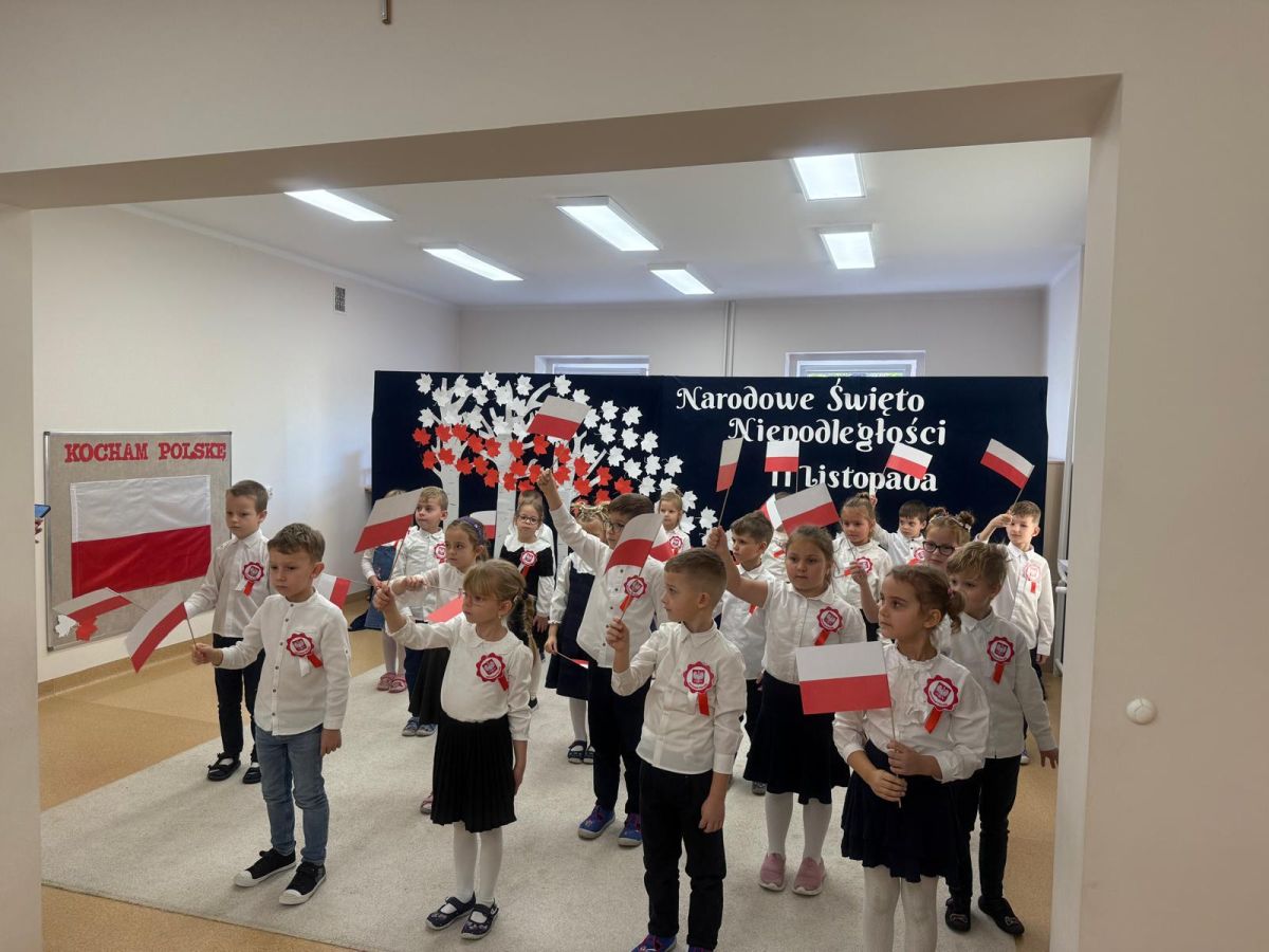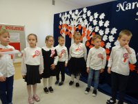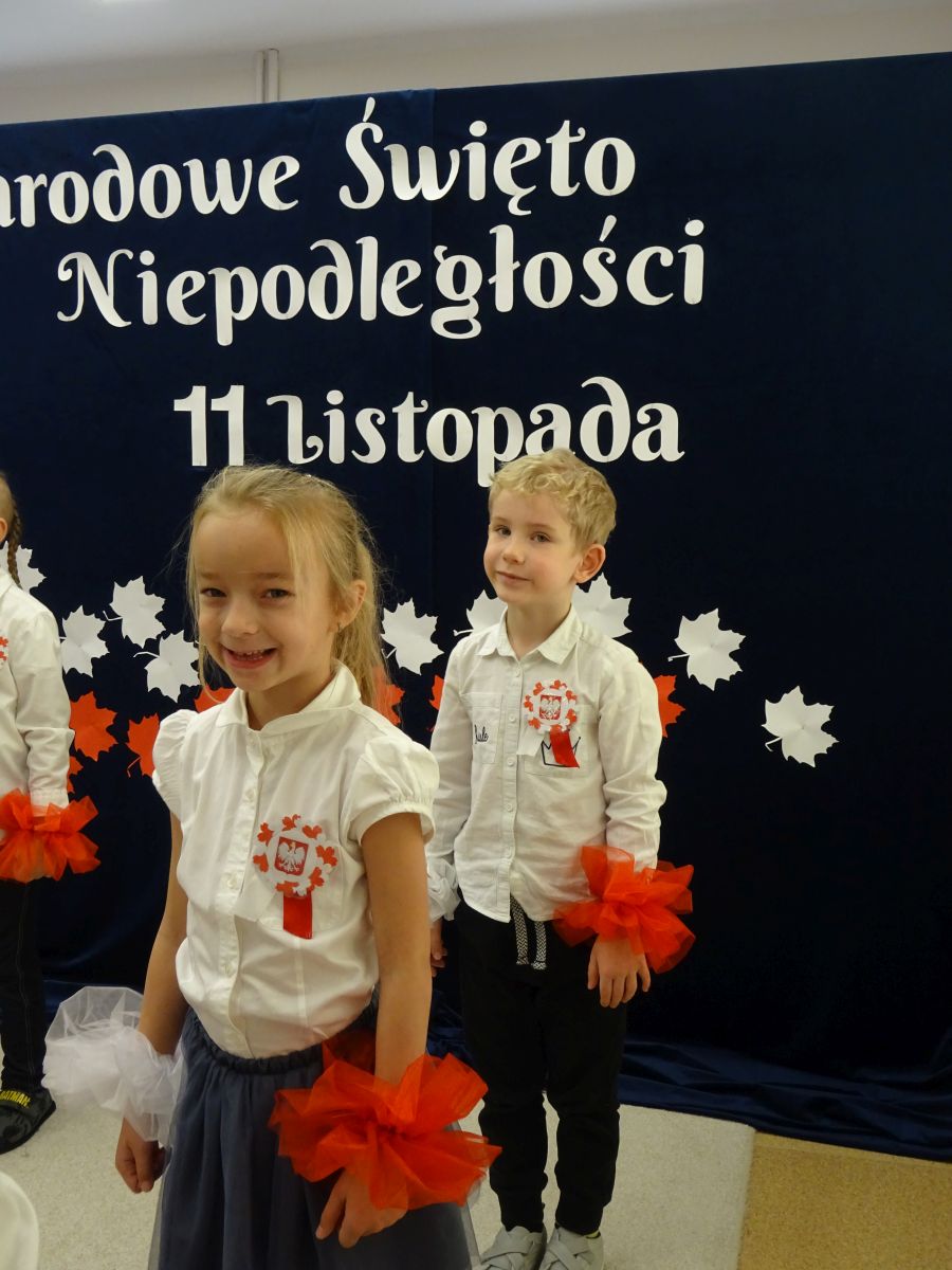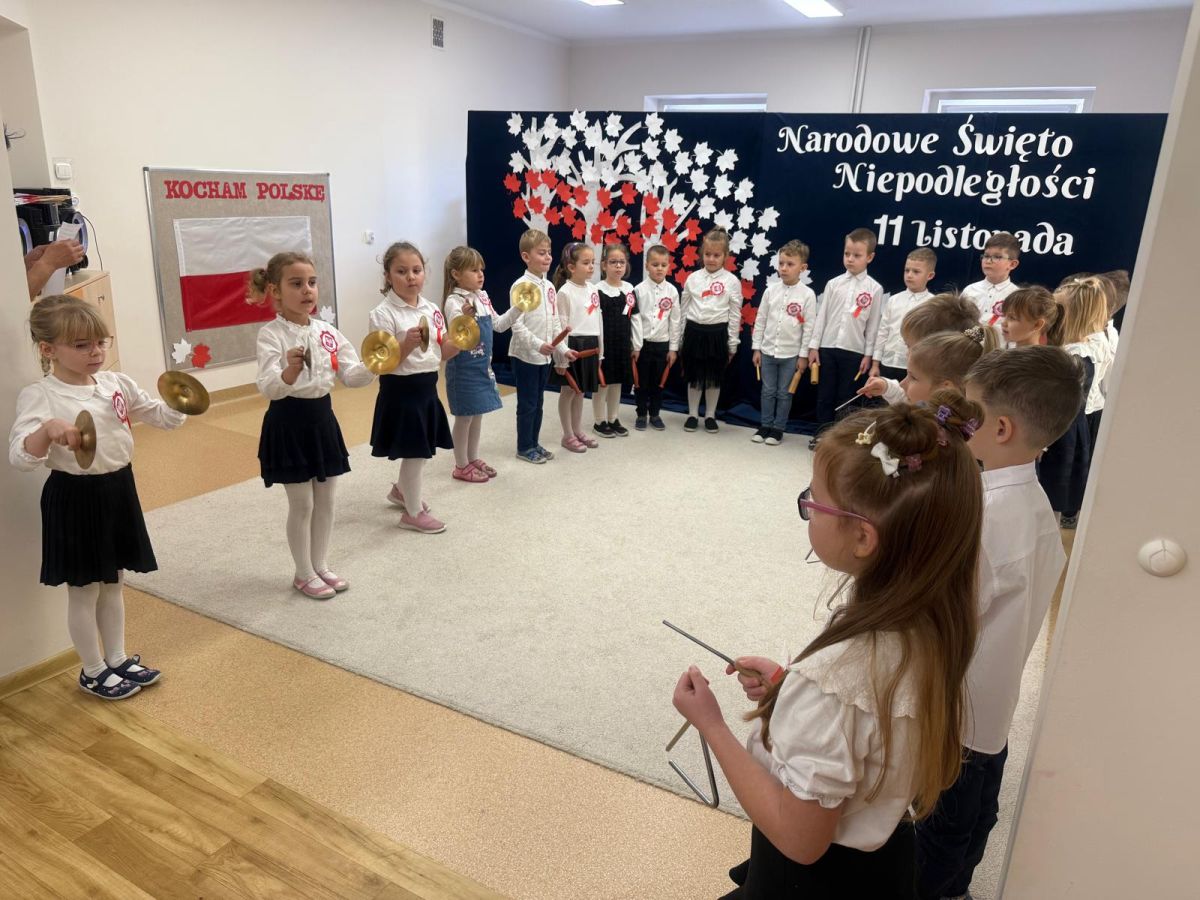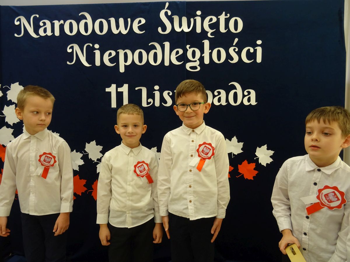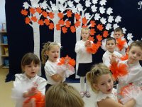 7 listopada w naszym przedszkolu odbyła się uroczysta akademia z okazji "Święta Odzyskania Niepodległości". Przedszkolacy w pełnej gali zaprezentowali piosenki, tańce oraz wiersze nawiązujące tematyką do naszej Ojczyzny - barw narodowych, godła, flagi oraz ważnych wydarzeń związanych z Polską. Na zakończenie wszyscy bardzo uroczyście odśpiewali "Mazurek Dąbrowskiego" - hymn Polski.. Cała uroczystość miała bardzo podniosły charakter. Na twarzach dzieci widać było skupienie i zrozumienie ważności tego święta.