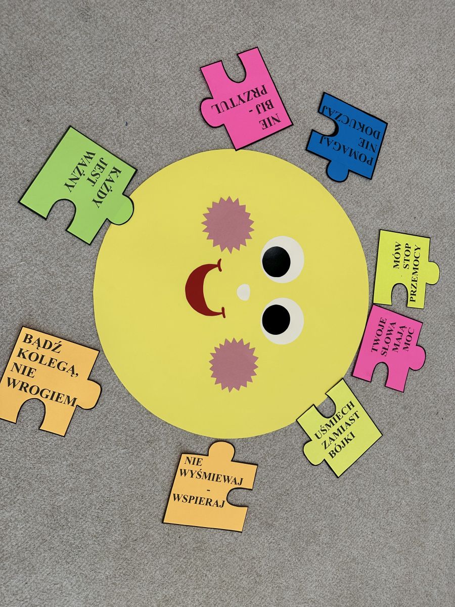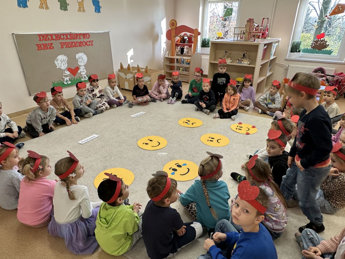 W grupach Motylki i Biedronki odbyły się wyjątkowe zajęcia pod hasłem "Dzieciństwo bez przemocy". Spotkanie miało na celu uwrażliwienie najmłodszych na znaczenie szacunku, życzliwości, bezpieczeństwa w codziennych relacjach z rówieśnikami oraz dorosłymi. Przedszkolaki dowiedziały się, że każdy człowiek ma prawo do miłości, bezpieczeństwa i szacunku, a słowa mogą ranić tak samo jak czyny.