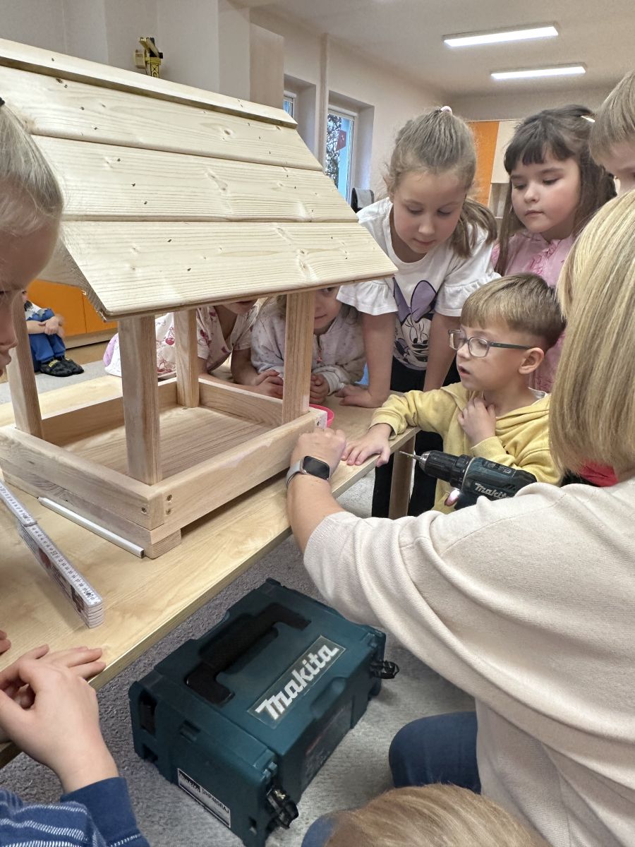 W naszej grupie odbyły się wyjątkowe zajęcia, podczas których dzieci wspólnie z wychowawczynią budowały swój własny, grupowy karmnik dla ptaków, który już niebawem swoje miejsce znajdzie w naszym ogrodzie przedszkolnym. Była to wspaniała okazja nie tylko do rozwijania umiejętności manualnych, ale także zasad dbania o przyrodę i zwierzęta zimą. A w ogrodzie „Motylki” z jesiennych liści stworzyły ogromny domek dla jeży.