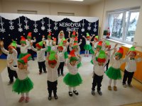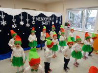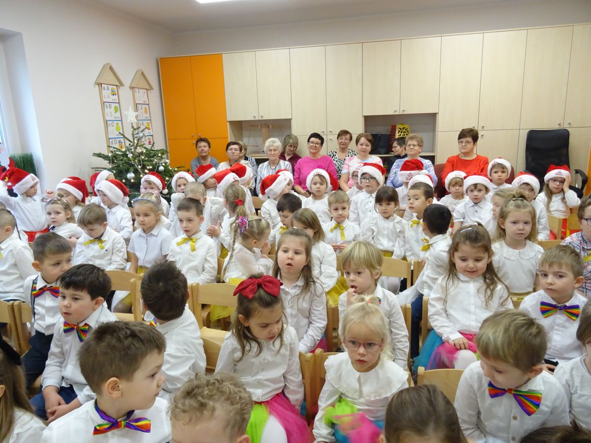Tradycją naszego przedszkola jest goszczenie zacnych emerytowanych pracowników naszej placówki..Aby umilić gościom pobyt , dzieci z wszystkich grup zaprezentowały program artystyczny, który wprowadził nas w radosny i świąteczny nastrój. Były wspomnienia, rozmowy, życzenia i wiele, wiele uśmiechu i radości. Dziękujemy gościom za wizytę.