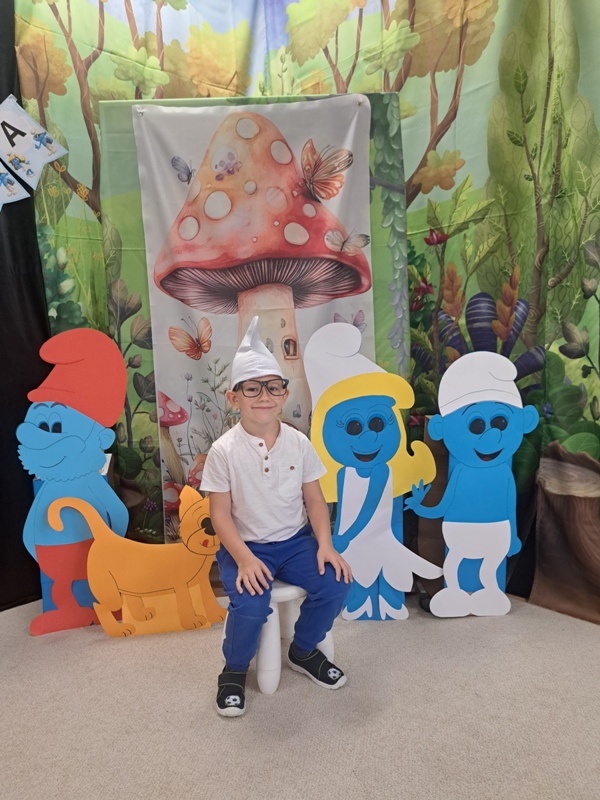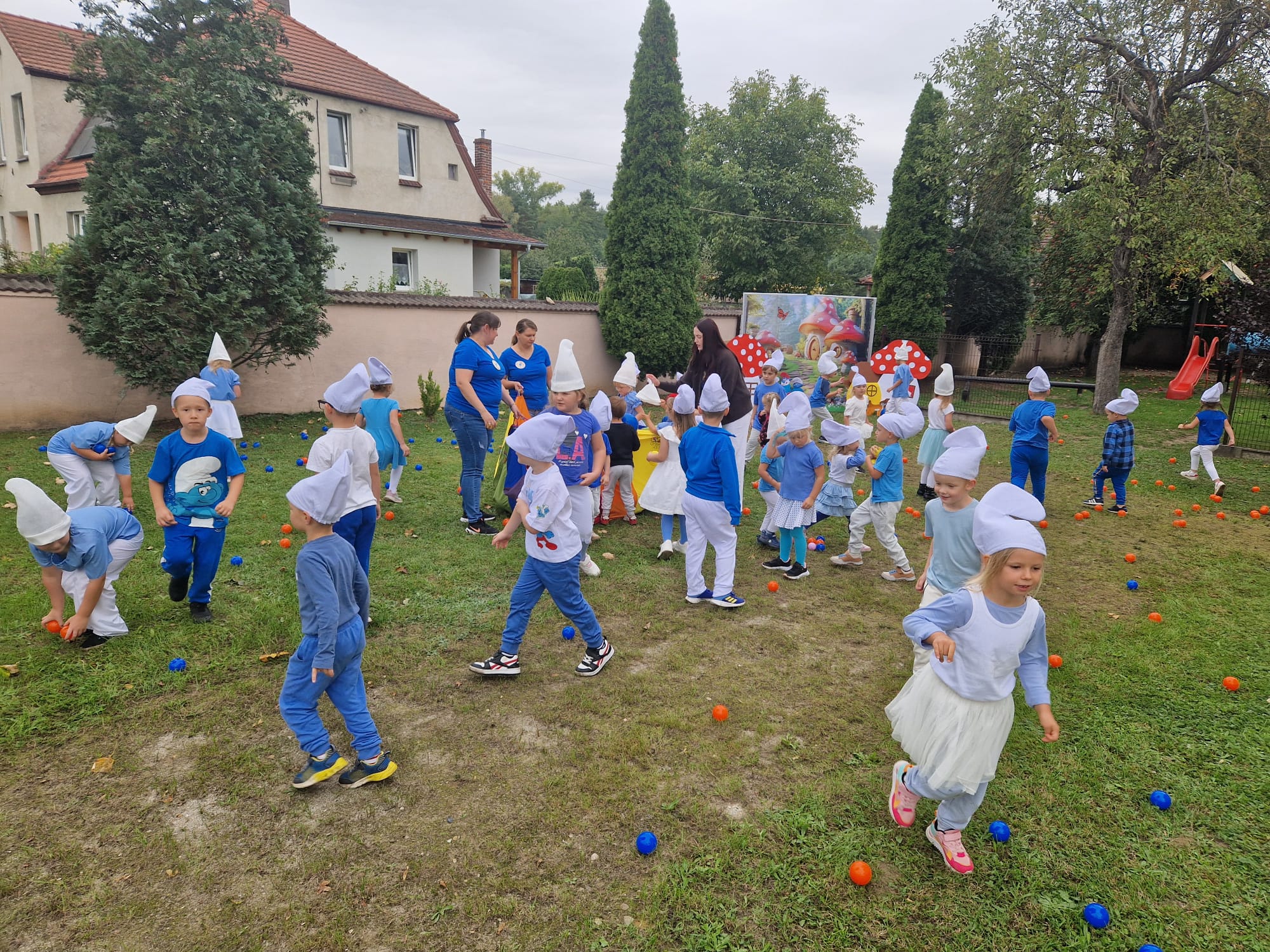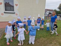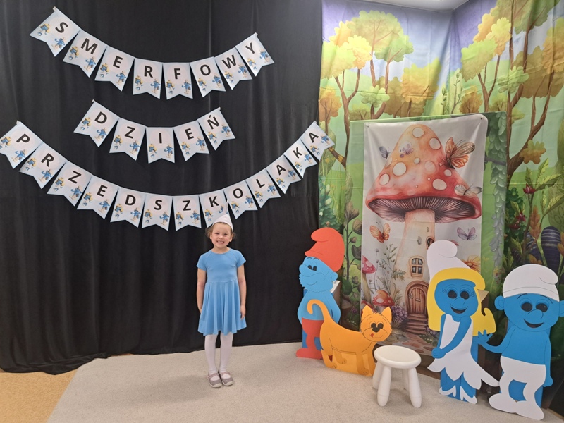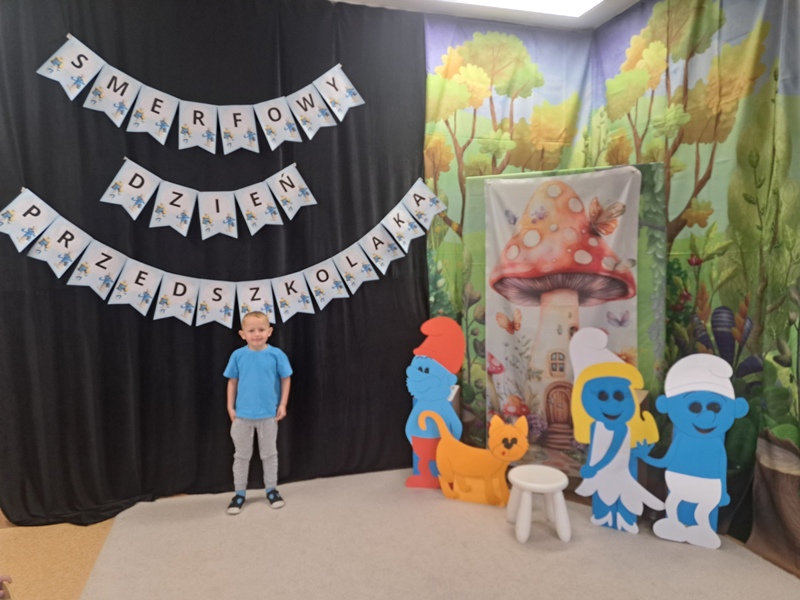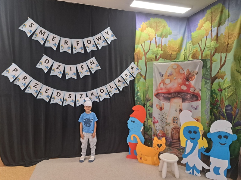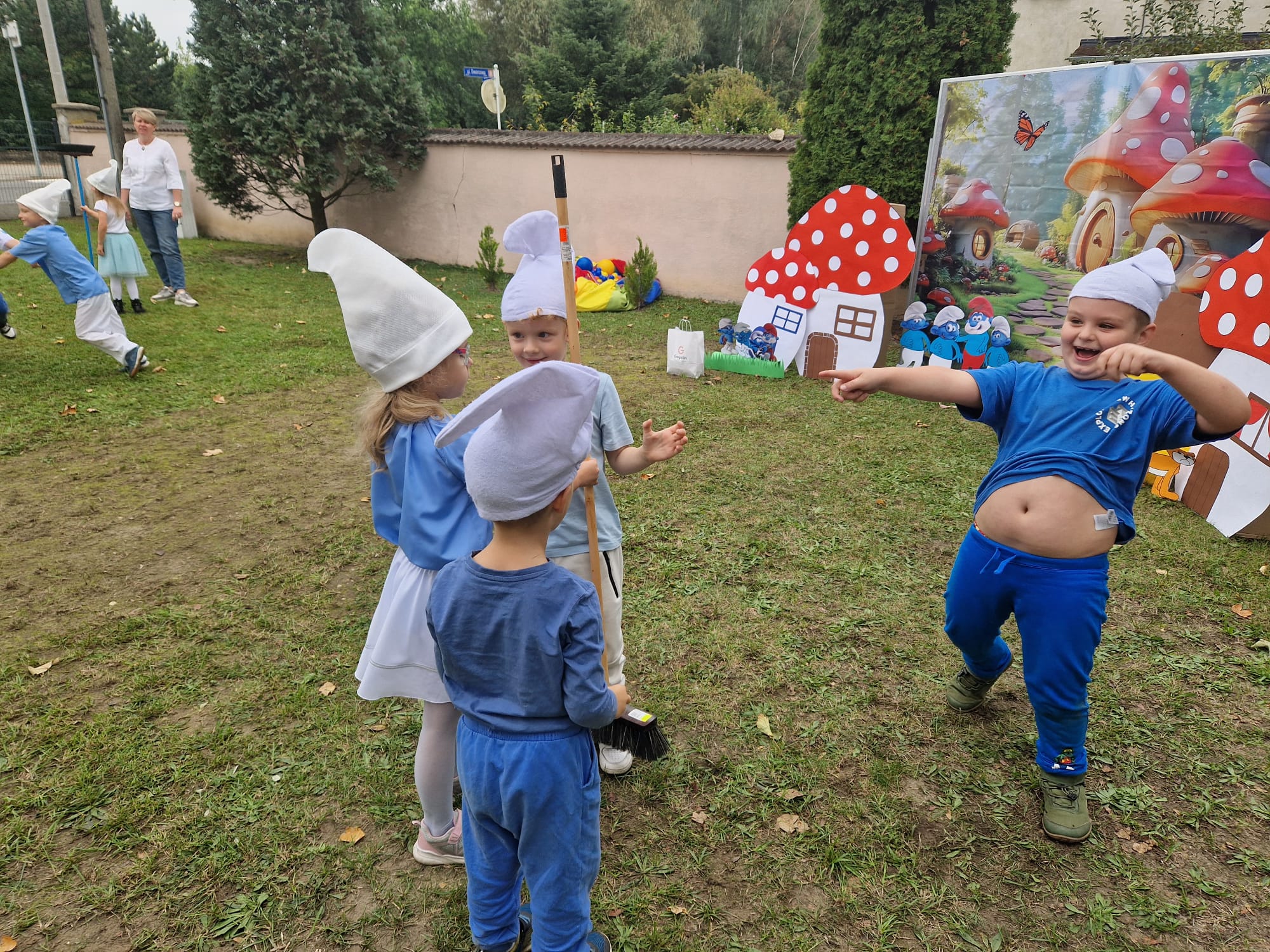 Na przedszkolaków czekały różne atrakcje: zabawy ruchowe, taneczne, zagadki i konkursy związane ze smerfową krainą. Naszych przedszkolaków odwiedził nawet pan burmistrz z słodkim poczęstunkiem. Był to dzień pełen radości, integracji i dobrej zabawy – bo przecież każdy przedszkolak to mały Smerf: odważny, mądry i wyjątkowy!