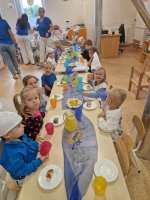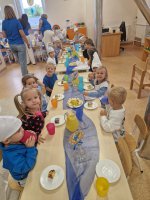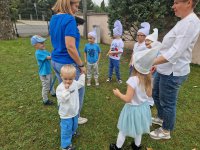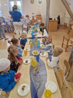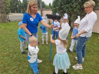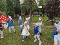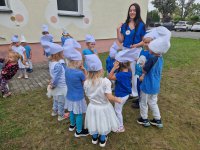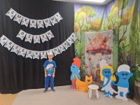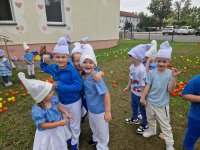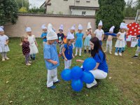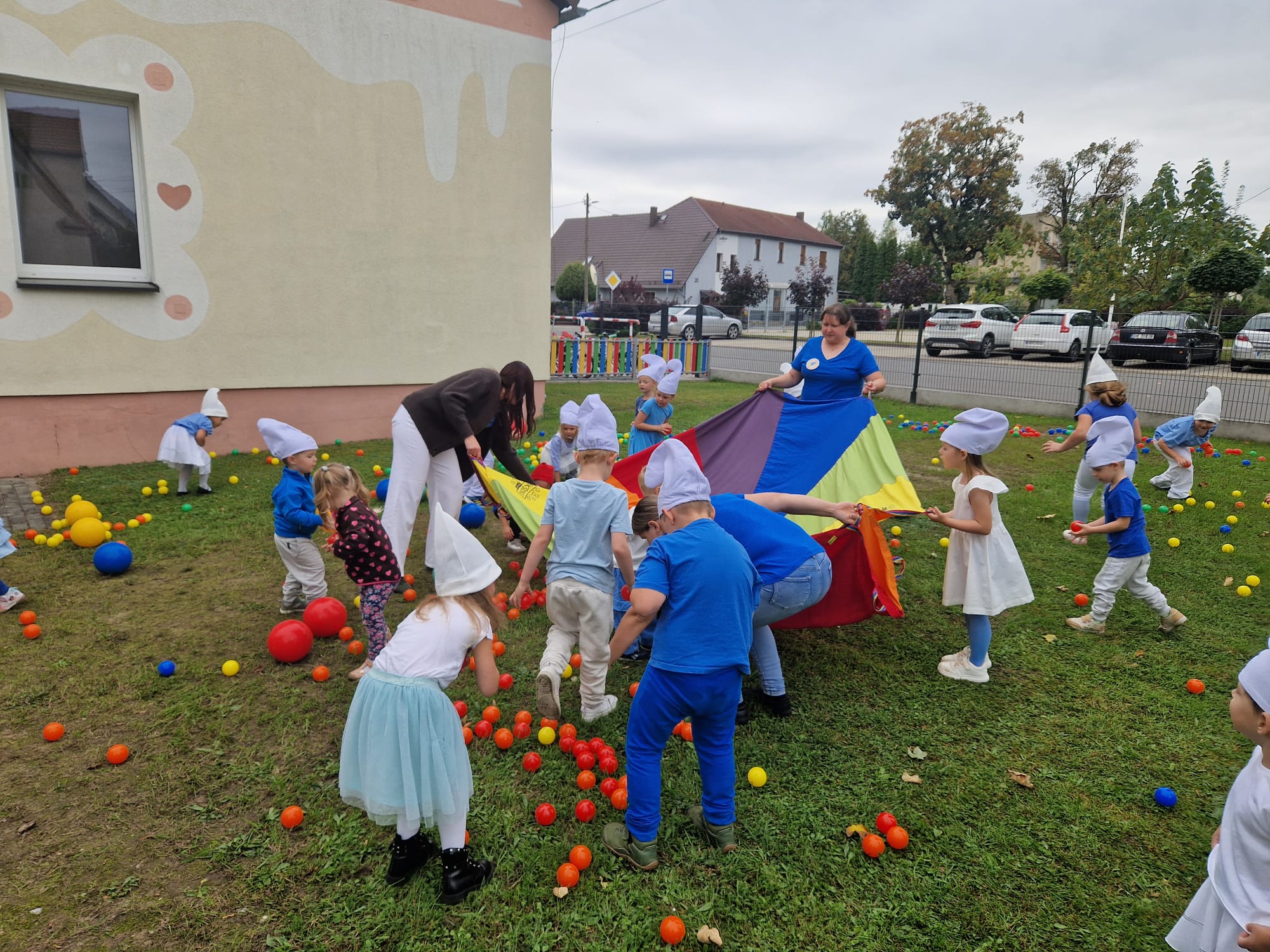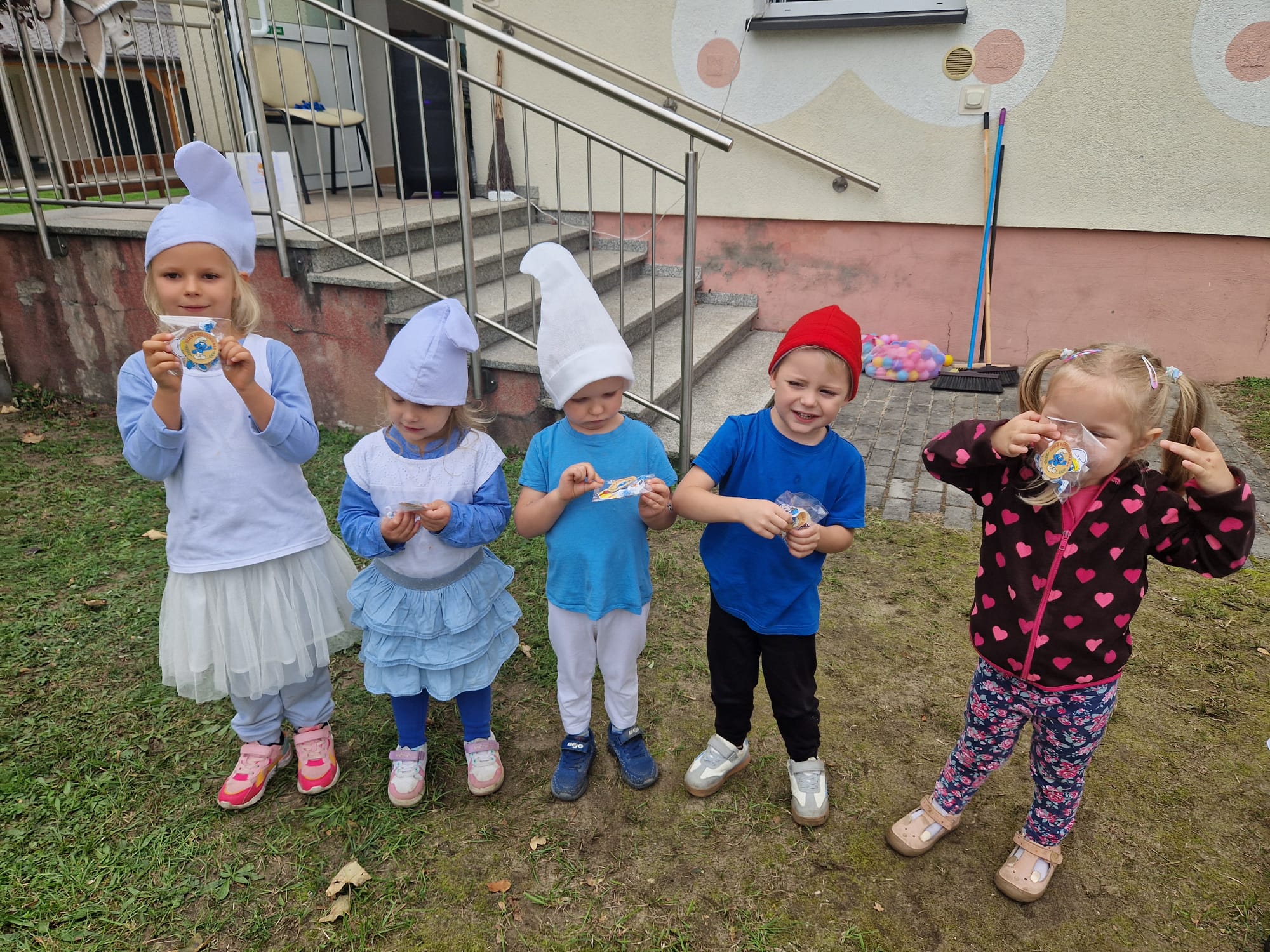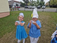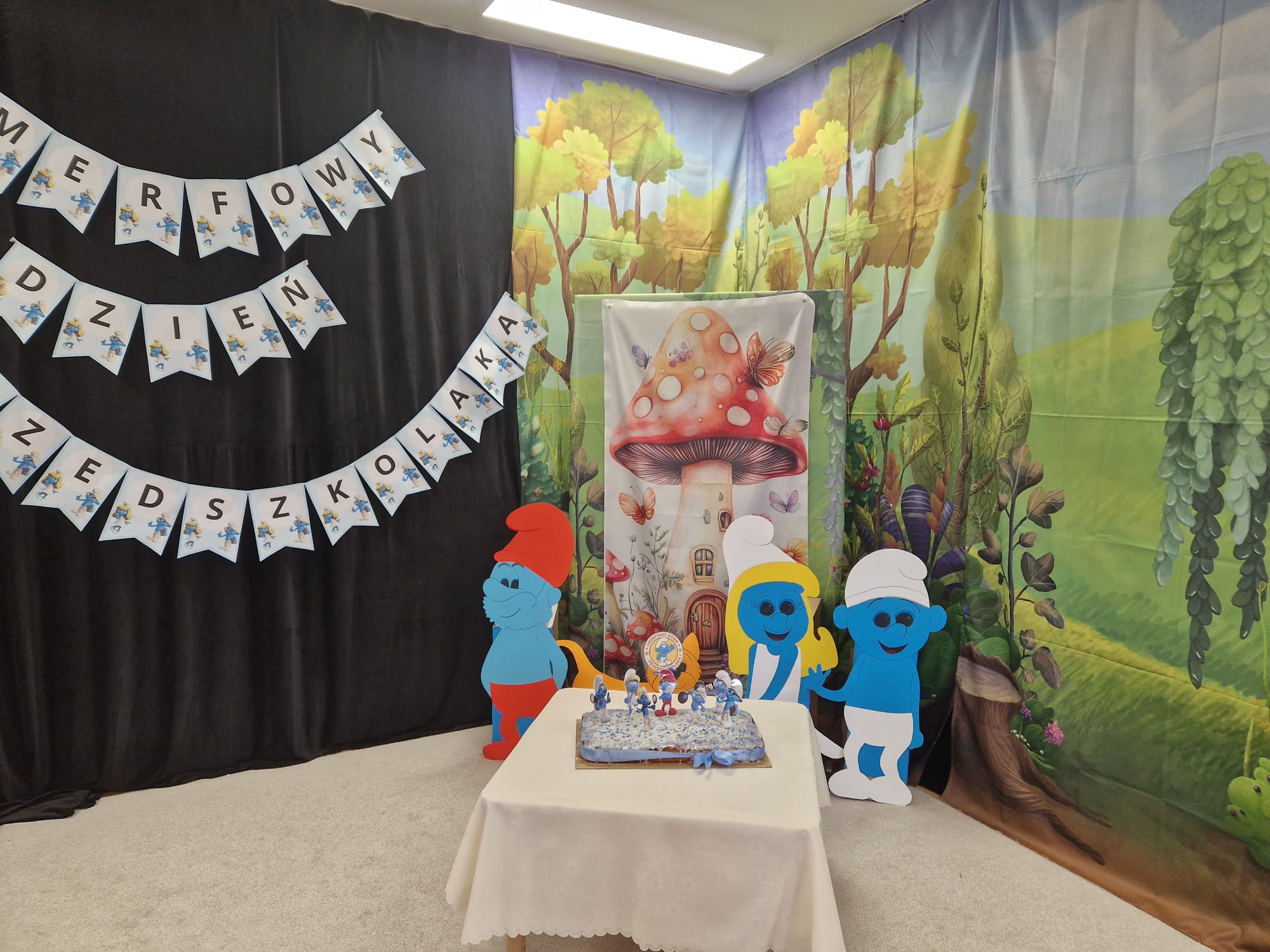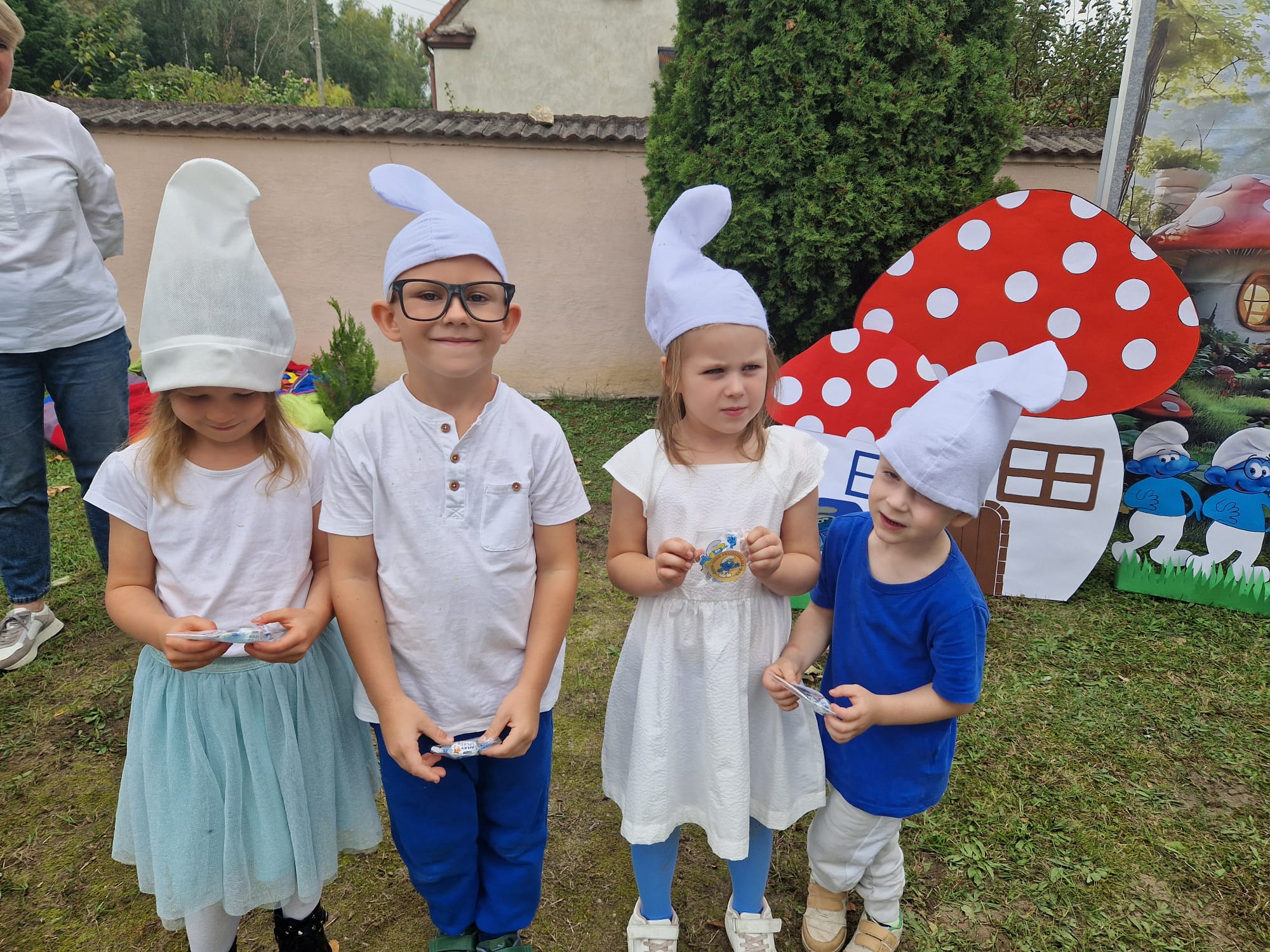 Na przedszkolaków czekały różne atrakcje: zabawy ruchowe, taneczne, zagadki i konkursy związane ze smerfową krainą. Naszych przedszkolaków odwiedził nawet pan burmistrz z słodkim poczęstunkiem. Był to dzień pełen radości, integracji i dobrej zabawy – bo przecież każdy przedszkolak to mały Smerf: odważny, mądry i wyjątkowy!