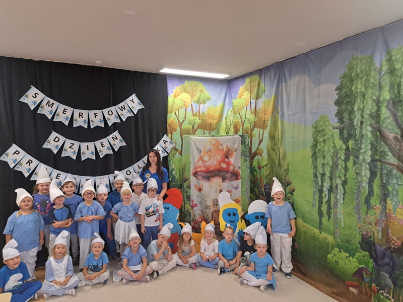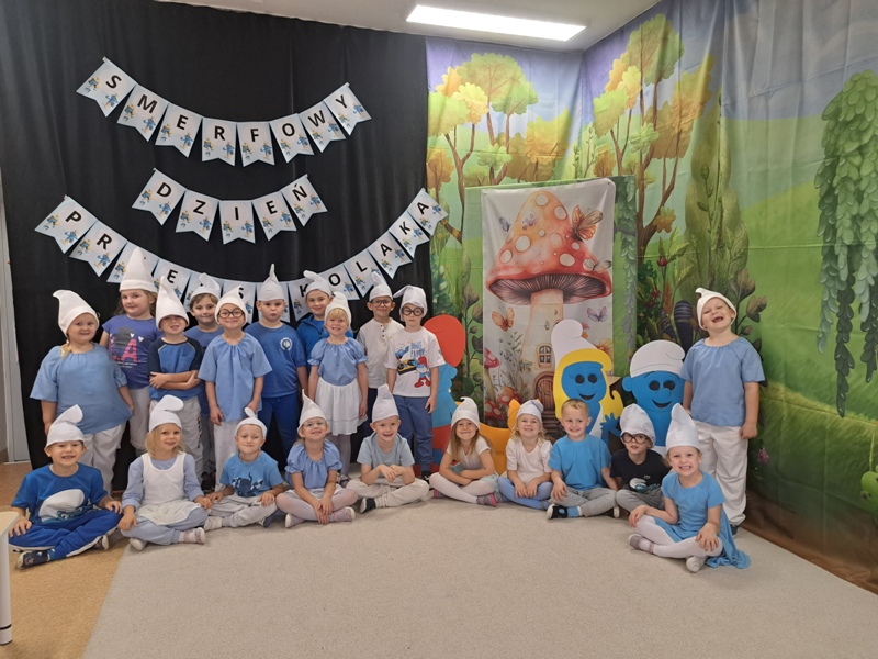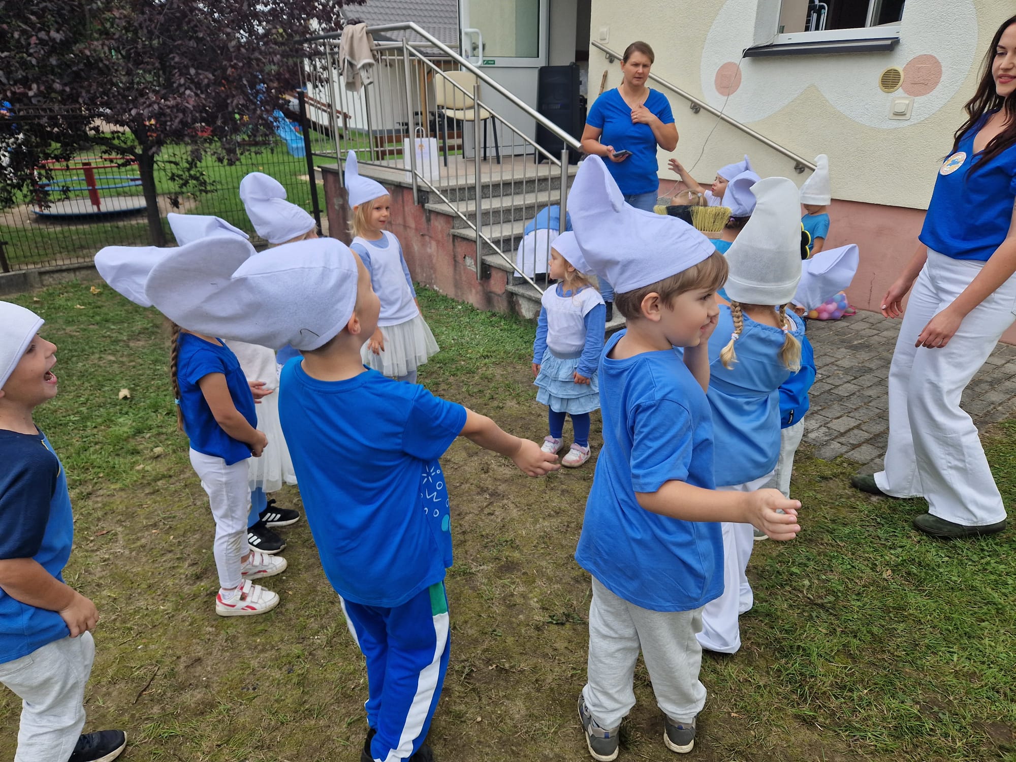 Tego dnia w salach zrobiło się niebiesko i bajkowo – dzieci wcieliły się w rolę małych Smerfów, a na twarzach pojawiły się uśmiechy od ucha do ucha.
