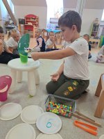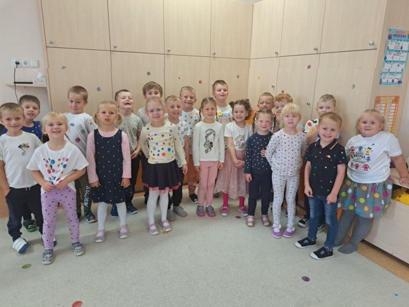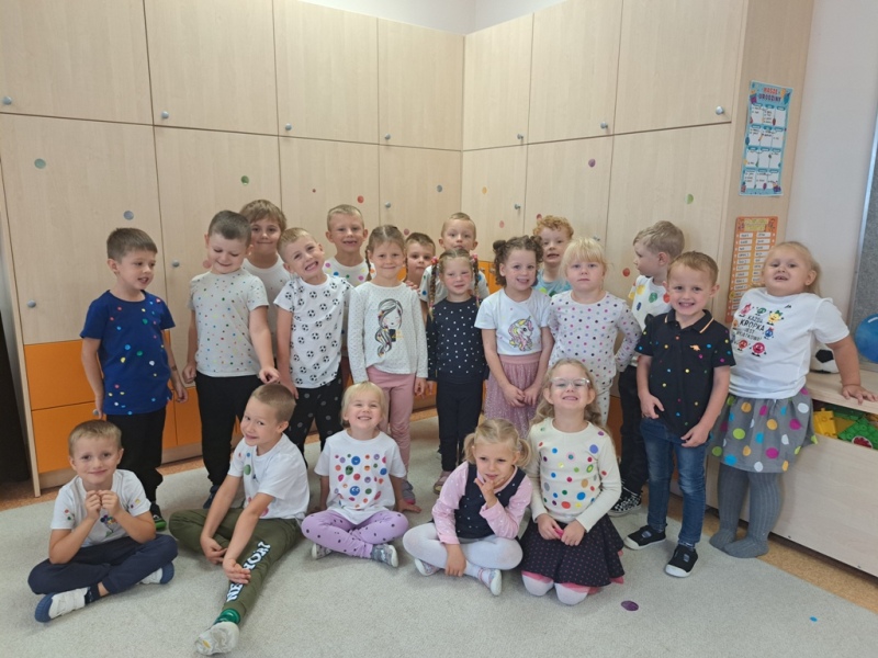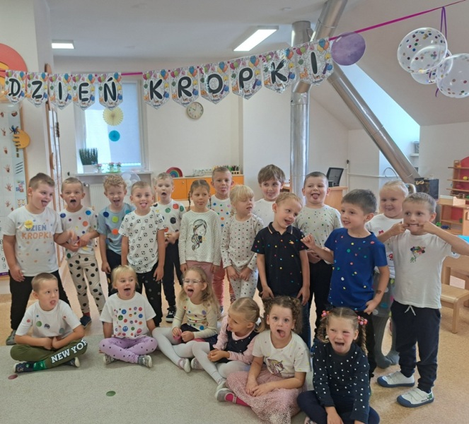 W dniu 15.09. w grupie Biedronek obchodziliśmy Międzynarodowy Dzień Kropki. Dzieci tego dnia przyszły ubrane w groszki i kropki. Świętowanie rozpoczęło się od zapoznania się z historią Vashti. Dzieci wysłuchały opowieści i uczestniczyły w wielu zabawach z kropką - rysowały swoje dzieła z kropki, układały kropkowe wzory, przeliczały, były również kropkowe zabawy przy muzyce. A na pamiątke zostały wykonane zdjęcia w fotobudce.