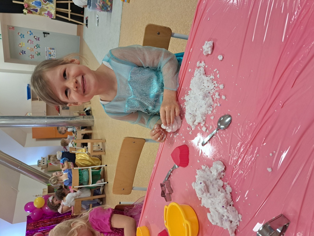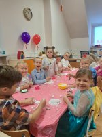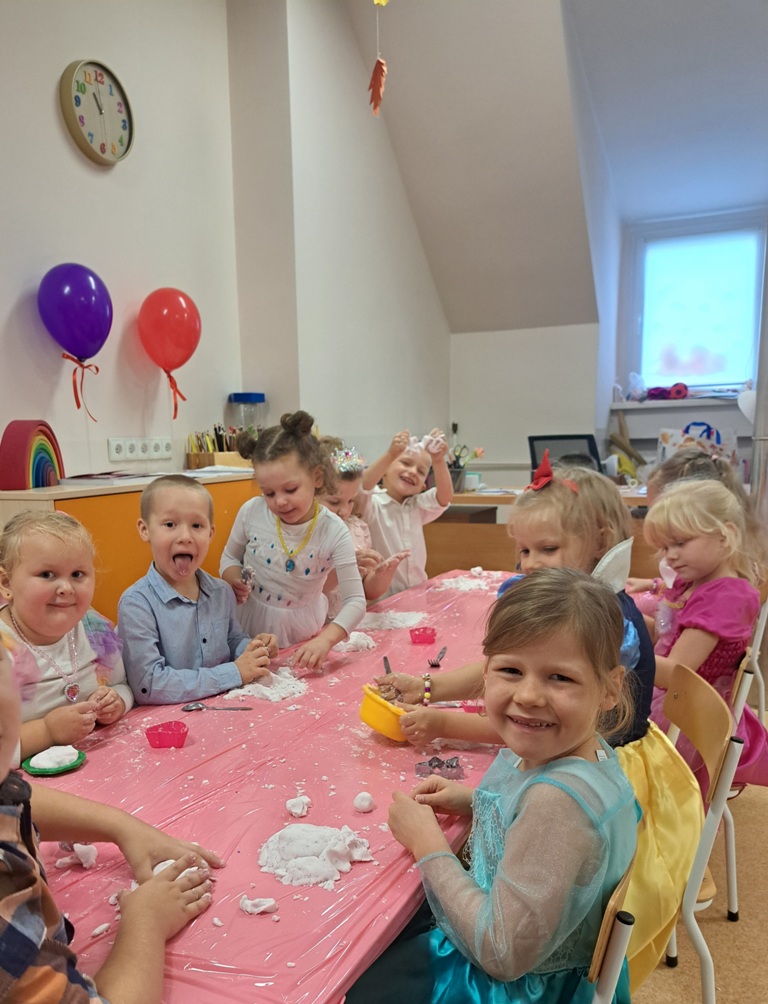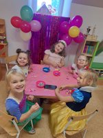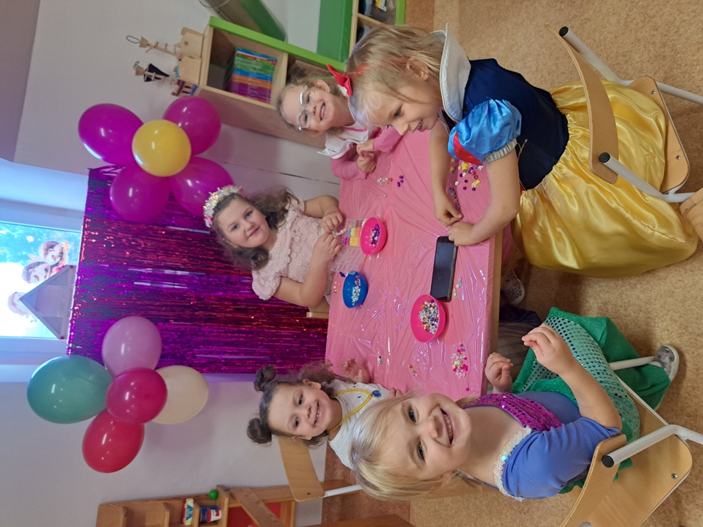 W naszym przedszkolu obchodziliśmy wyjątkowe święto – Księżniczkowy Dzień Dziewczynek! To był dzień pełen uśmiechu, blasku i dobrej zabawy. Sala zamieniła się w salę balową, a dziewczynki w piękne księżniczki w koronach, tiulowych sukienkach i z błyszczącymi uśmiechami. Chłopcy jak prawdziwi dżentelmeni złożyli koleżankom życzenia, wręczyli drobne upominki i zaprosili je do wspólnej zabawy. W programie dnia nie zabrakło: tańców na królewskim balu, tworzenia własnych biżuterii, zabaw muzycznych i konkursów dla małych księżniczek. To był magiczny dzień pełen radości, serdeczności i blasku!