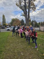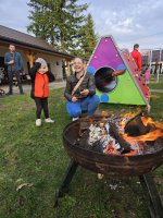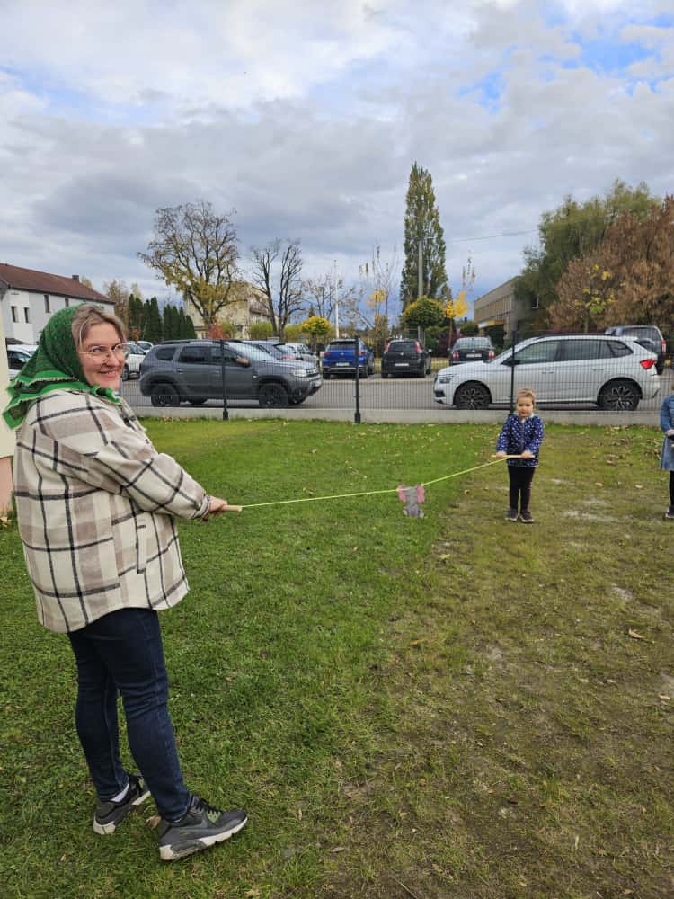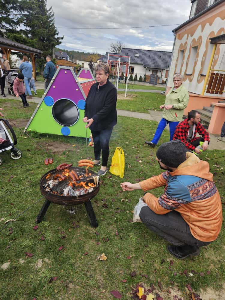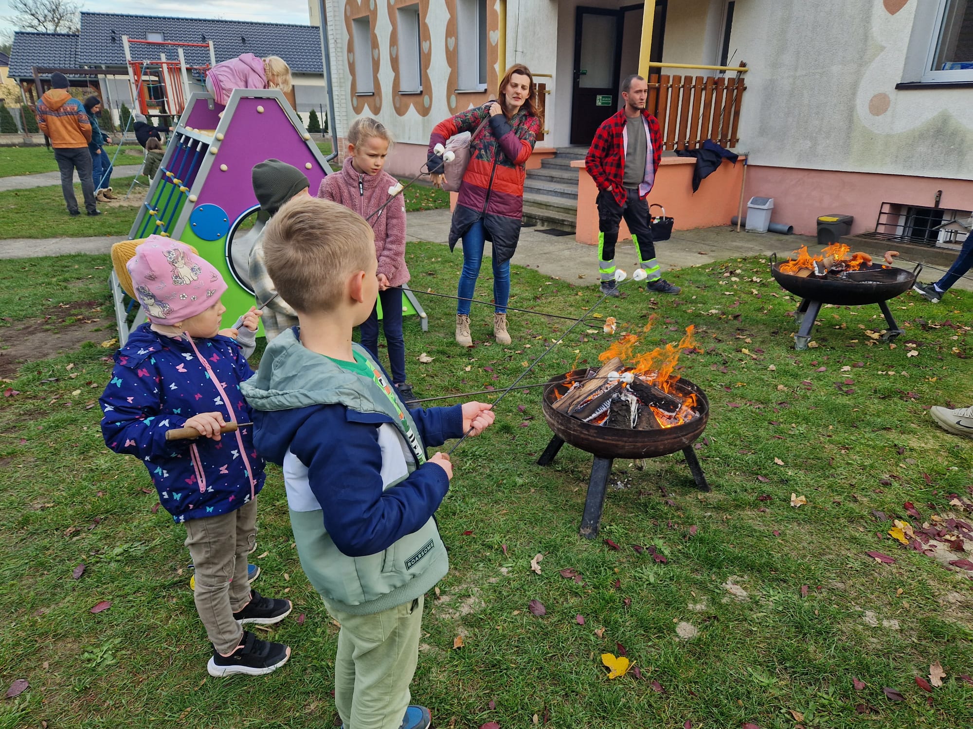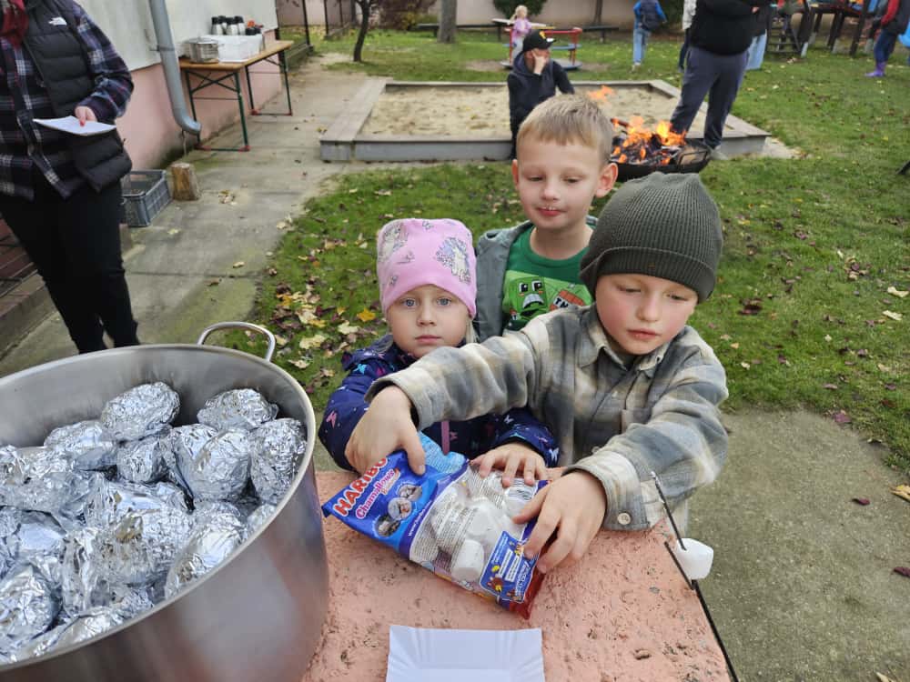 Centralnym punktem spotkania było wspólne ognisko, przy którym piekliśmy aromatyczne kiełbaski oraz – jak na Dzień Ziemniaka przystało – pyszne pieczone ziemniaki. Wspólny posiłek na świeżym powietrzu sprzyjał rozmowom, integracji i miłemu spędzaniu czasu w rodzinnej atmosferze.