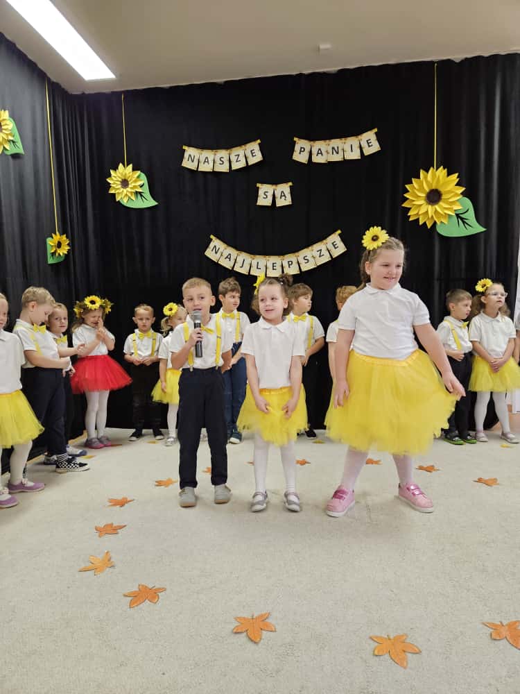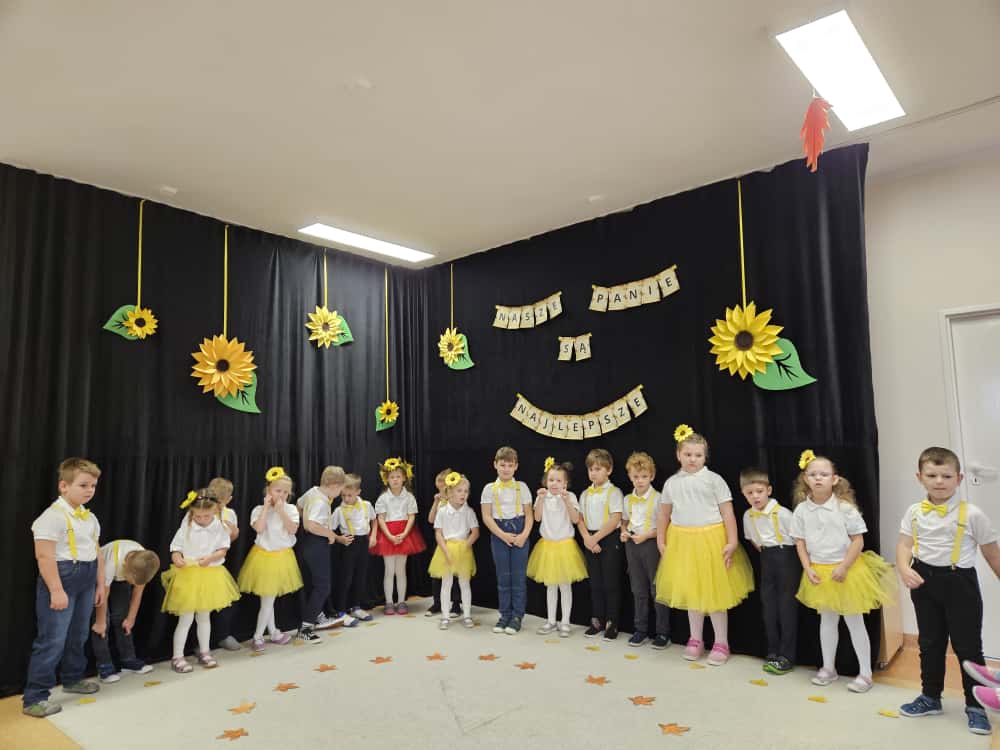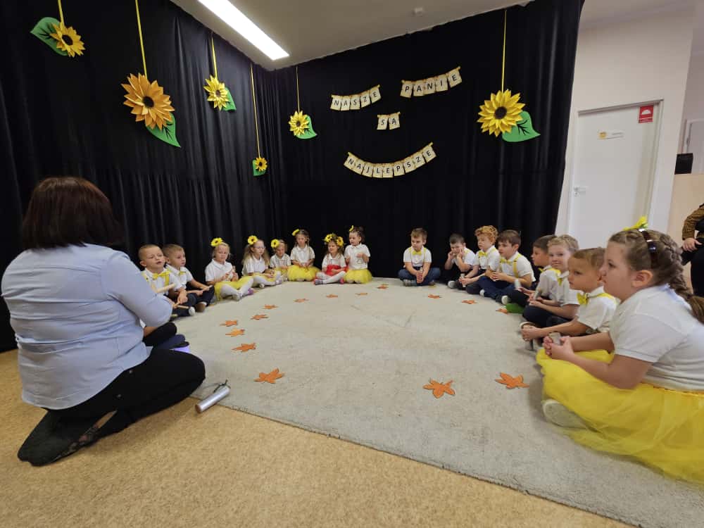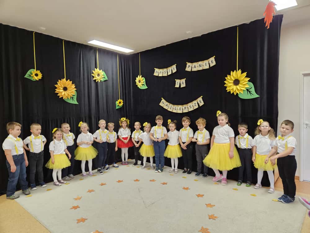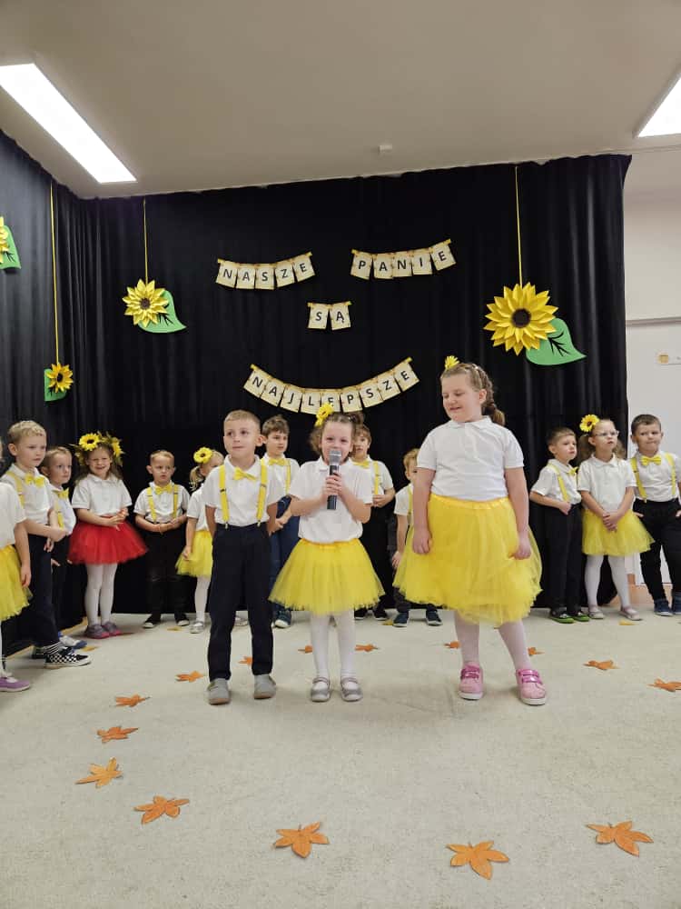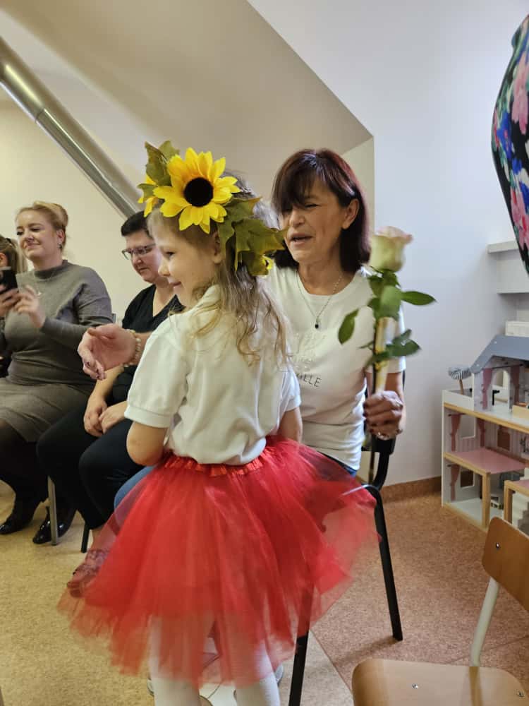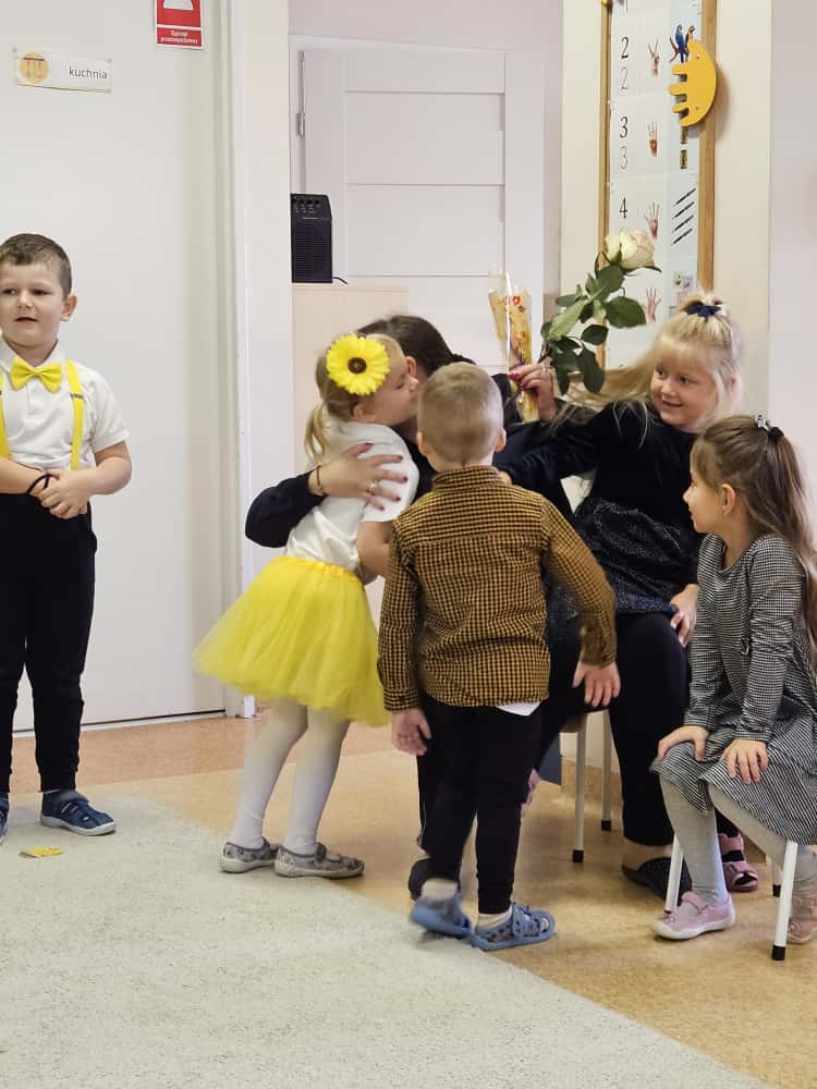 Największym wydarzeniem dnia była uroczysta akademia, podczas której przedszkolaki zaprezentowały krótki program artystyczny. Dzieci z wielkim zaangażowaniem recytowały wierszyki i śpiewały piosenki. Występ został nagrodzony gromkimi brawami, a na twarzach dorosłych pojawiło się wiele wzruszenia. Do życzeń dołączyła się także nasza Rada Rodziców oraz Pan Wiceburmistrz.