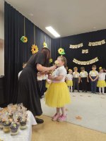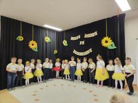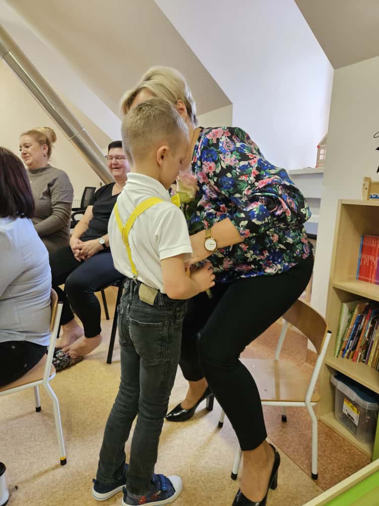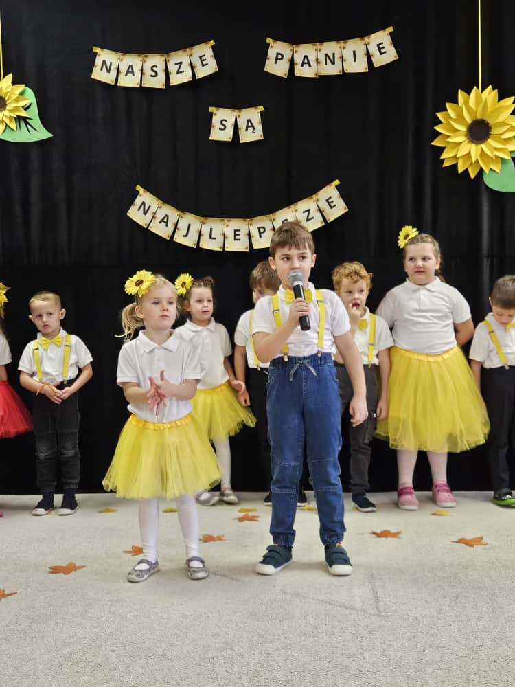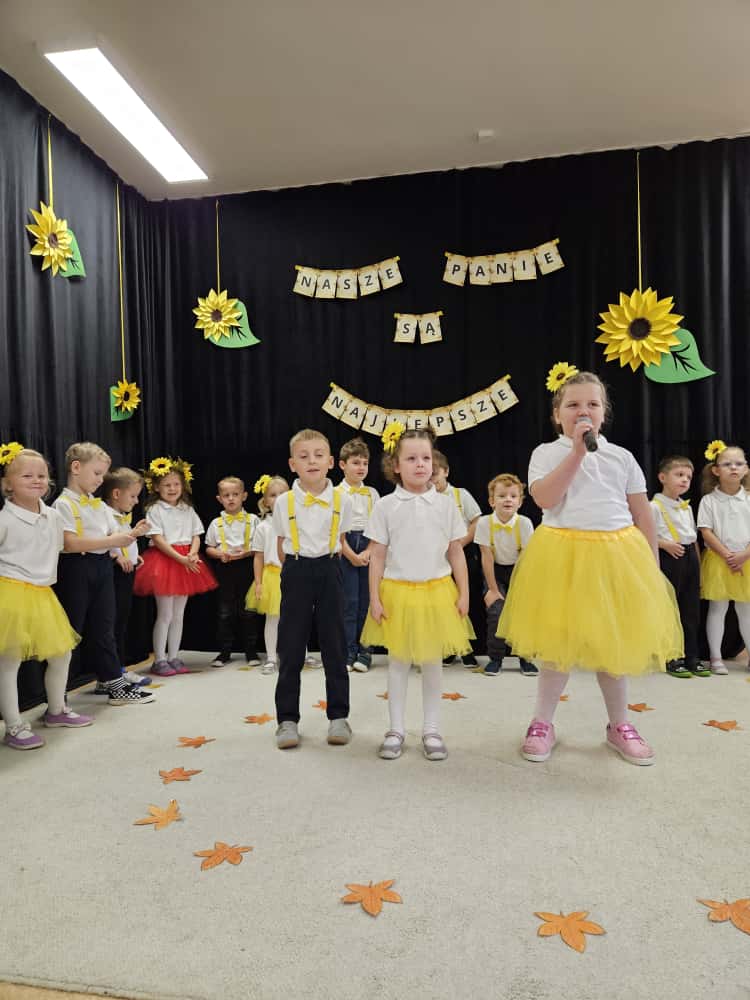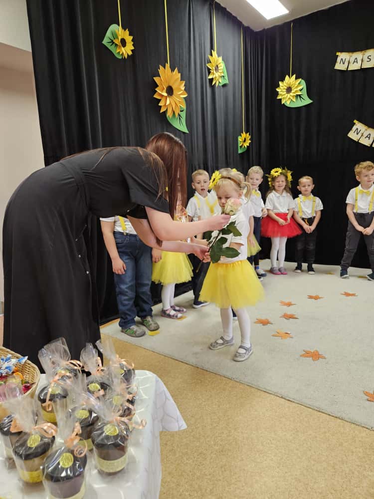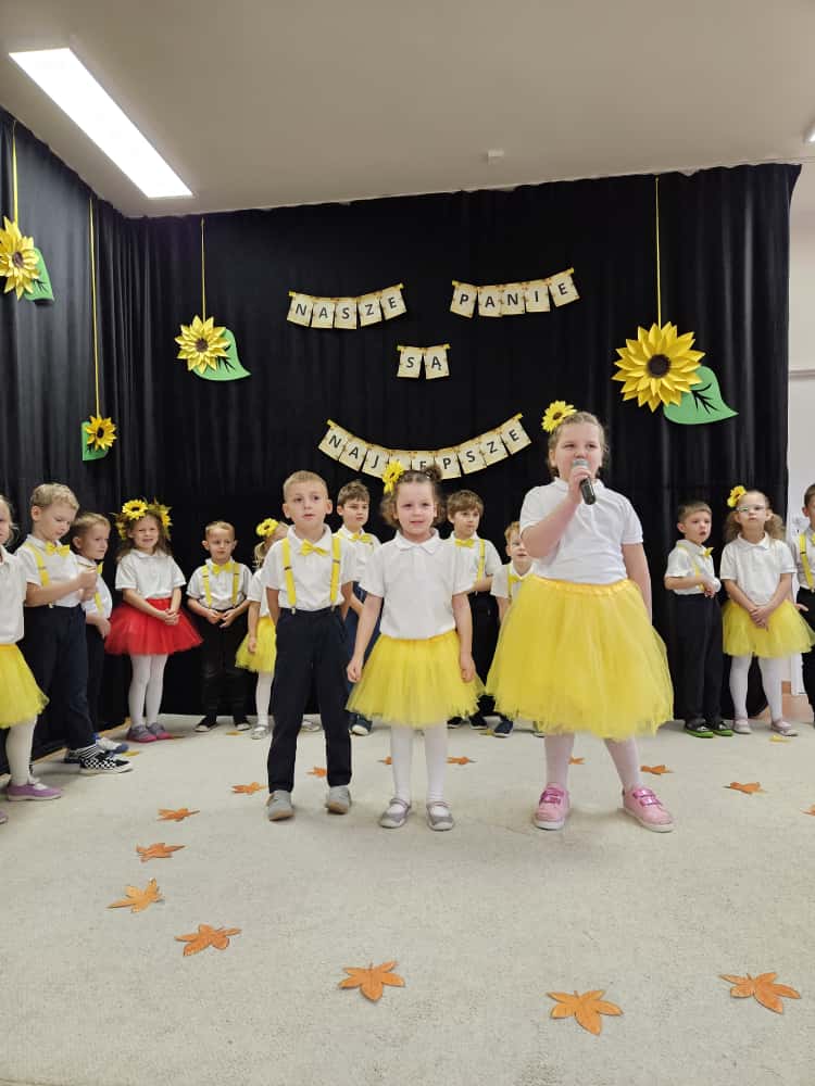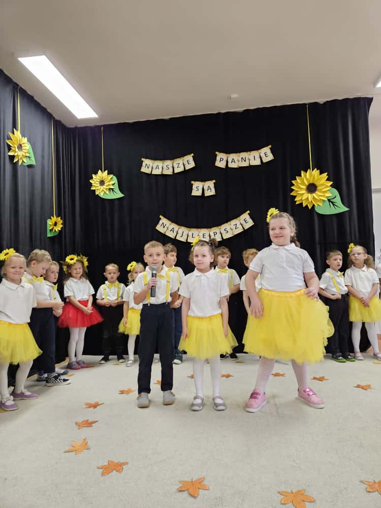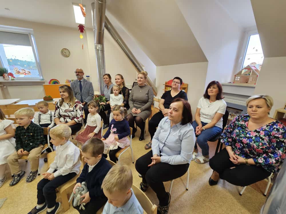 Największym wydarzeniem dnia była uroczysta akademia, podczas której przedszkolaki zaprezentowały krótki program artystyczny. Dzieci z wielkim zaangażowaniem recytowały wierszyki i śpiewały piosenki. Występ został nagrodzony gromkimi brawami, a na twarzach dorosłych pojawiło się wiele wzruszenia. Do życzeń dołączyła się także nasza Rada Rodziców oraz Pan Wiceburmistrz.