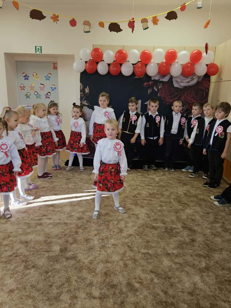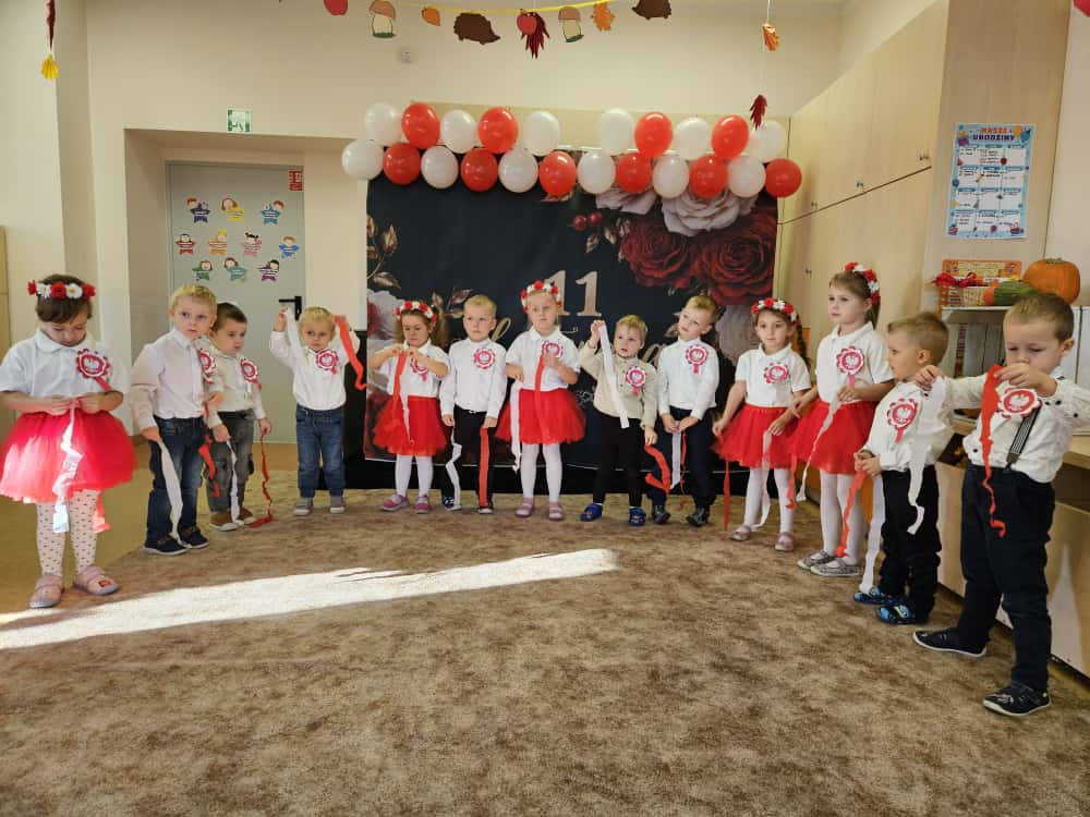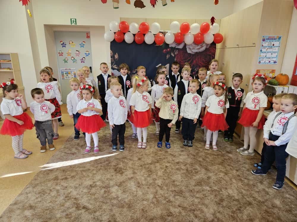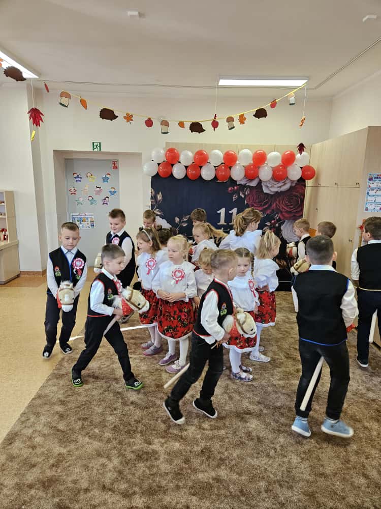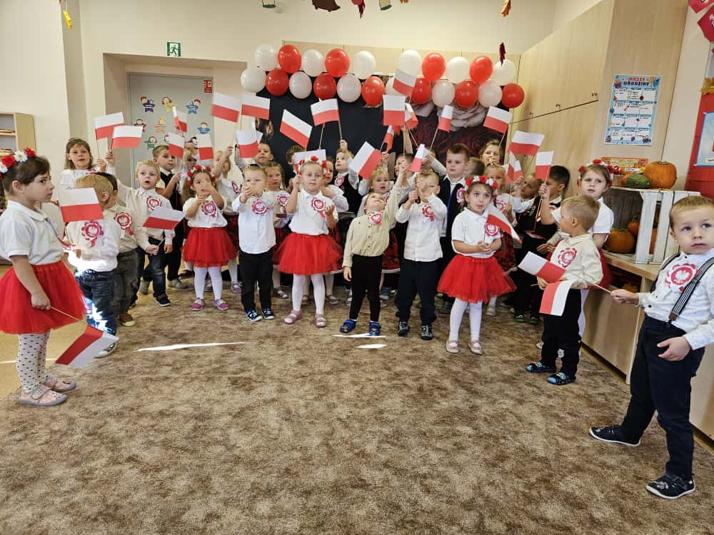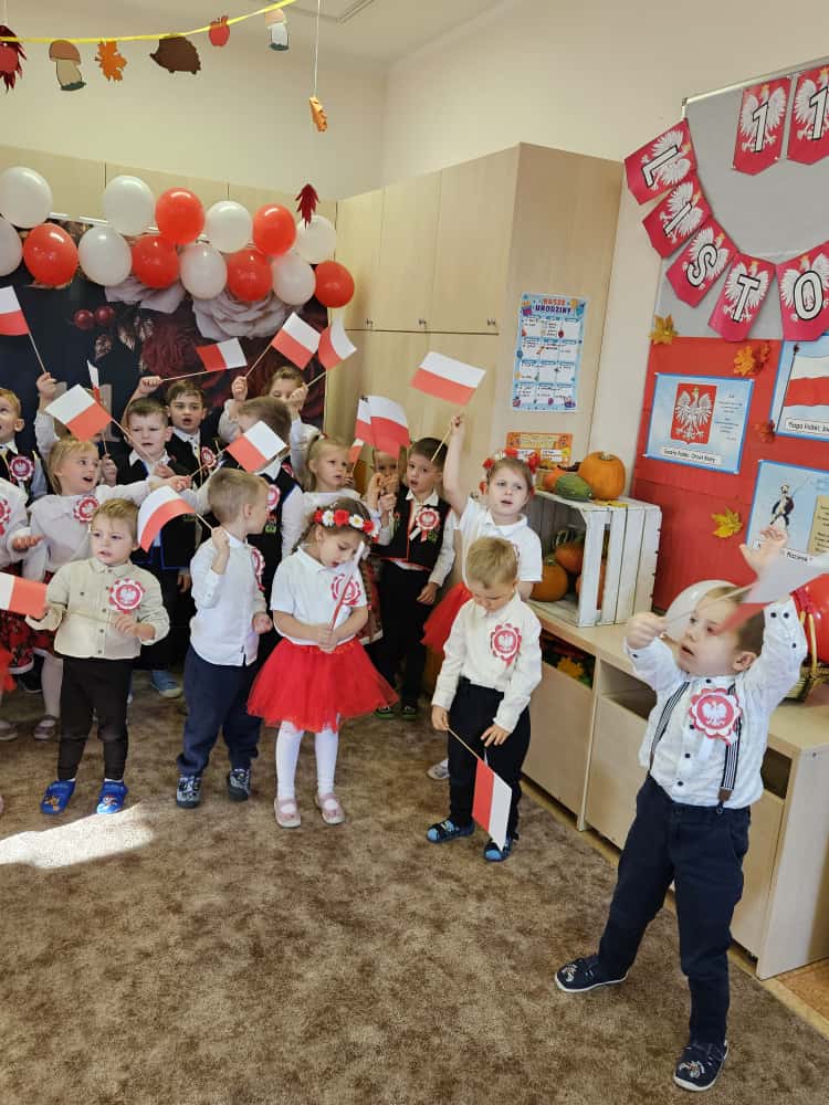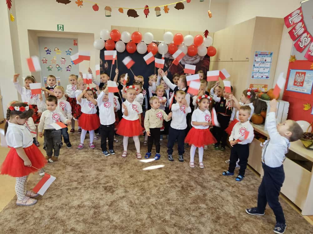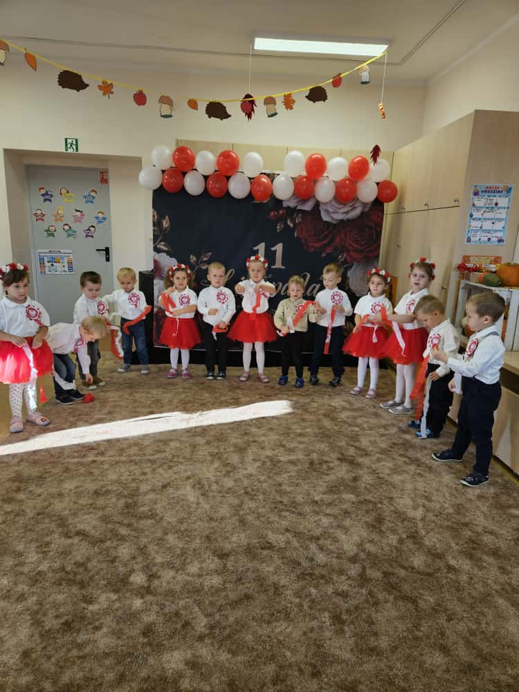 W piątek, 7 listopada, w naszym przedszkolu odbył się uroczysty apel z okazji Narodowego Święta Niepodległości. Dzieci z dumą i zaangażowaniem zaprezentowały program artystyczny upamiętniający to ważne wydarzenie w historii naszego kraju.