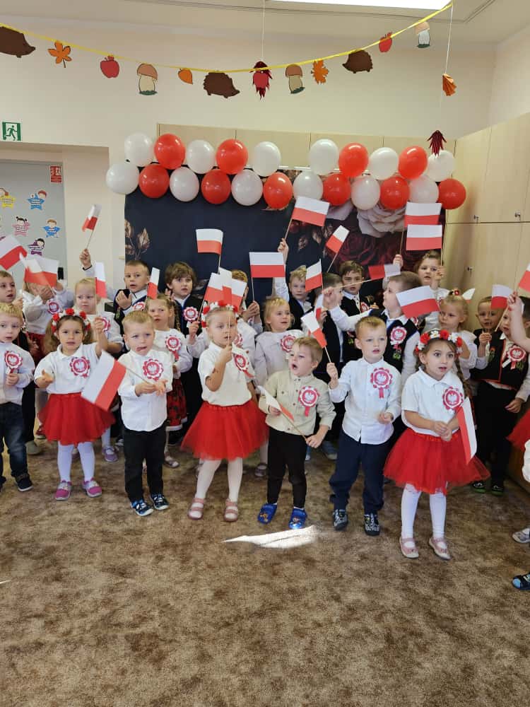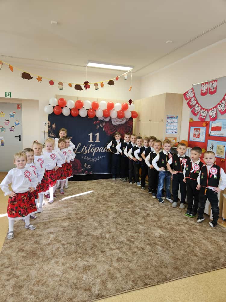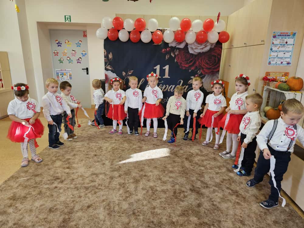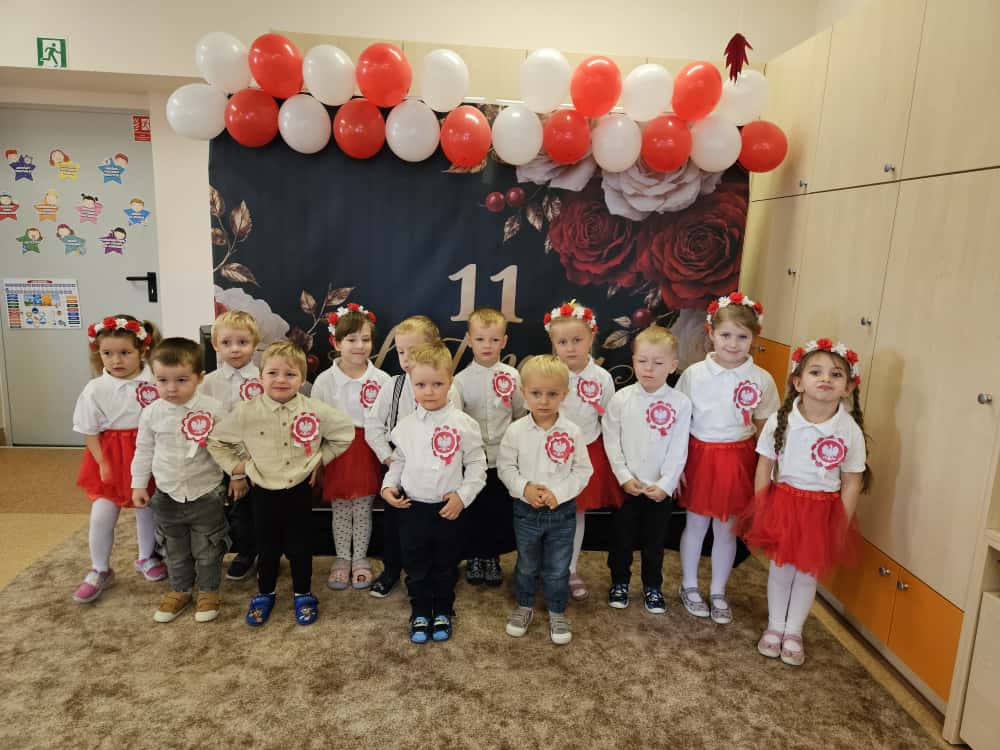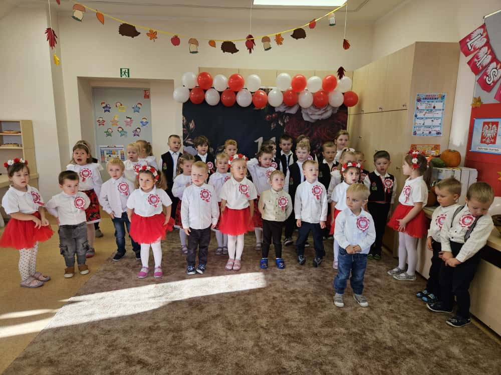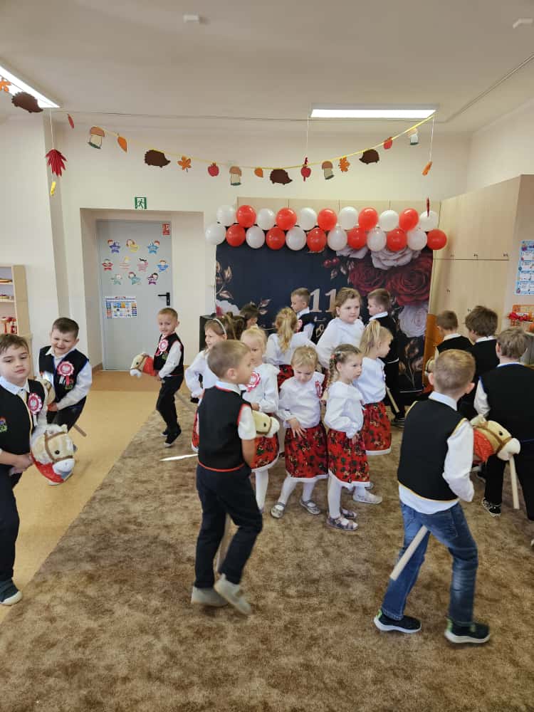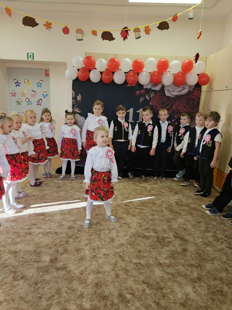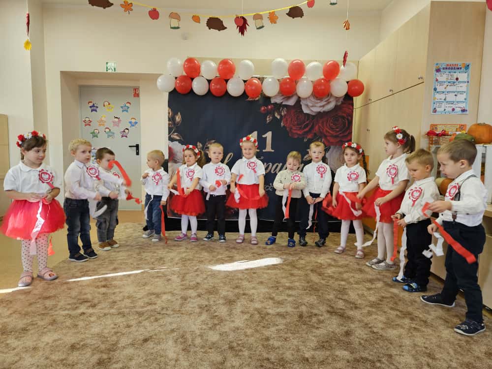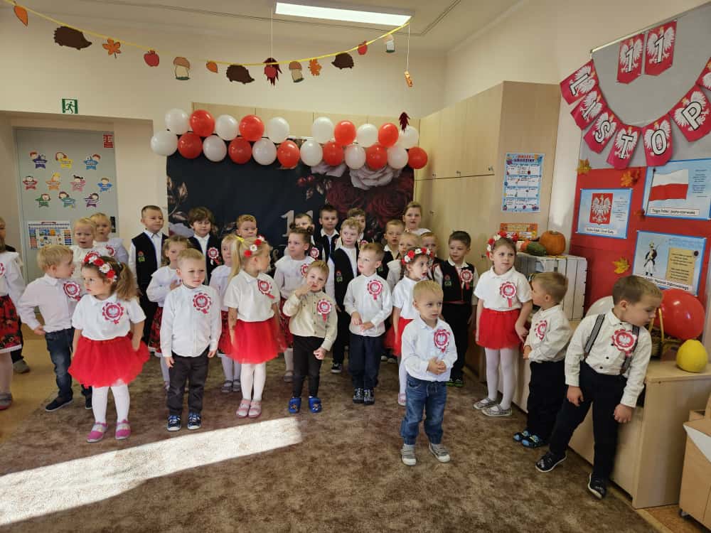 W piątek, 7 listopada, w naszym przedszkolu odbył się uroczysty apel z okazji Narodowego Święta Niepodległości. Dzieci z dumą i zaangażowaniem zaprezentowały program artystyczny upamiętniający to ważne wydarzenie w historii naszego kraju.