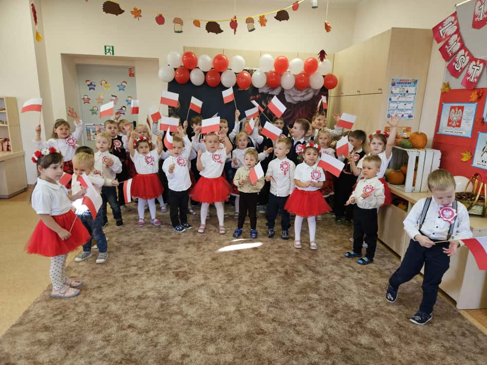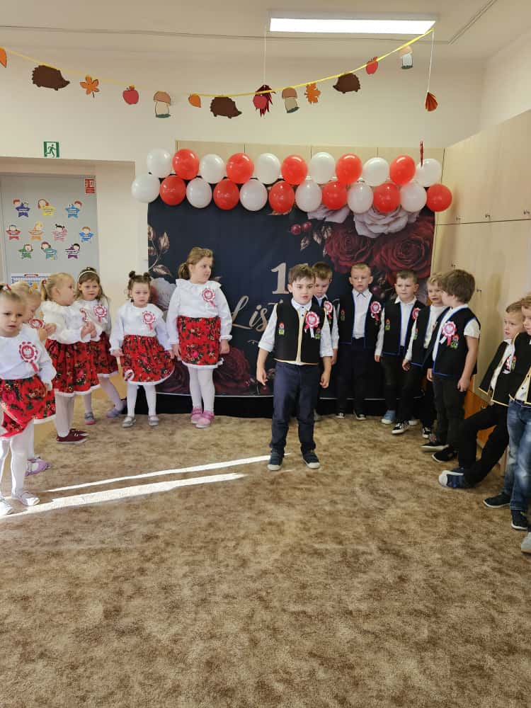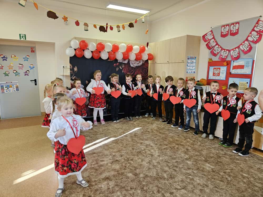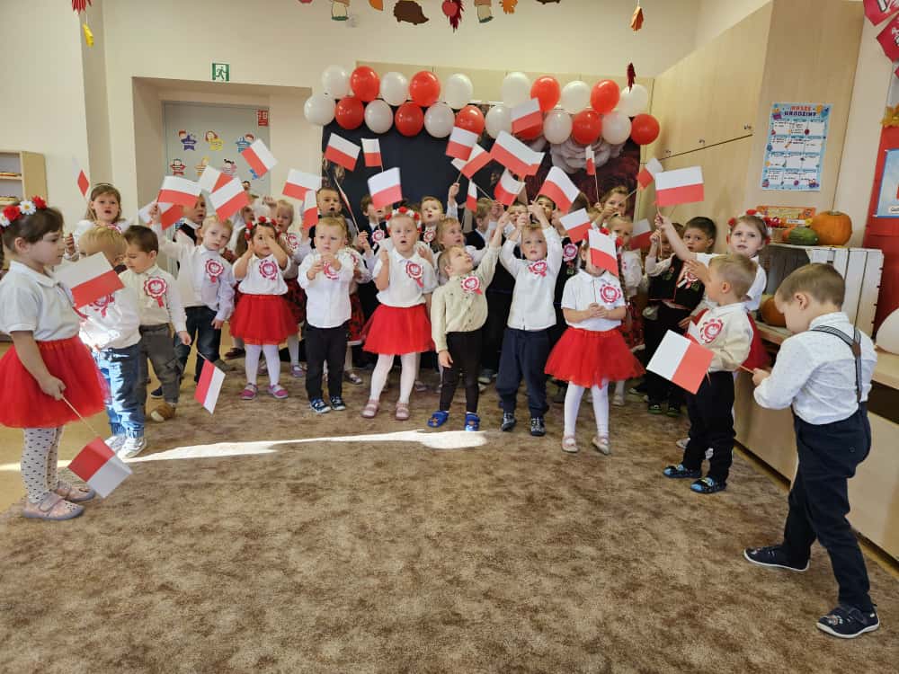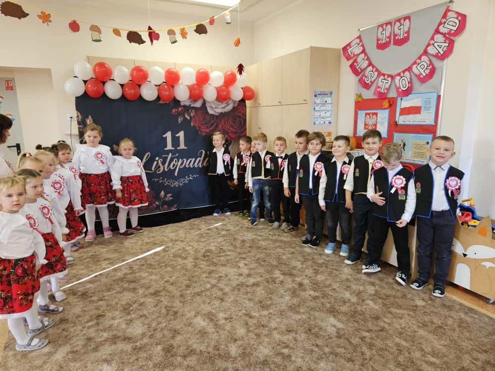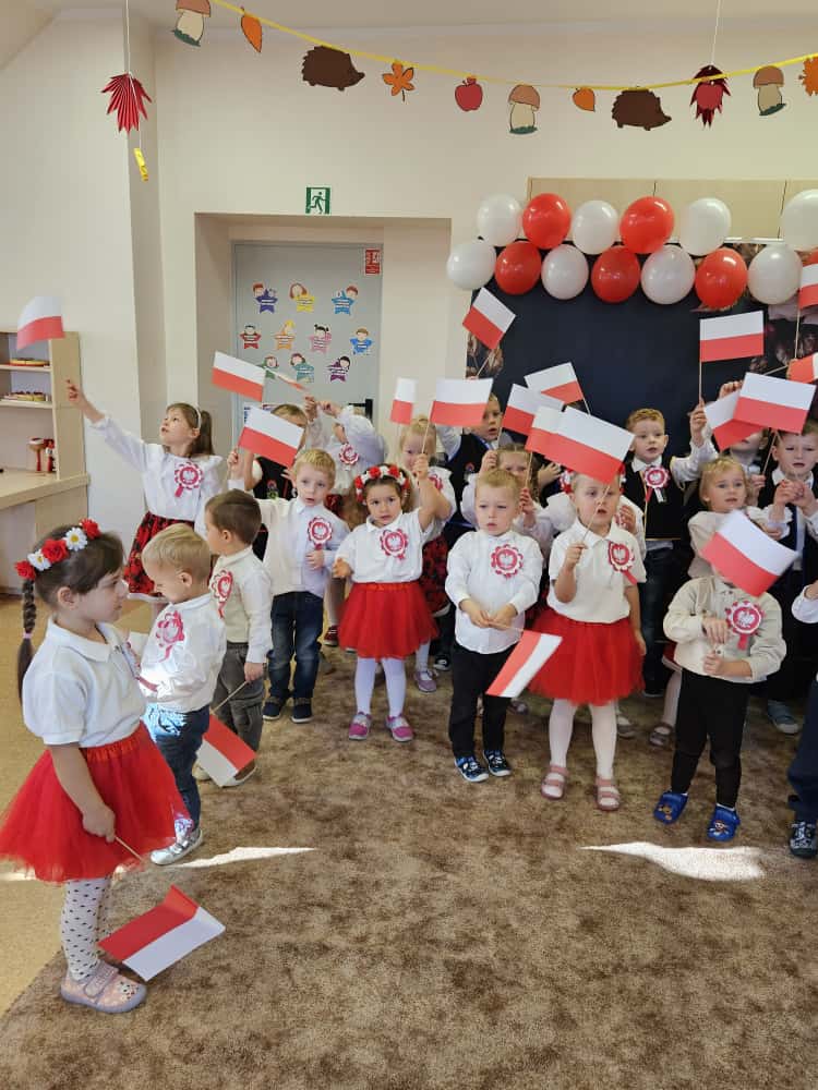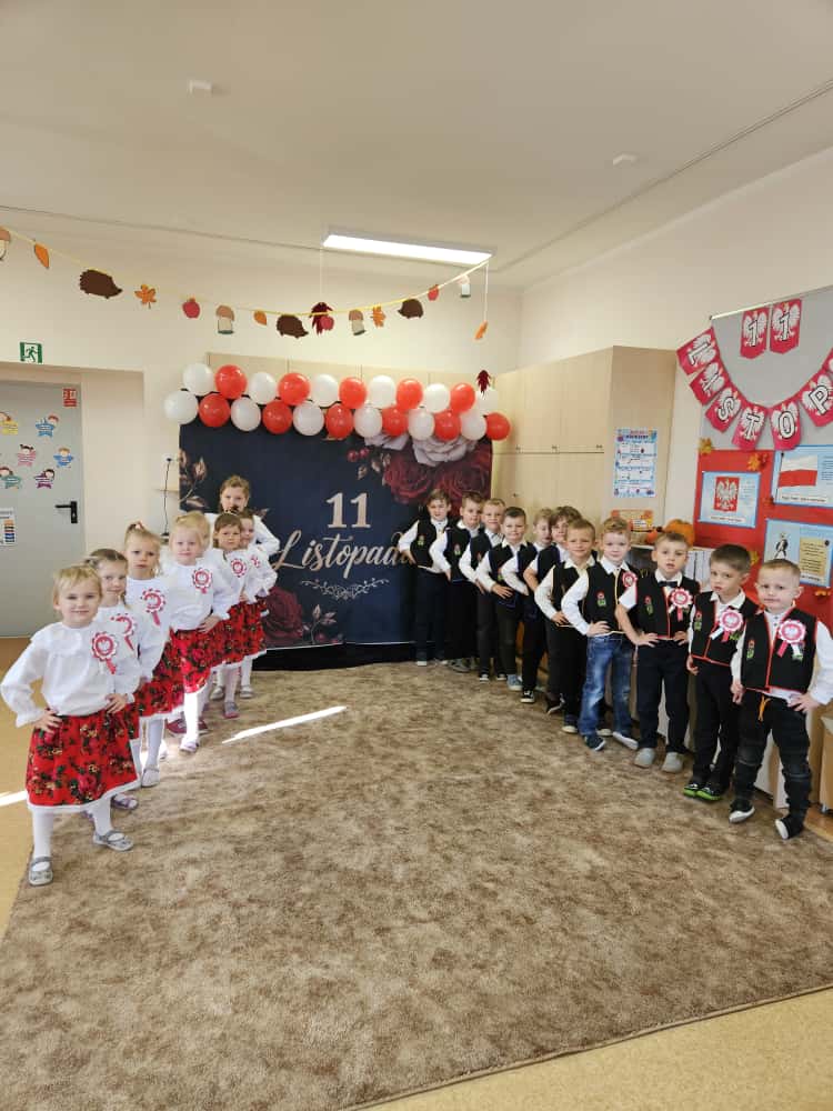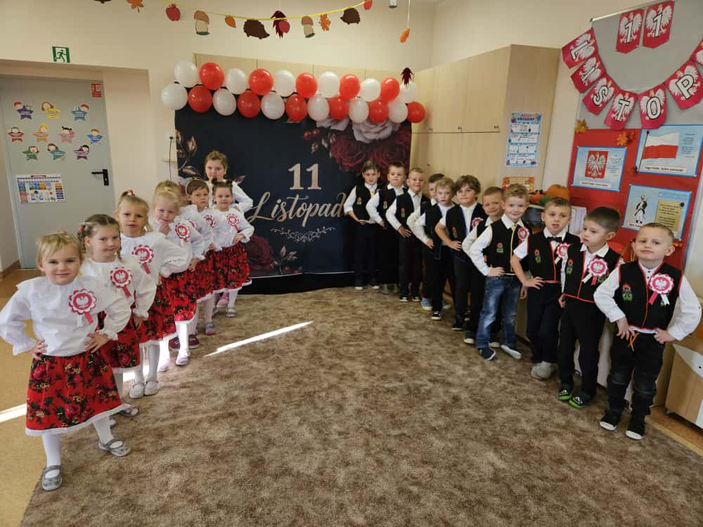W piątek, 7 listopada, w naszym przedszkolu odbył się uroczysty apel z okazji Narodowego Święta Niepodległości. Dzieci z dumą i zaangażowaniem zaprezentowały program artystyczny upamiętniający to ważne wydarzenie w historii naszego kraju.