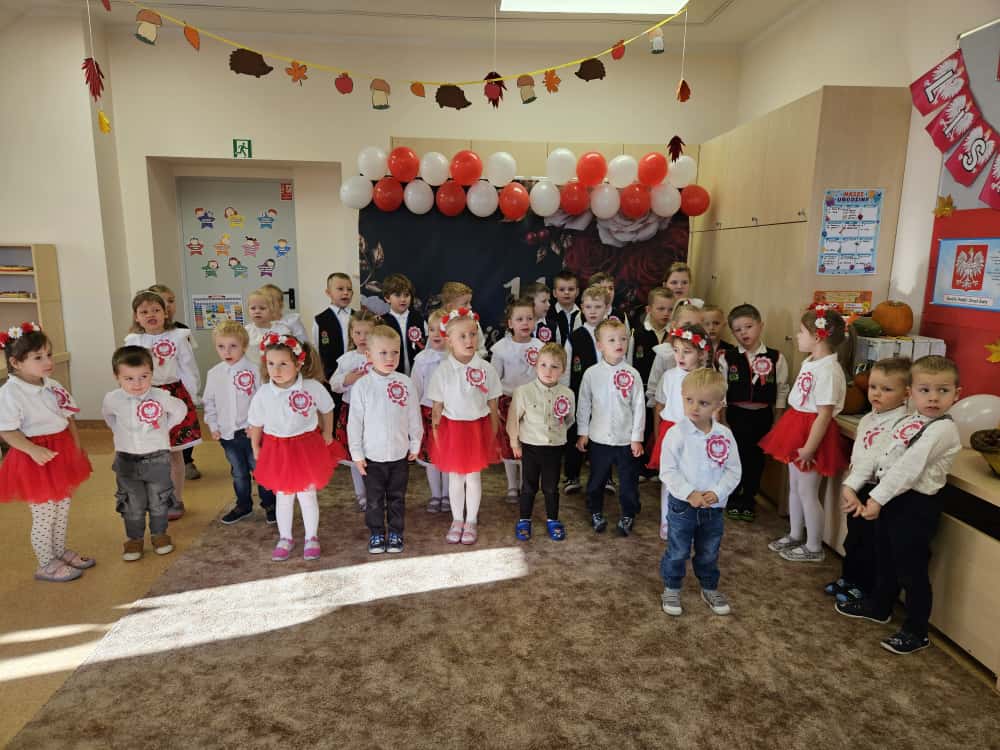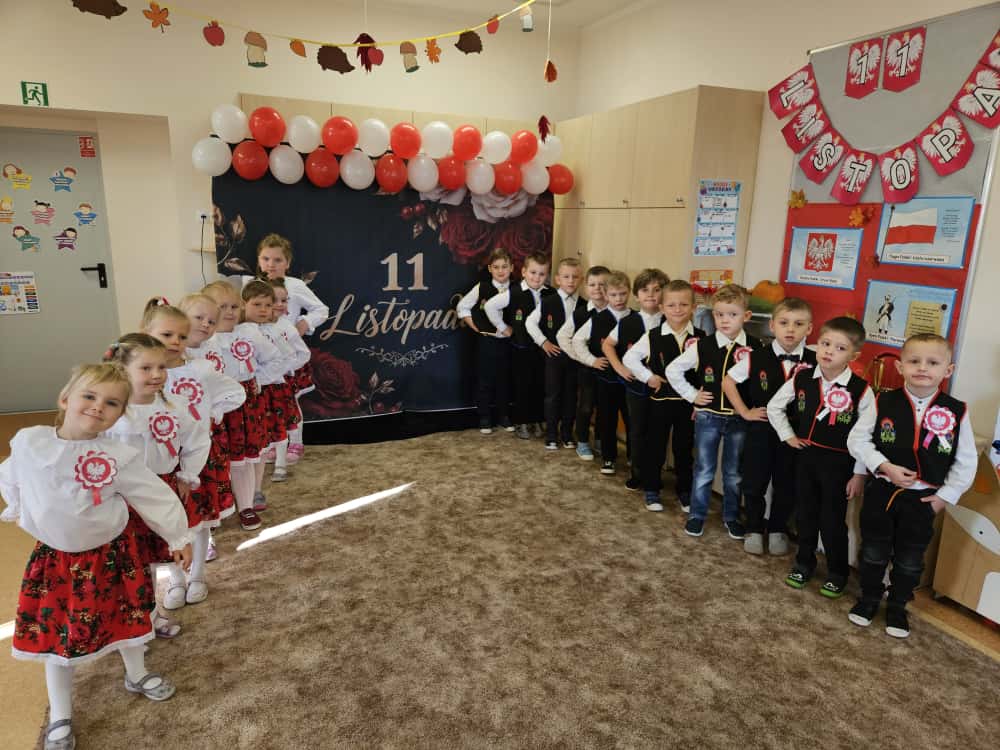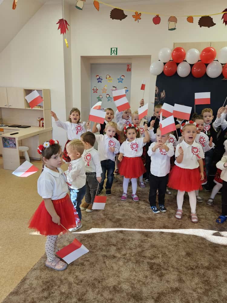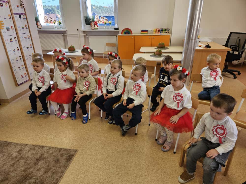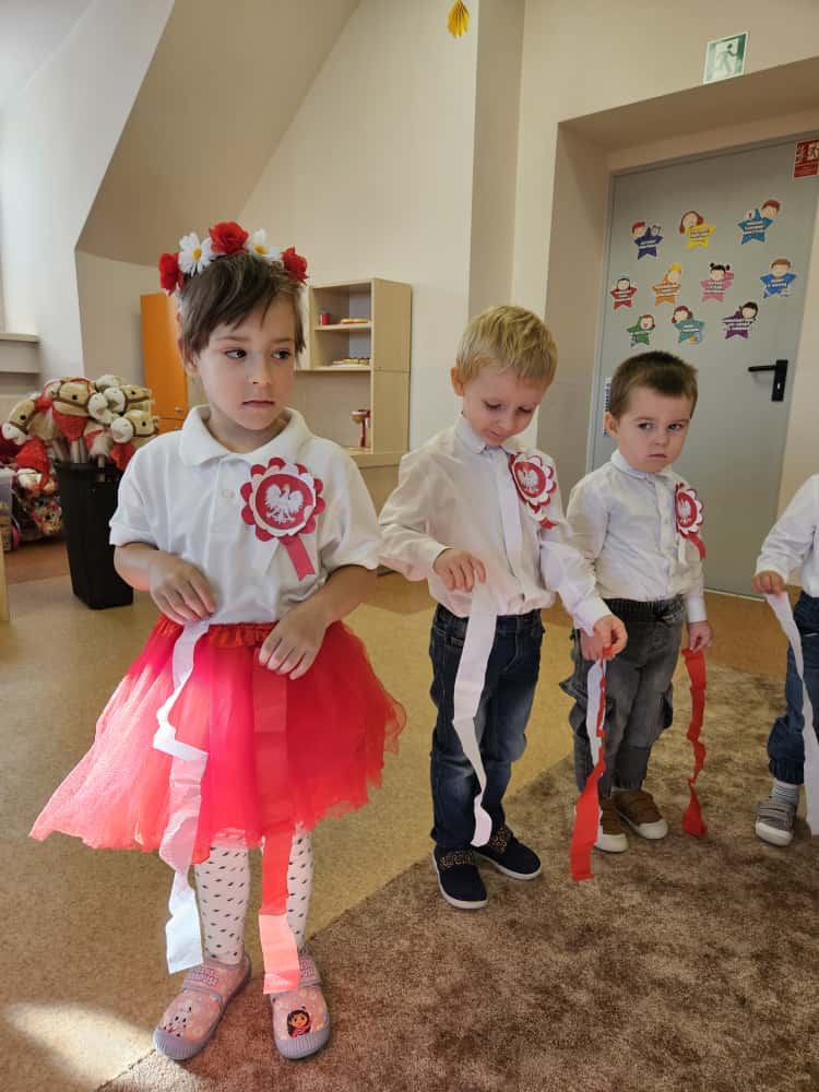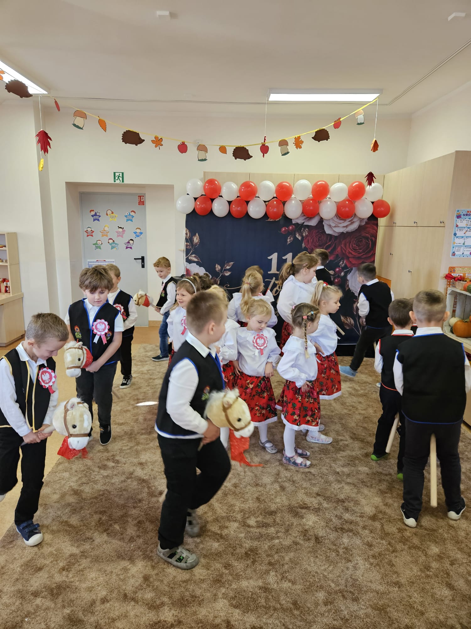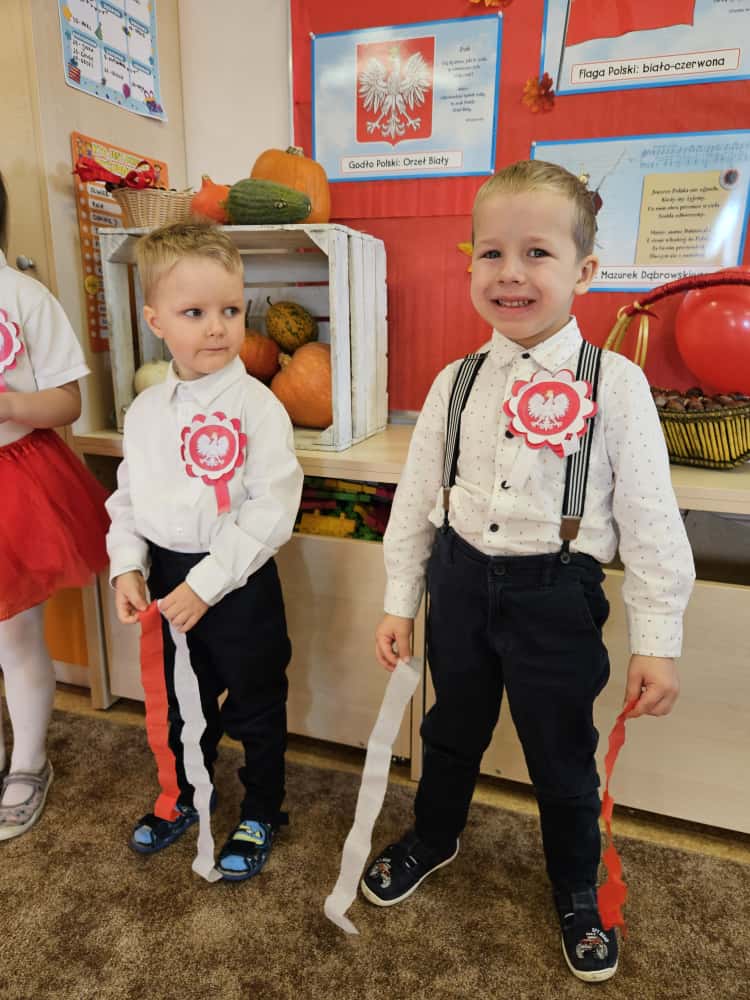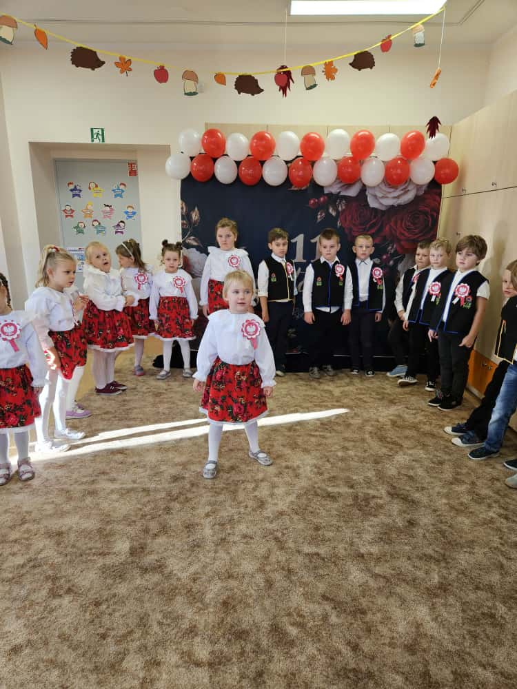 W piątek, 7 listopada, w naszym przedszkolu odbył się uroczysty apel z okazji Narodowego Święta Niepodległości. Dzieci z dumą i zaangażowaniem zaprezentowały program artystyczny upamiętniający to ważne wydarzenie w historii naszego kraju.