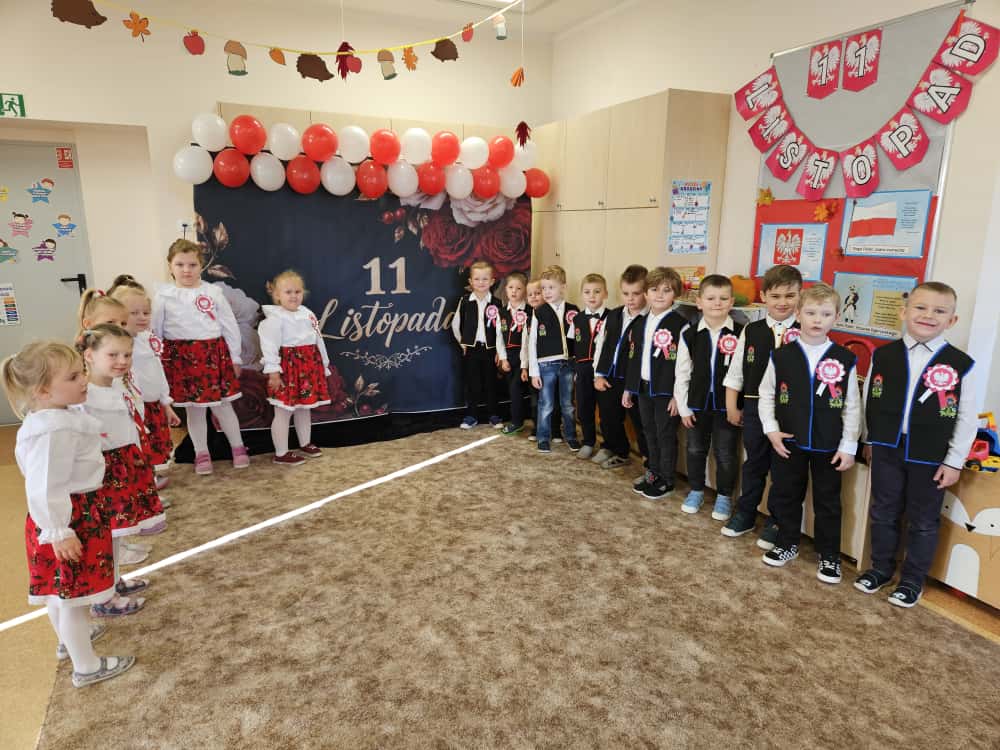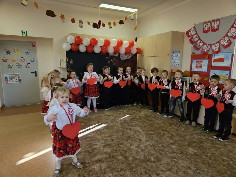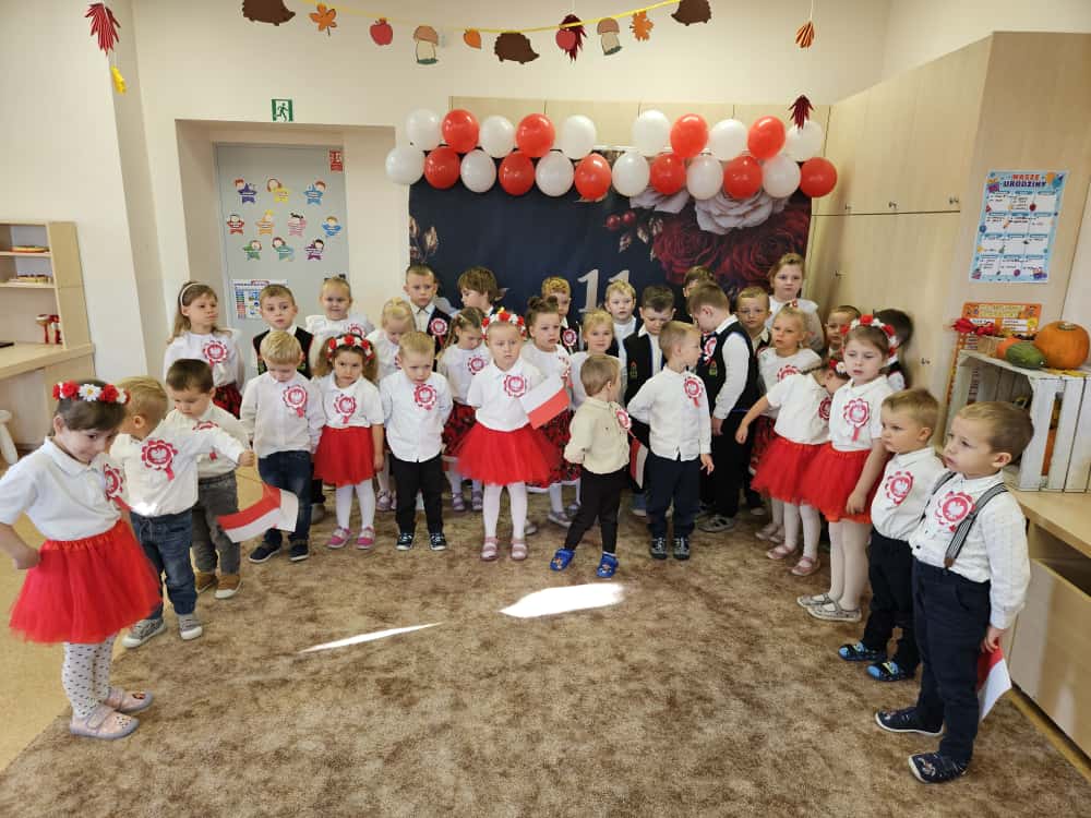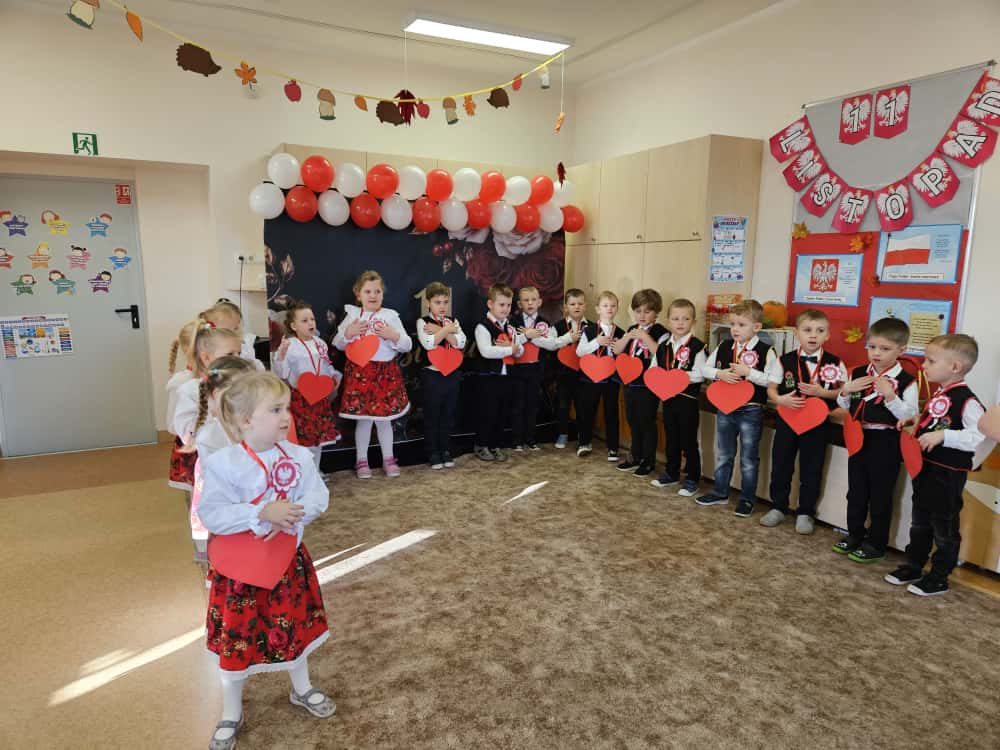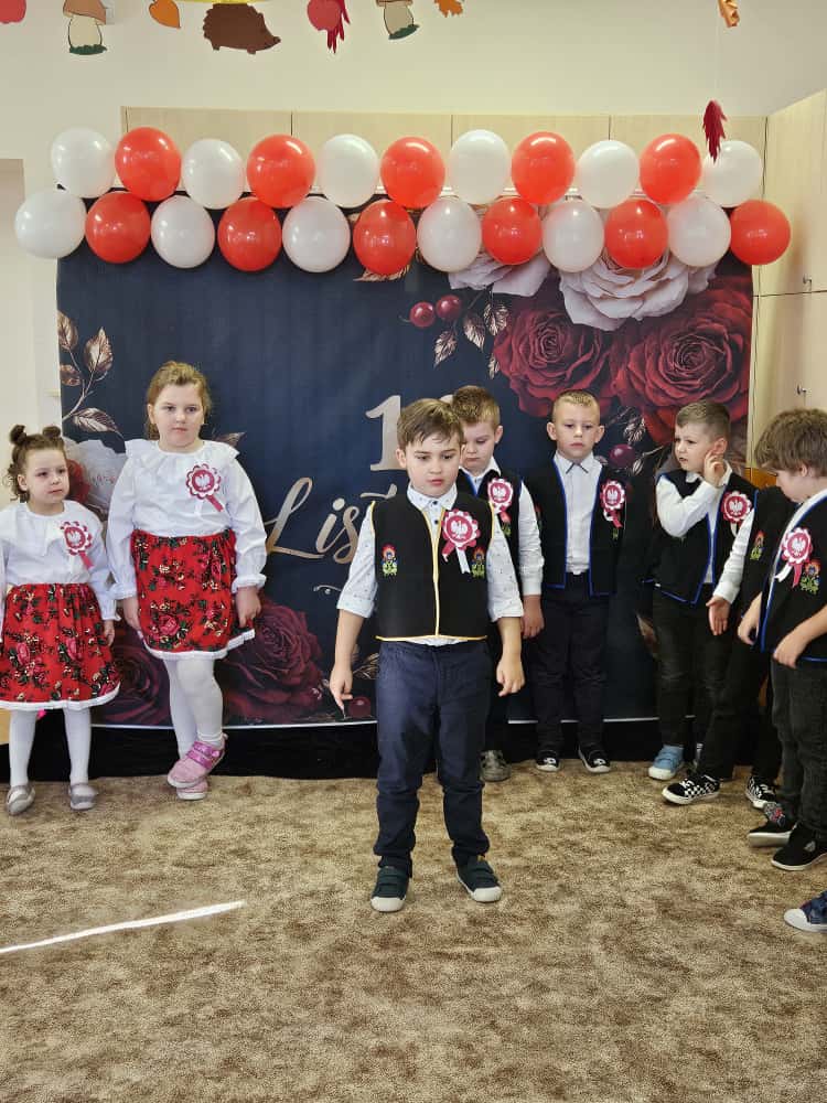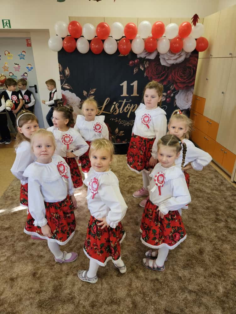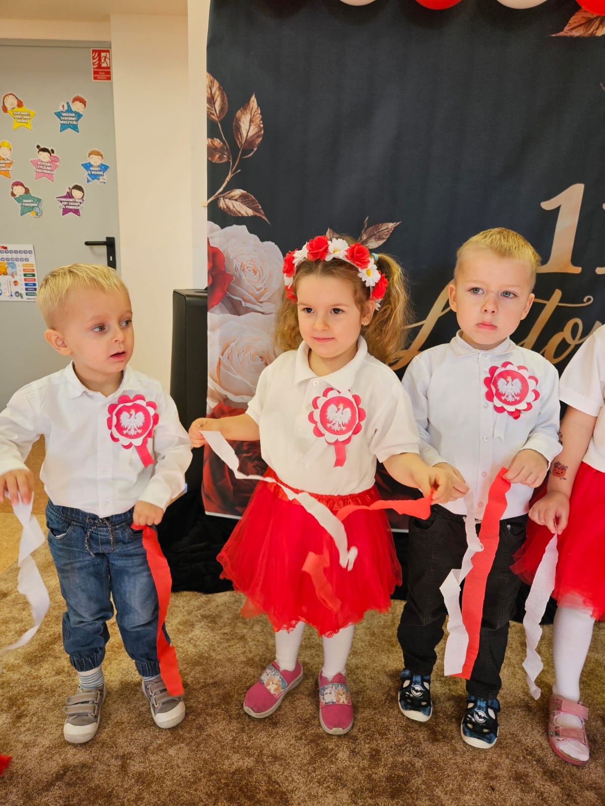 W piątek, 7 listopada, w naszym przedszkolu odbył się uroczysty apel z okazji Narodowego Święta Niepodległości. Dzieci z dumą i zaangażowaniem zaprezentowały program artystyczny upamiętniający to ważne wydarzenie w historii naszego kraju.
