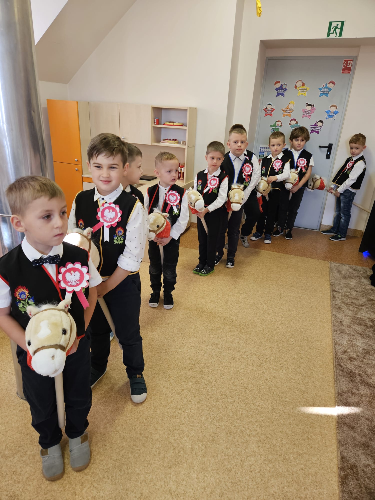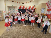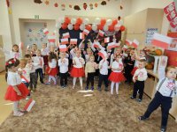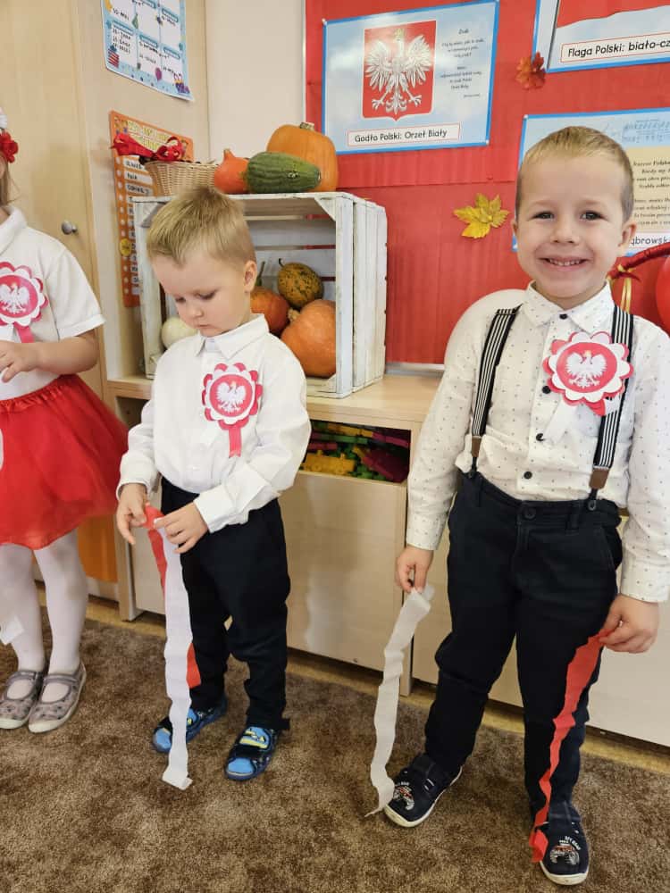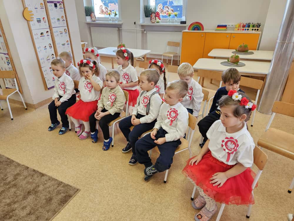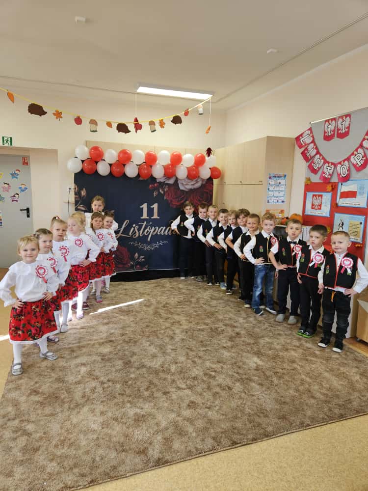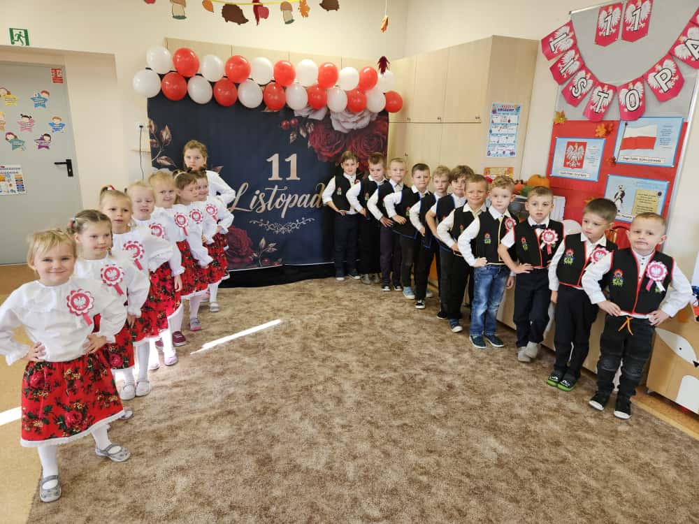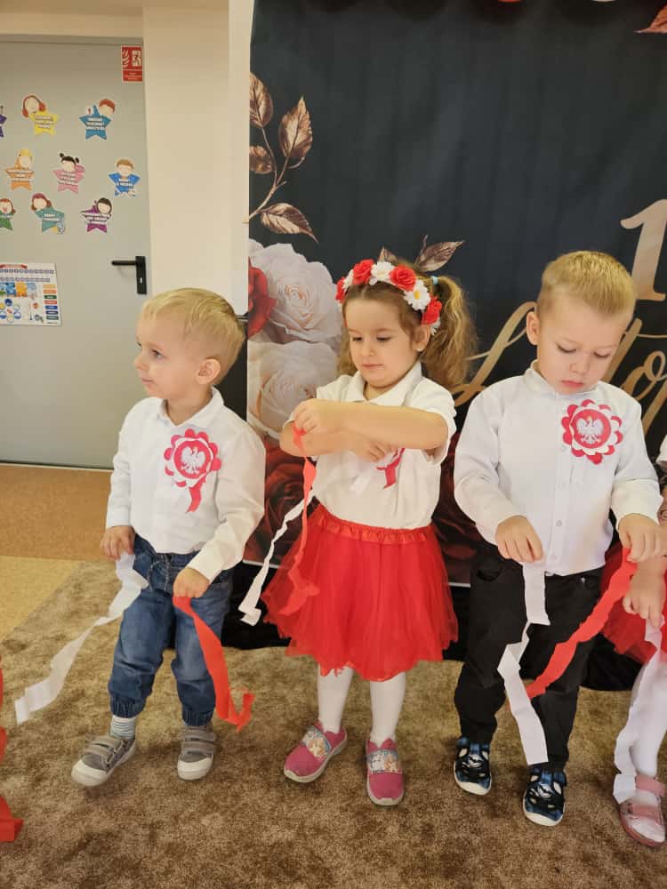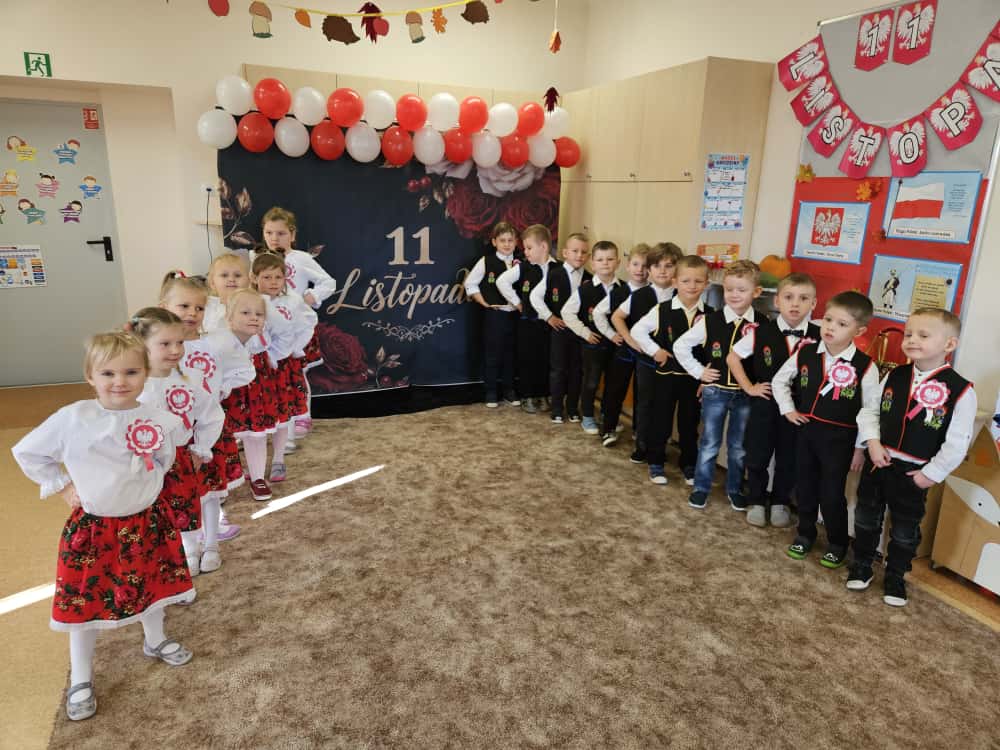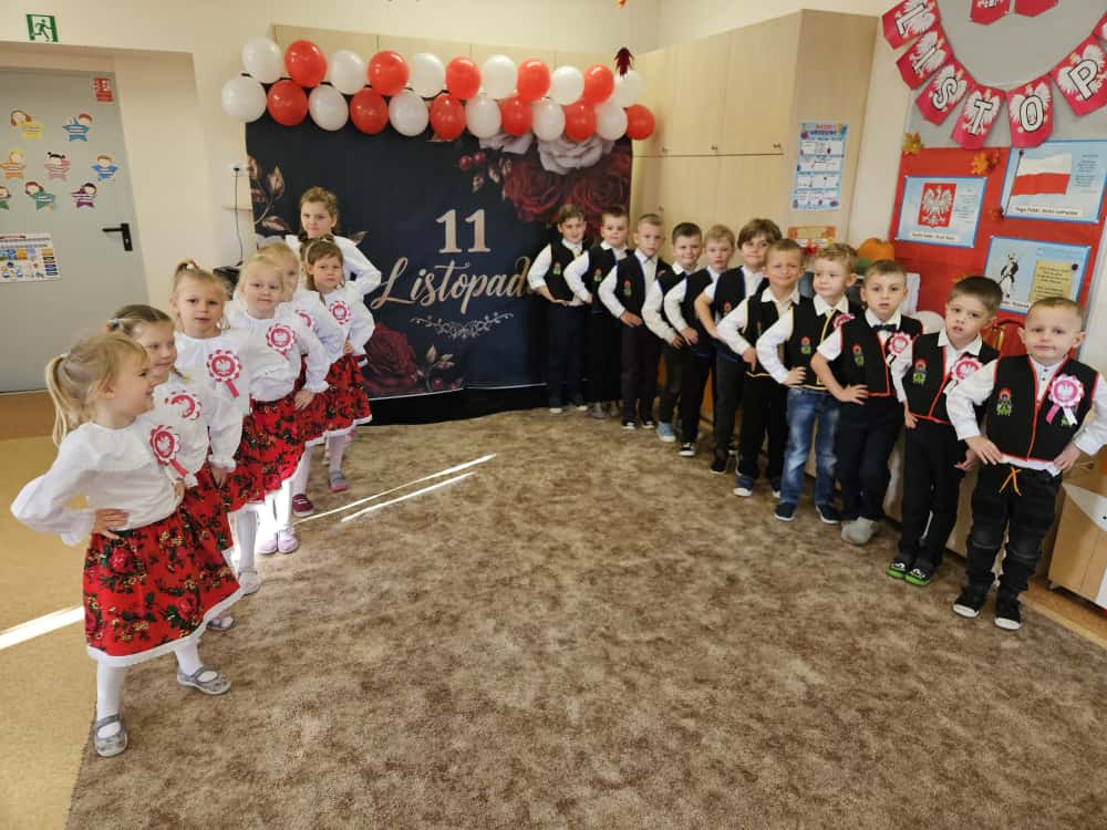 W piątek, 7 listopada, w naszym przedszkolu odbył się uroczysty apel z okazji Narodowego Święta Niepodległości. Dzieci z dumą i zaangażowaniem zaprezentowały program artystyczny upamiętniający to ważne wydarzenie w historii naszego kraju.
