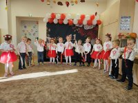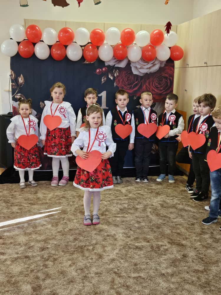 Podczas występu przedszkolaki recytowały wiersze, śpiewały patriotyczne piosenki oraz z dumą odśpiewały hymn narodowy – „Mazurka Dąbrowskiego”, włączając się tym samym w ogólnopolską akcję „Szkoła do hymnu”. Uroczystość była piękną lekcją patriotyzmu.