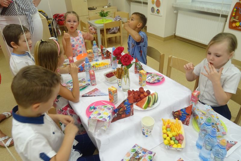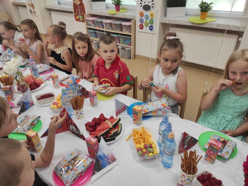 „Przedszkola czas już minął i jest tak jakoś smutno, a nasza pani w kącie łka, bo rozstać nam się trudno. ”Dzień 23.06. 2023r. dla jednych jest to zwykły dzień, ale dla nas był on wyjątkowy, uroczysty, radosny. W tym dniu odbyła się wyjątkowa uroczystość - „Pożegnanie starszaków w grupie KRASNOLUDKÓW ” . Dzieci kończące swoją edukację przedszkolną, przedstawiły wspaniały program artystyczny .Śpiewem, tańcem i wierszami żegnały się z przedszkolem, by od września rozpocząć naukę w klasie pierwszej. Przedszkolaki w odświętnych strojach wystąpiły przed rodzicami i personelem przedszkolnym. Dzień wcześniej pożegnali się z młodszymi kolegami i koleżankami. W wesołej, radosnej i podniosłej atmosferze prezentowały swoje umiejętności wokalne, taneczne i recytatorskie . Wiersze i piosenki opowiadały o pożegnaniu, tęsknocie i nowych zadaniach czekających przed przyszłymi uczniami. Nie zabrakło słów podziękowania dla wszystkich pracowników przedszkola oraz wspaniałych rodziców naszych przedszkolaków. Następnie zostały wręczone dzieciom dyplomy i upominki. Był to czas niezwykły i niezapomniany, zarówno dla dzieci, rodziców, jak i dla mnie. Skończył się bowiem 4 – letni okres przyjaźni, wspólnych zabaw i spotkań, wspólnej pracy. Dziękuje rodzicom za wspólnie spędzony czas, pomoc i wsparcie, dzieciom natomiast życzę udanych wakacji, samych sukcesów w szkole, uśmiechu na co dzień oraz nowych przyjaźni.