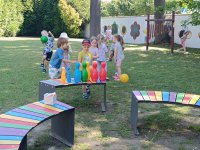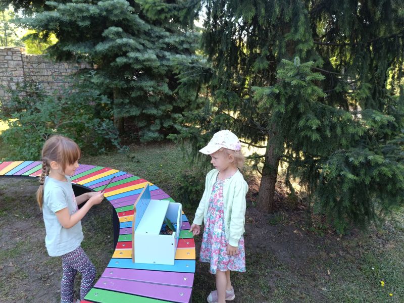 Nasza polana została wzbogacona o nowe, kolorowe ławeczki. Służą one wszystkim przedszkolakom do relaksacji, słuchania bajek, różnych zabaw itp.