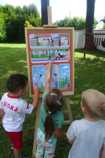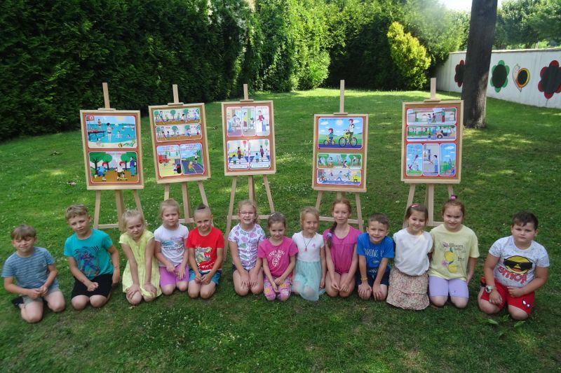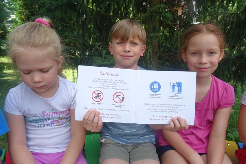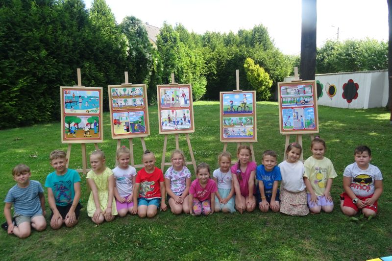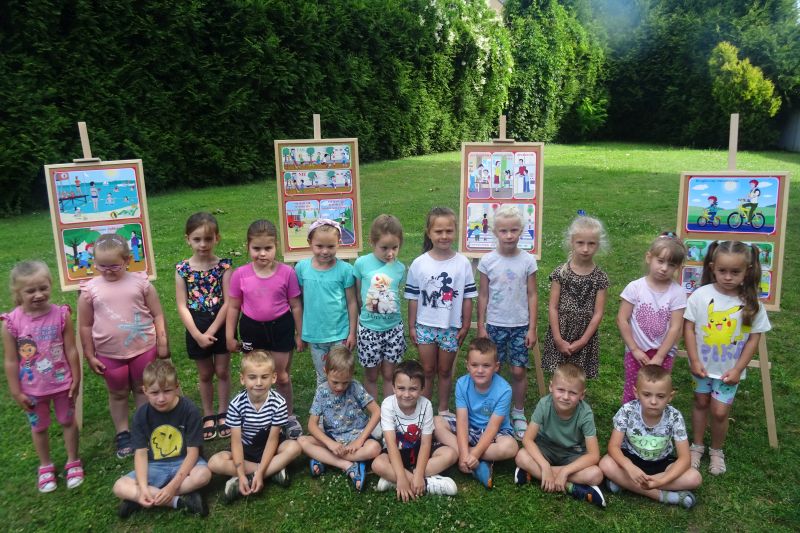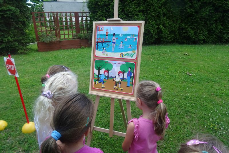 Wakacje to czas długo wyczekiwany, trzeba jednak pamiętać, aby spędzić go bezpiecznie. Dlatego też w każdej grupie przeprowadzono zajęcia dotyczące zasad bezpieczeństwa w podróży, podczas pobytu nad morzem czy też w górach. Zasady bezpiecznych zachowań przybliżono dzieciom na podstawie książeczek „Karolinka i Karlik mądre głowy mają – jak zachować się nad wodą dobre rady dają” oraz „Karolinka i Karlik mądre głowy mają – jak zachować się na ulicy dobre rady dają”. Podczas zajęć uczulono dzieci na groźne sytuacje i miejsca z którymi mogą się zetknąć oraz pokazano jak ich uniknąć.