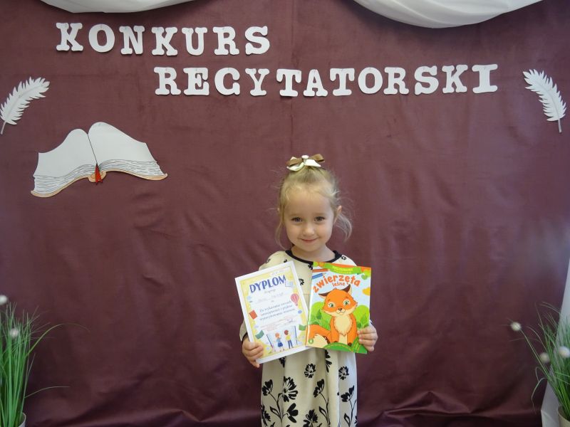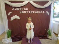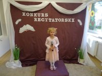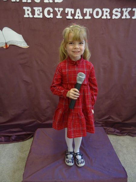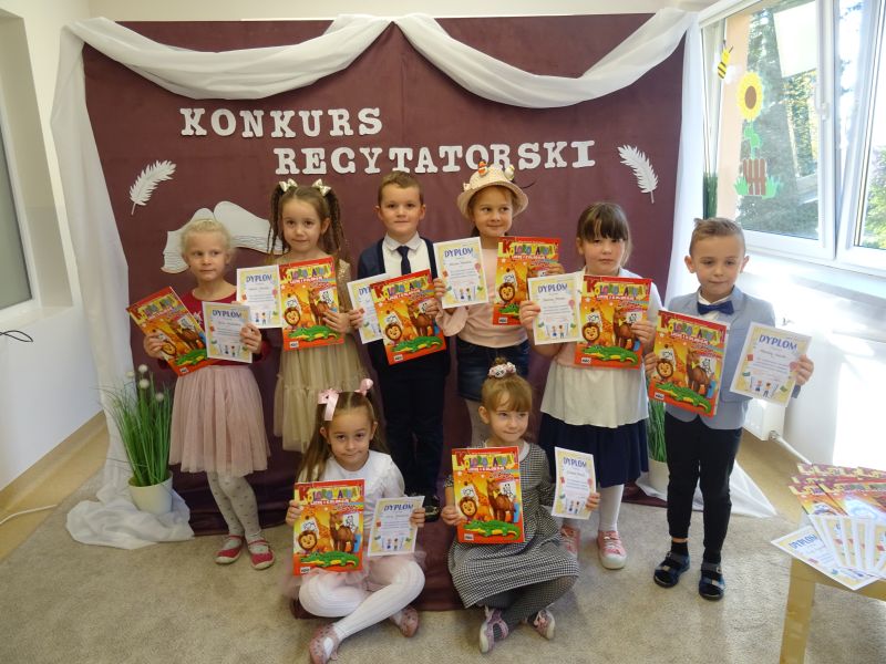 Celem konkursu było rowijanie zdolności recytatorskich przedszkolaków, zachęcanie dzieci do występów z udziałem publiczności oraz prezentacja umiejętności recytatorskich dzieci. Nasze przedszkolaki dzielnie pokonały tremę i pięknie recytowały wierszyki. Wszyscy uczestnicy naszego konkursu otrzymali pamiątkowe dyplomy oraz kolorowanki.