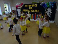 Dzień pasowania na przedszkolaka to wyjątkowa uroczystość, która 14.11.2024 r. w poczet dumnych przedszkolaków Jedyneczki wprowadziła naszą najmłodszą grupę "Pszczółki" . Mali artyści pięknie zaprezentowali przygotowany program artystyczny: piosenki, tańce i wierszyki. Dla większości z dzieci był to pierwszy bardzo ważny występ. Po występie nastąpił akt pasowania, czyli dotknięcie ramienia " zaczarowaną" wielką kredką przez panią Dyrektor Ilonę Reinert.