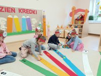 21.11.2024 obchodziliśmy Dzień Kredki. Te kolorowe ,,narzędzia” towarzyszą nam każdego dnia, dlatego trzeba je szanować, temperować i pięknie nimi kolorować. Dzieci bardzo chętnie wzięły udział w zajęciach z kredką w roli głównej.Była to okazja nie tylko do utrwalania kolorów, przeliczania, segregowania, układania, ale również do rozwijania swojej wyobraźni. Dzieci doskonaliły umiejętność współpracy w grupie oraz pracy w miłej atmosferze. To był bardzo udany dzień.