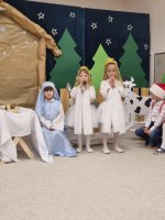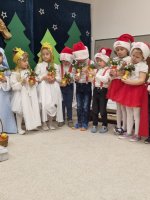 17 grudnia odbyło się świąteczne spotkanie z rodzicami grupy „Motylki”. Dzieci przedstawiły historię narodzin Pana Jezusa w Betlejem, wprowadzając rodziców w magiczny, świąteczny nastrój.