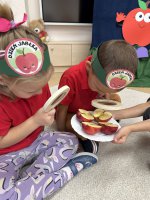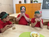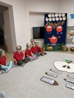 Celem zajęć było zachęcenie dzieci do spożywania owoców- w tym dniu w szczególności jabłek i to pod różnymi postaciami z powodu walorów zdrowotnych i odżywczych.