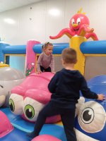 Dzieci z grupy "Pszczółki" wraz z rodzicami i opiekunami wybrały się 03.10.25 na wycieczkę do sali zabaw Hoplandia w Opolu.