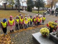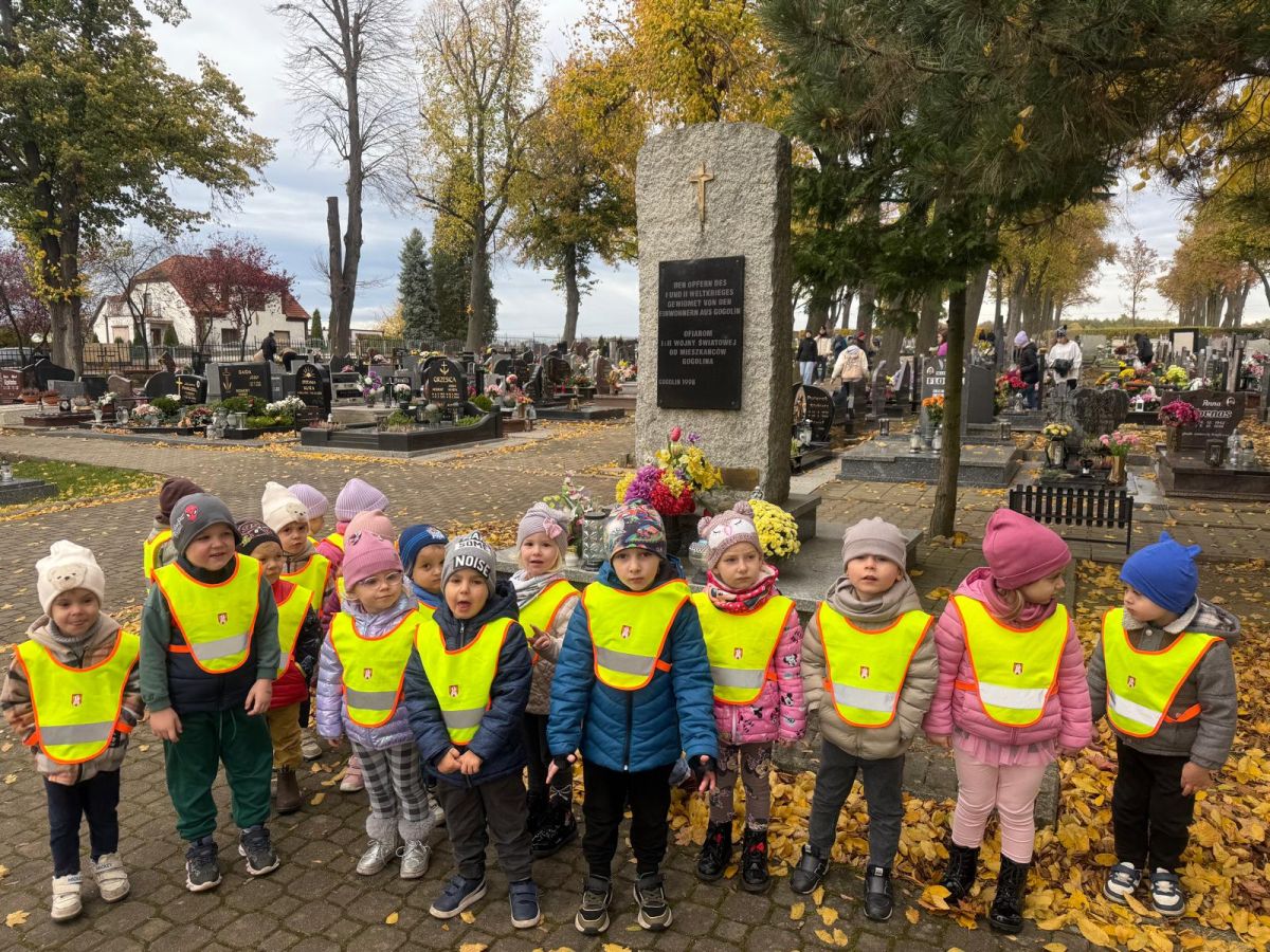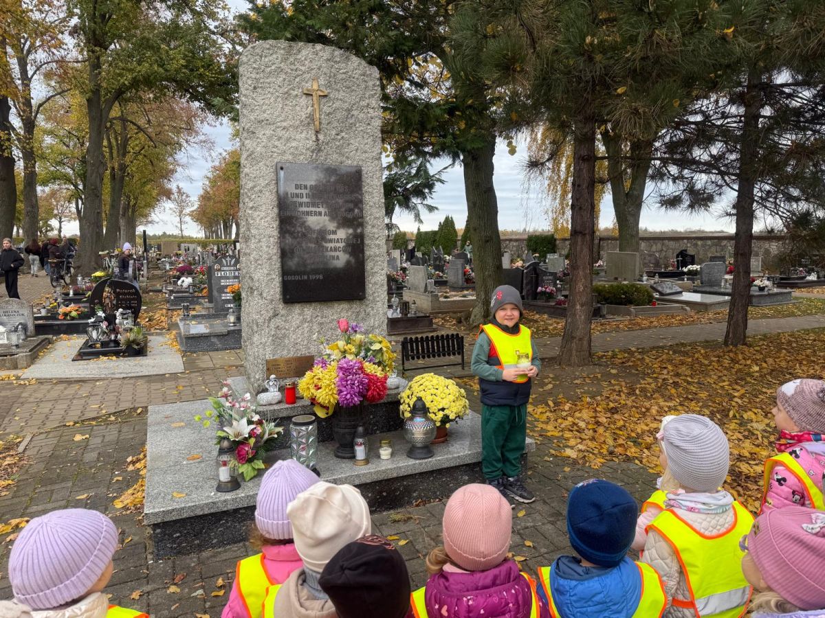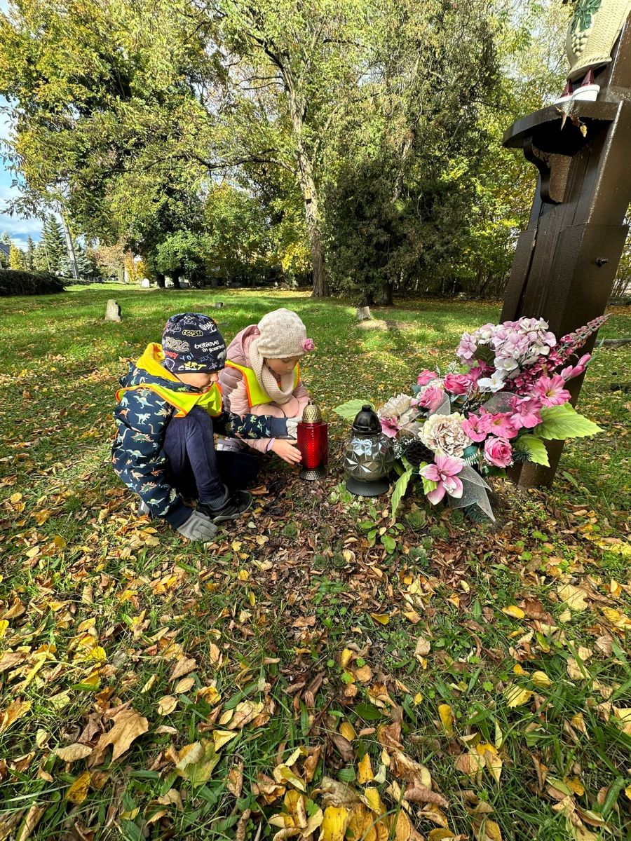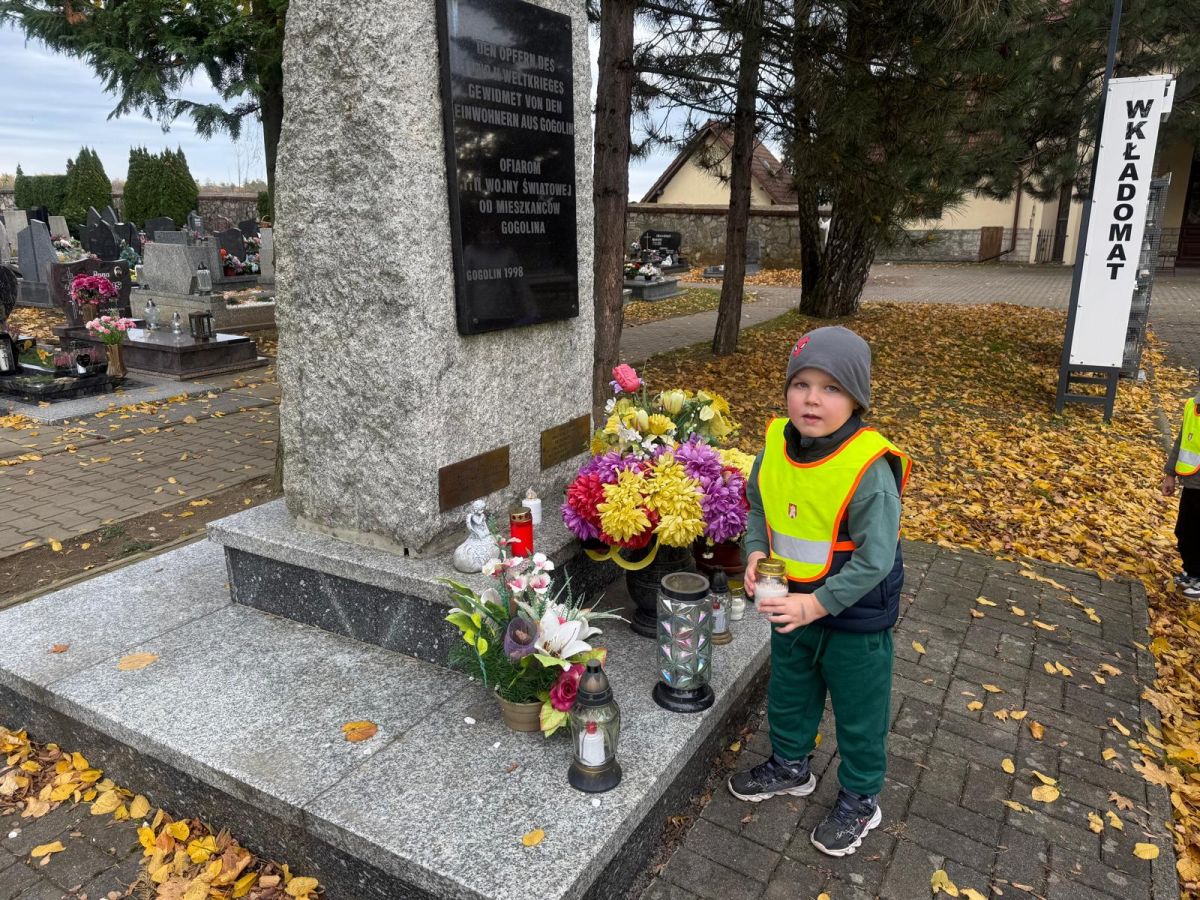 Okres przed Świętem Zmarłych, to odpowiedni moment na wspomnienie tych, którzy odeszli od nas, czas na rozmowę dotycząca szacunku dla zmarłych. Wzorem wcześniejszych lat nasza placówka wzięła udział w organizowanej przez Ministerstwo Edukacji Narodowej akcji "Przedszkole pamięta". Celem akcji jest upamiętnienie ważnych rocznic oraz wydarzeń historycznych. My zwróciliśmy uwagę na historię naszej  małej Ojczyzny - Gogolina i  pamiętaliśmy o lokalnych bohaterach. Każda grupa odwiedziła jedno historyczne miejsce i zapaliła znicz.