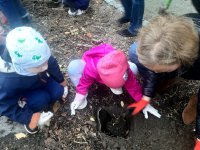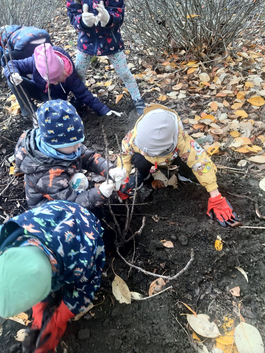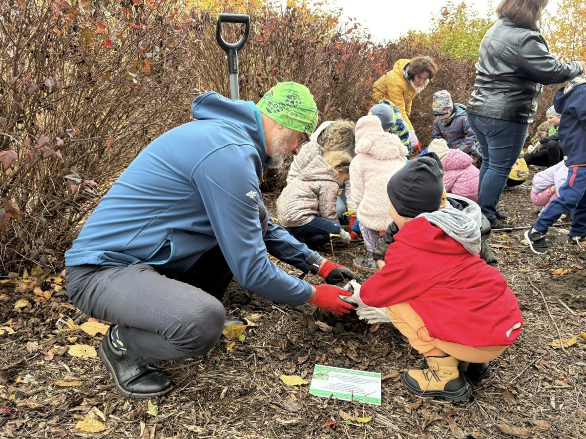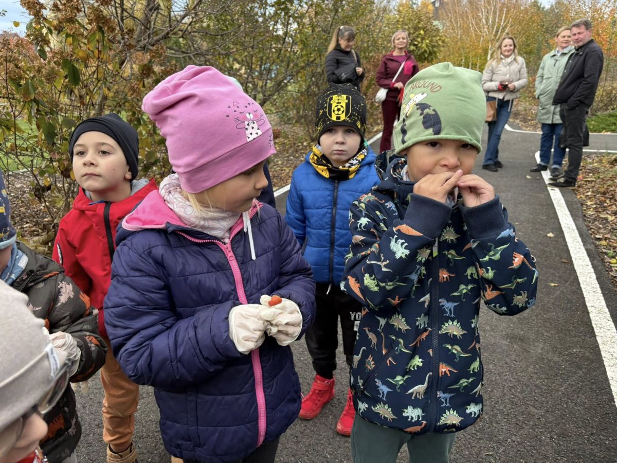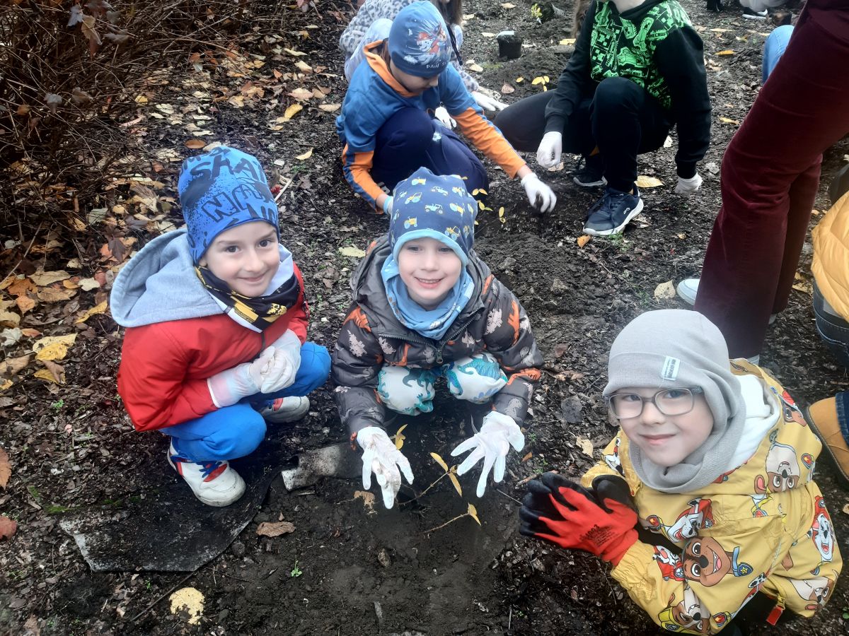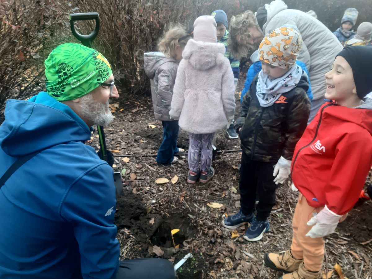 W czwartek 30.10.2025 dzieci z grupy "Motylki' uczestniczyły w zajęciach w "Owocowym Ogrodzie Miejskim" , gdzie wraz z zaproszonymi gośćmi oraz uczniami kl.4 sadziły krzewy owocowe. Podczas spotkania pod hasłem "Zostanie po nas bioróżnorodny ślad " przedszkolaki poznały również historię pierwszego sadu, który powstał w Gogolinie w dawnym wyrobisku kamienia wapiennego.