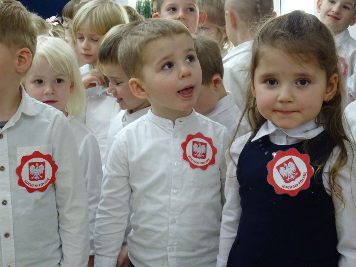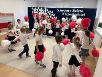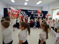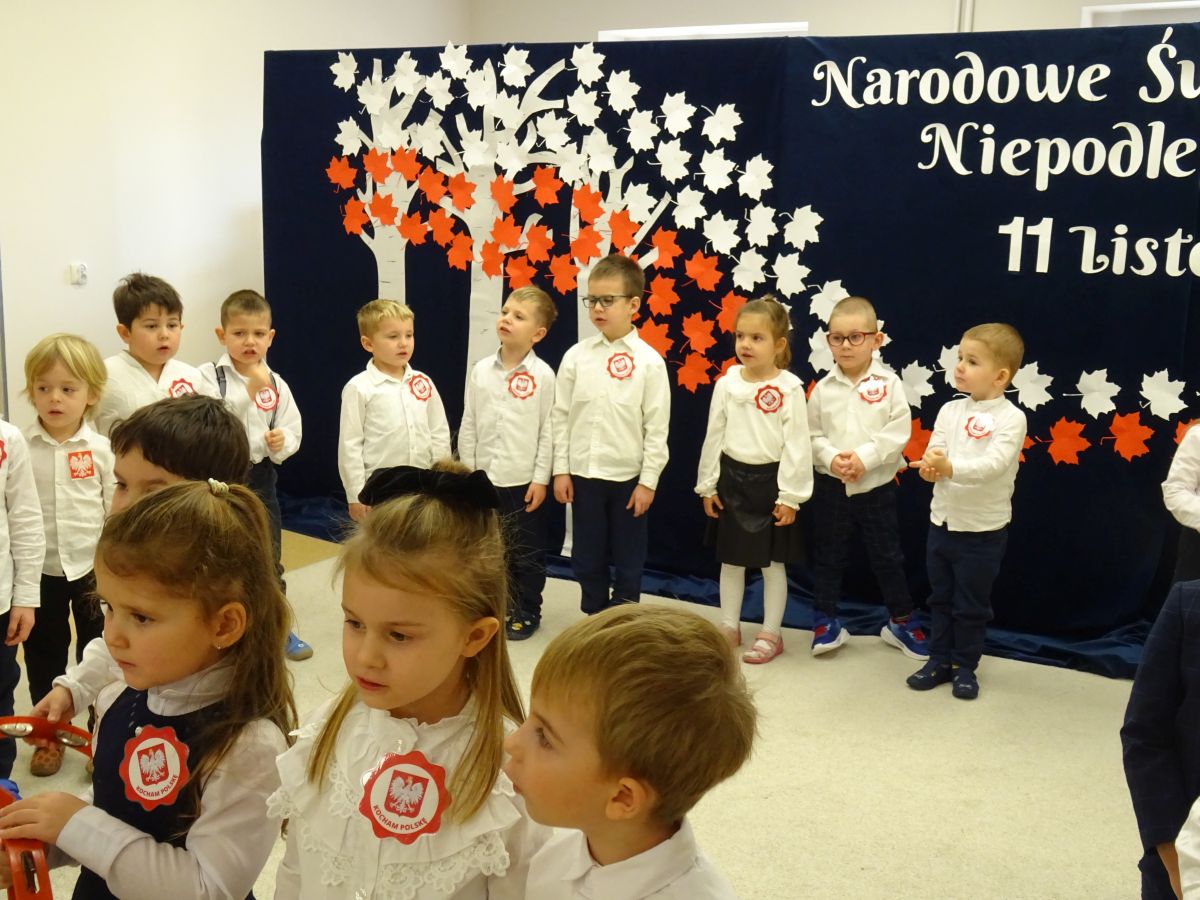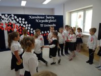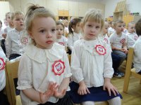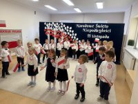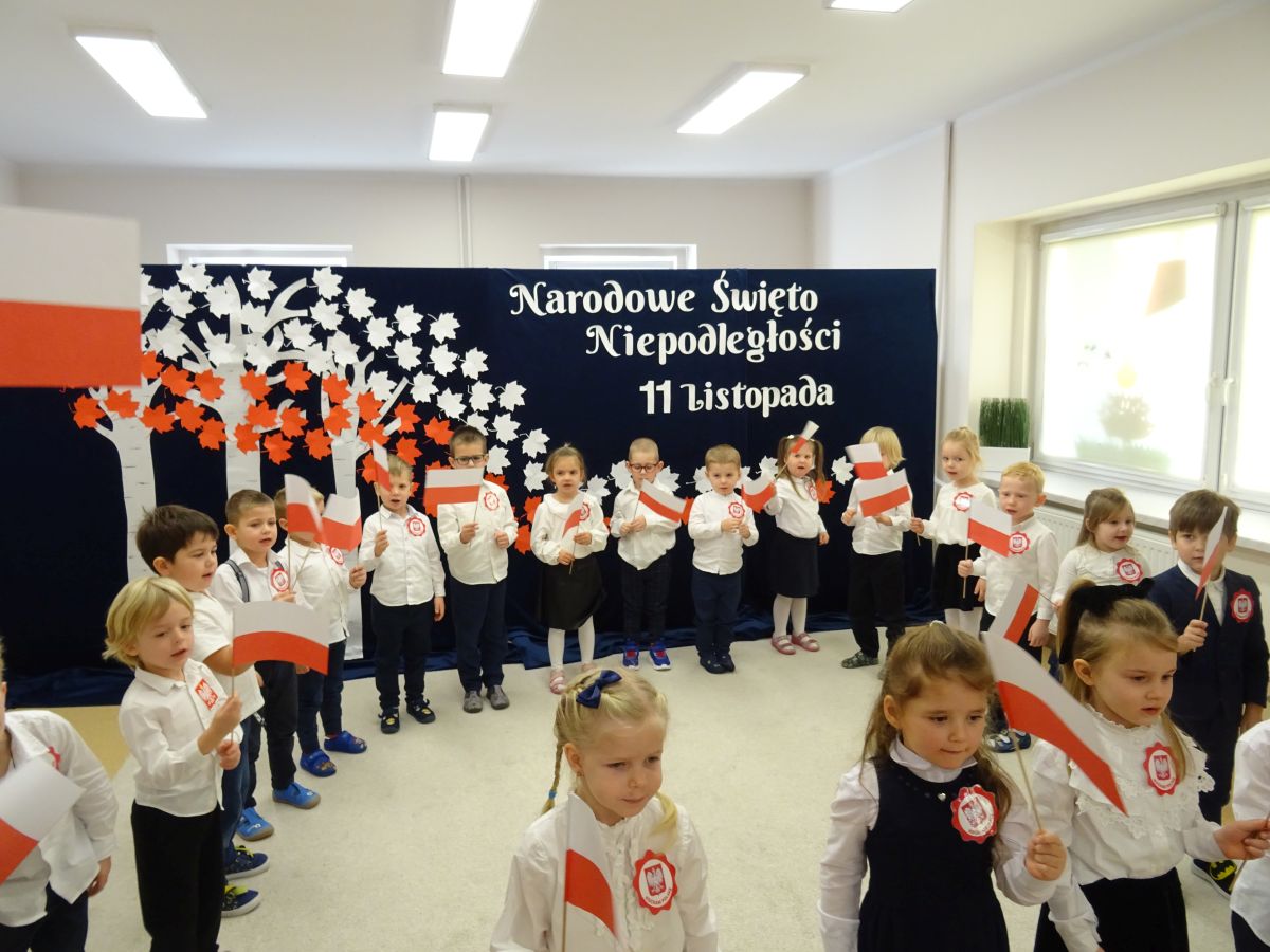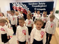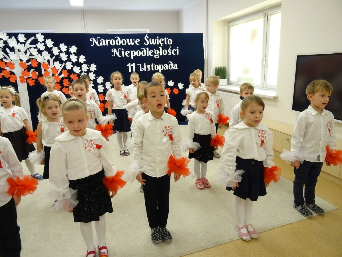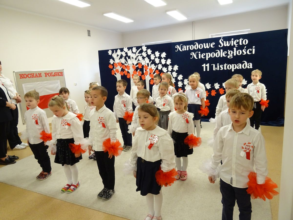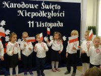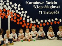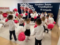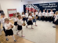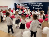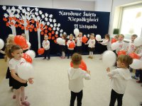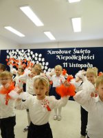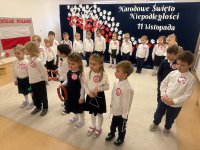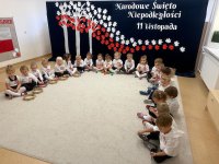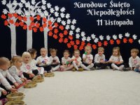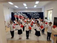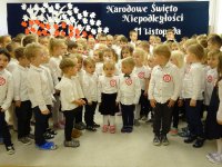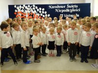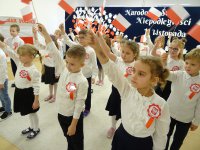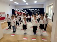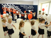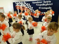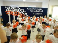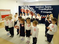 7 listopada w naszym przedszkolu odbyła się uroczysta akademia z okazji "Święta Odzyskania Niepodległości". Przedszkolacy w pełnej gali zaprezentowali piosenki, tańce oraz wiersze nawiązujące tematyką do naszej Ojczyzny - barw narodowych, godła, flagi oraz ważnych wydarzeń związanych z Polską. Na zakończenie wszyscy bardzo uroczyście odśpiewali "Mazurek Dąbrowskiego" - hymn Polski.. Cała uroczystość miała bardzo podniosły charakter. Na twarzach dzieci widać było skupienie i zrozumienie ważności tego święta.