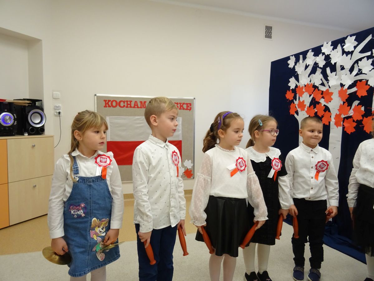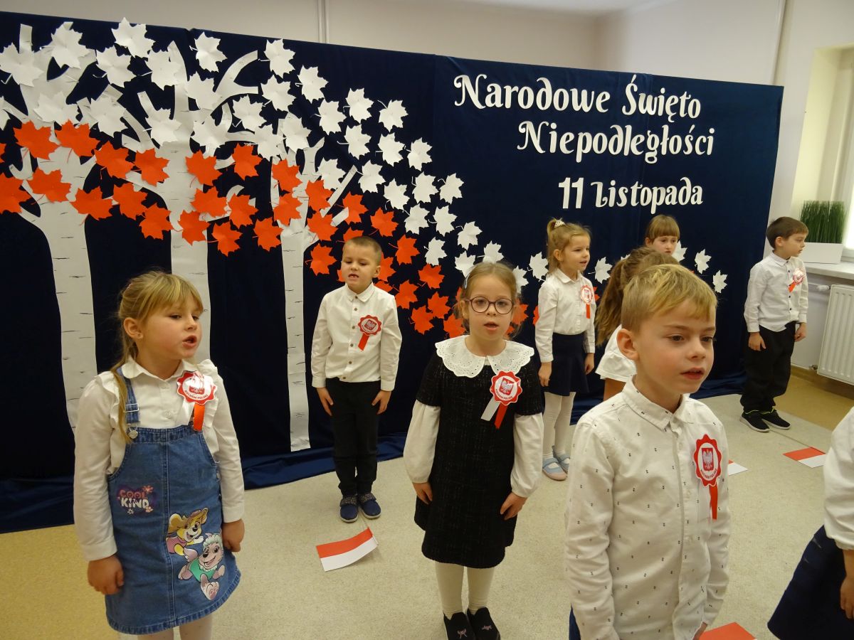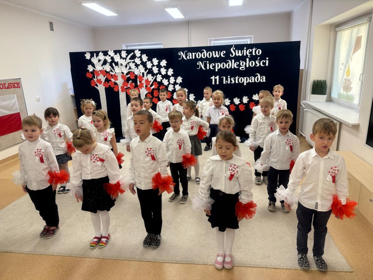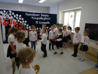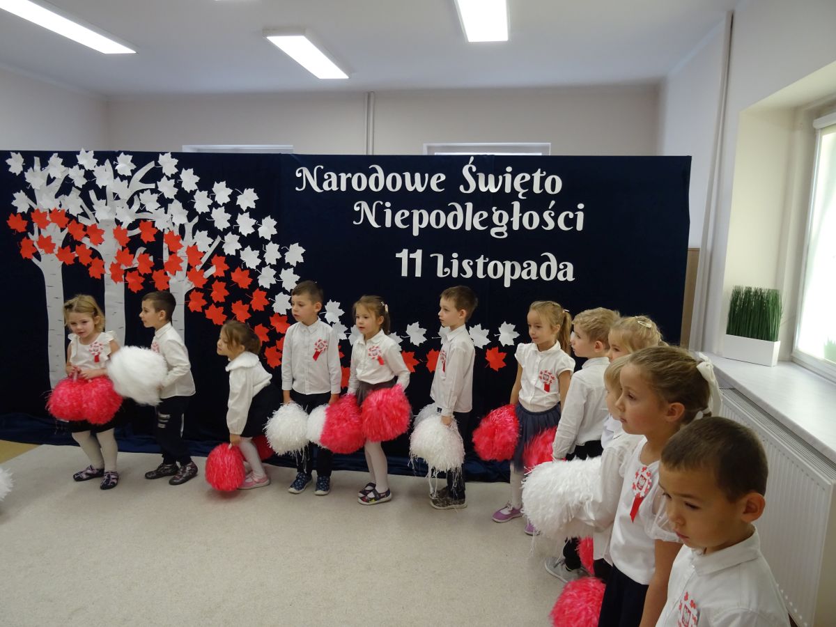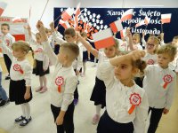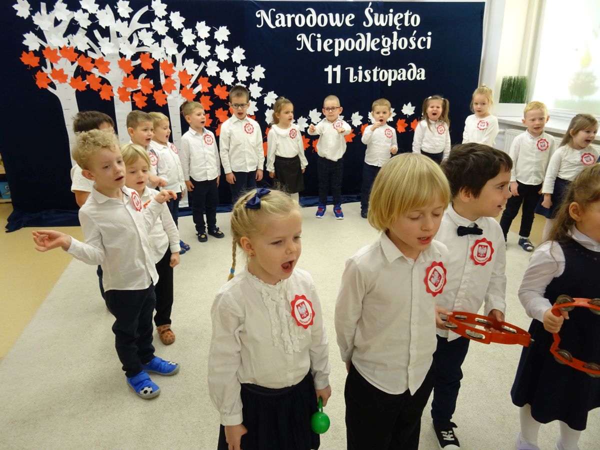 7 listopada w naszym przedszkolu odbyła się uroczysta akademia z okazji "Święta Odzyskania Niepodległości". Przedszkolacy w pełnej gali zaprezentowali piosenki, tańce oraz wiersze nawiązujące tematyką do naszej Ojczyzny - barw narodowych, godła, flagi oraz ważnych wydarzeń związanych z Polską. Na zakończenie wszyscy bardzo uroczyście odśpiewali "Mazurek Dąbrowskiego" - hymn Polski.. Cała uroczystość miała bardzo podniosły charakter. Na twarzach dzieci widać było skupienie i zrozumienie ważności tego święta.