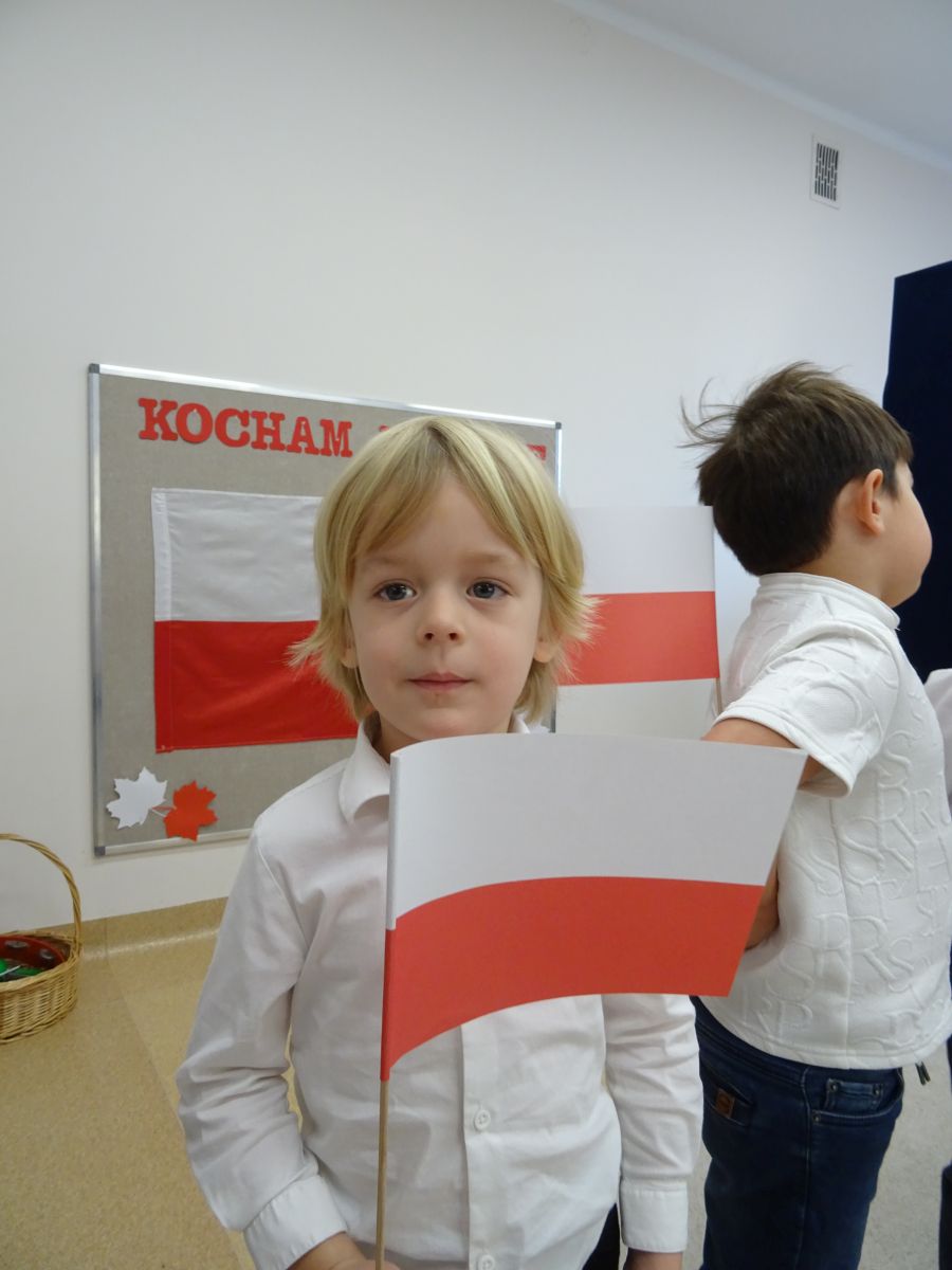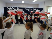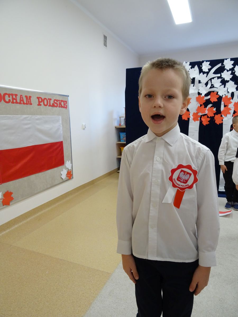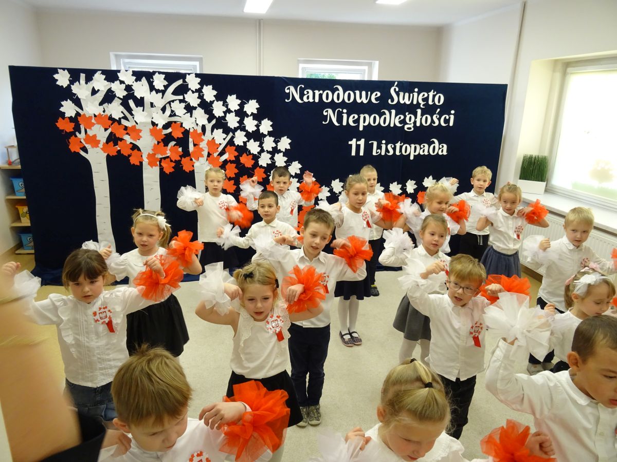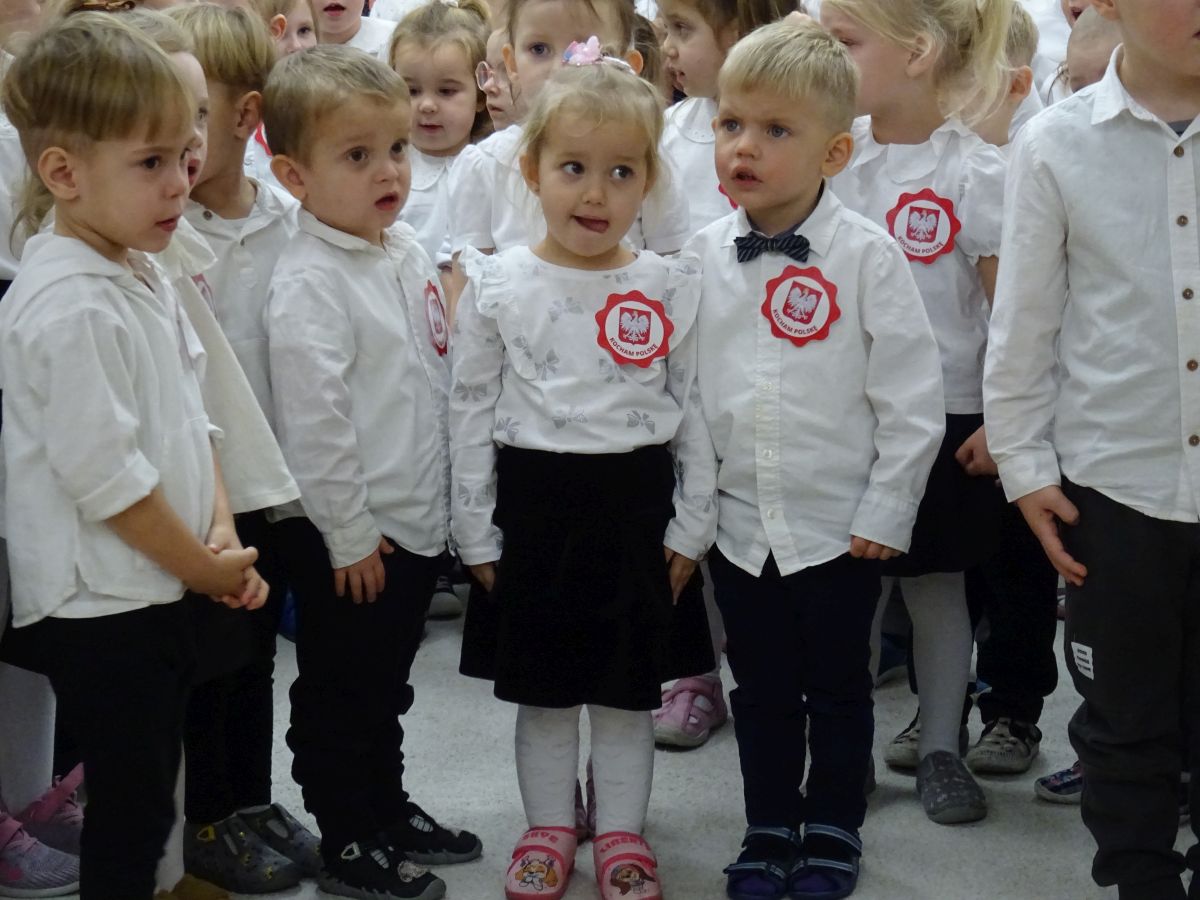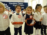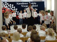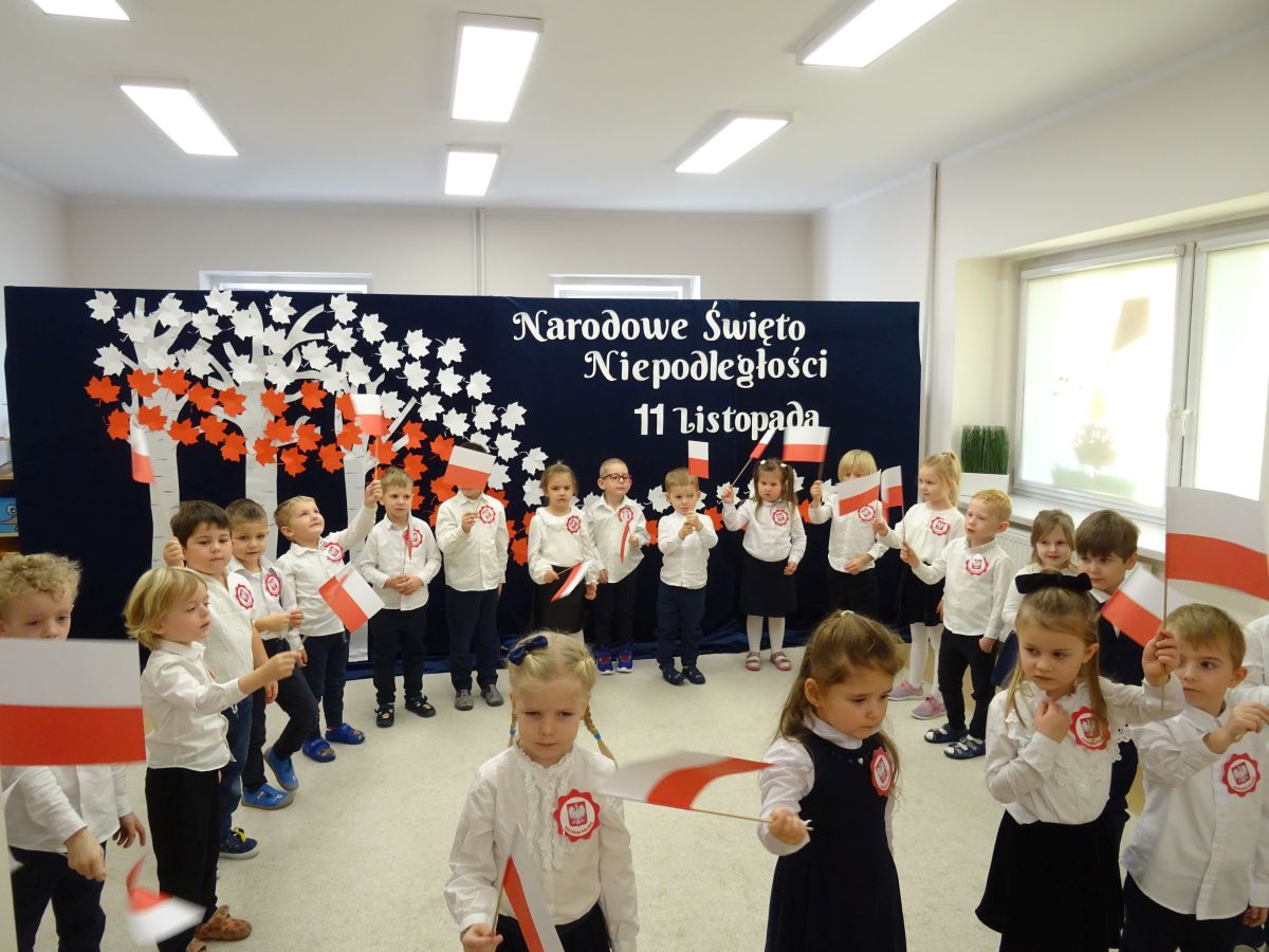 7 listopada w naszym przedszkolu odbyła się uroczysta akademia z okazji "Święta Odzyskania Niepodległości". Przedszkolacy w pełnej gali zaprezentowali piosenki, tańce oraz wiersze nawiązujące tematyką do naszej Ojczyzny - barw narodowych, godła, flagi oraz ważnych wydarzeń związanych z Polską. Na zakończenie wszyscy bardzo uroczyście odśpiewali "Mazurek Dąbrowskiego" - hymn Polski.. Cała uroczystość miała bardzo podniosły charakter. Na twarzach dzieci widać było skupienie i zrozumienie ważności tego święta.