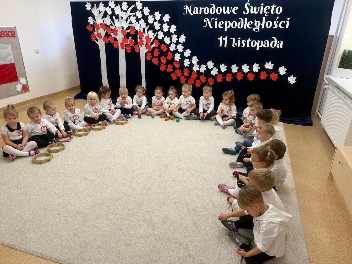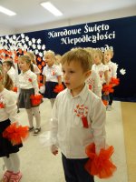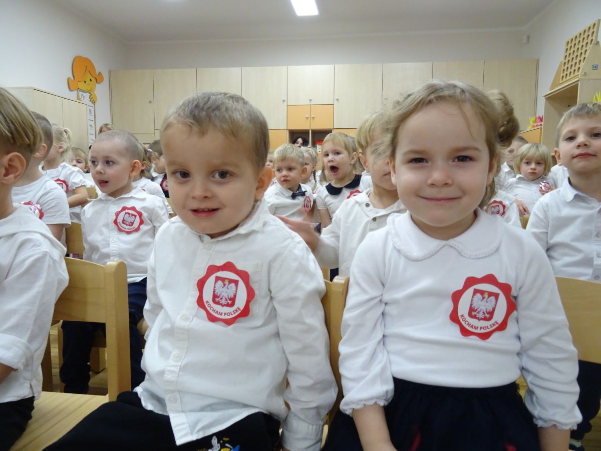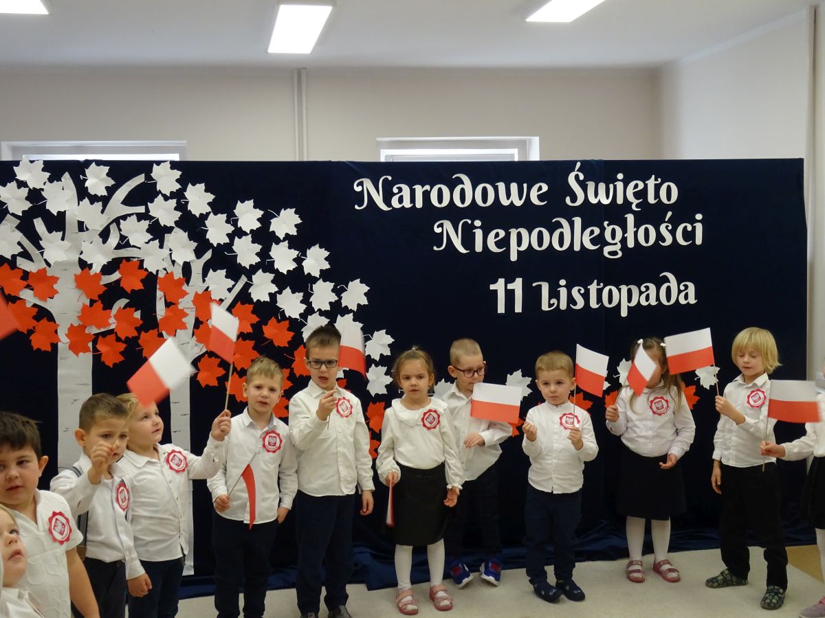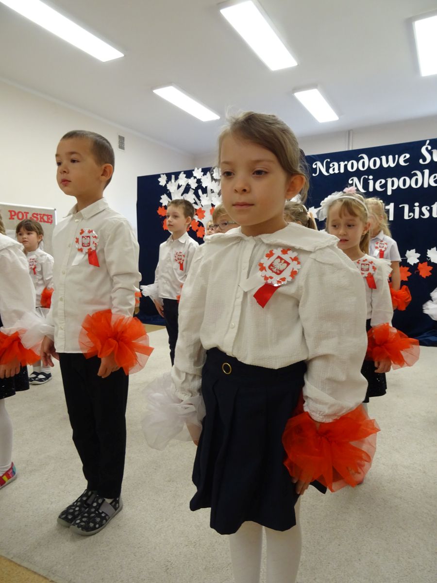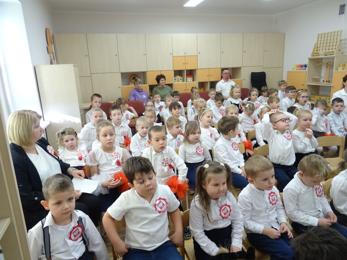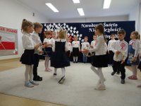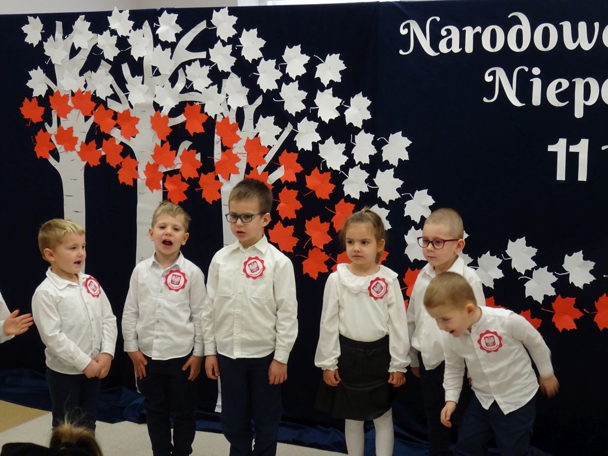 7 listopada w naszym przedszkolu odbyła się uroczysta akademia z okazji "Święta Odzyskania Niepodległości". Przedszkolacy w pełnej gali zaprezentowali piosenki, tańce oraz wiersze nawiązujące tematyką do naszej Ojczyzny - barw narodowych, godła, flagi oraz ważnych wydarzeń związanych z Polską. Na zakończenie wszyscy bardzo uroczyście odśpiewali "Mazurek Dąbrowskiego" - hymn Polski.. Cała uroczystość miała bardzo podniosły charakter. Na twarzach dzieci widać było skupienie i zrozumienie ważności tego święta.