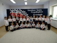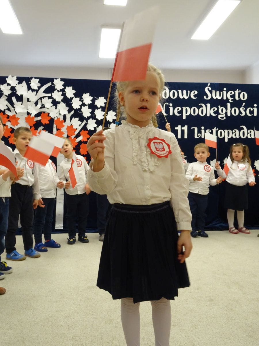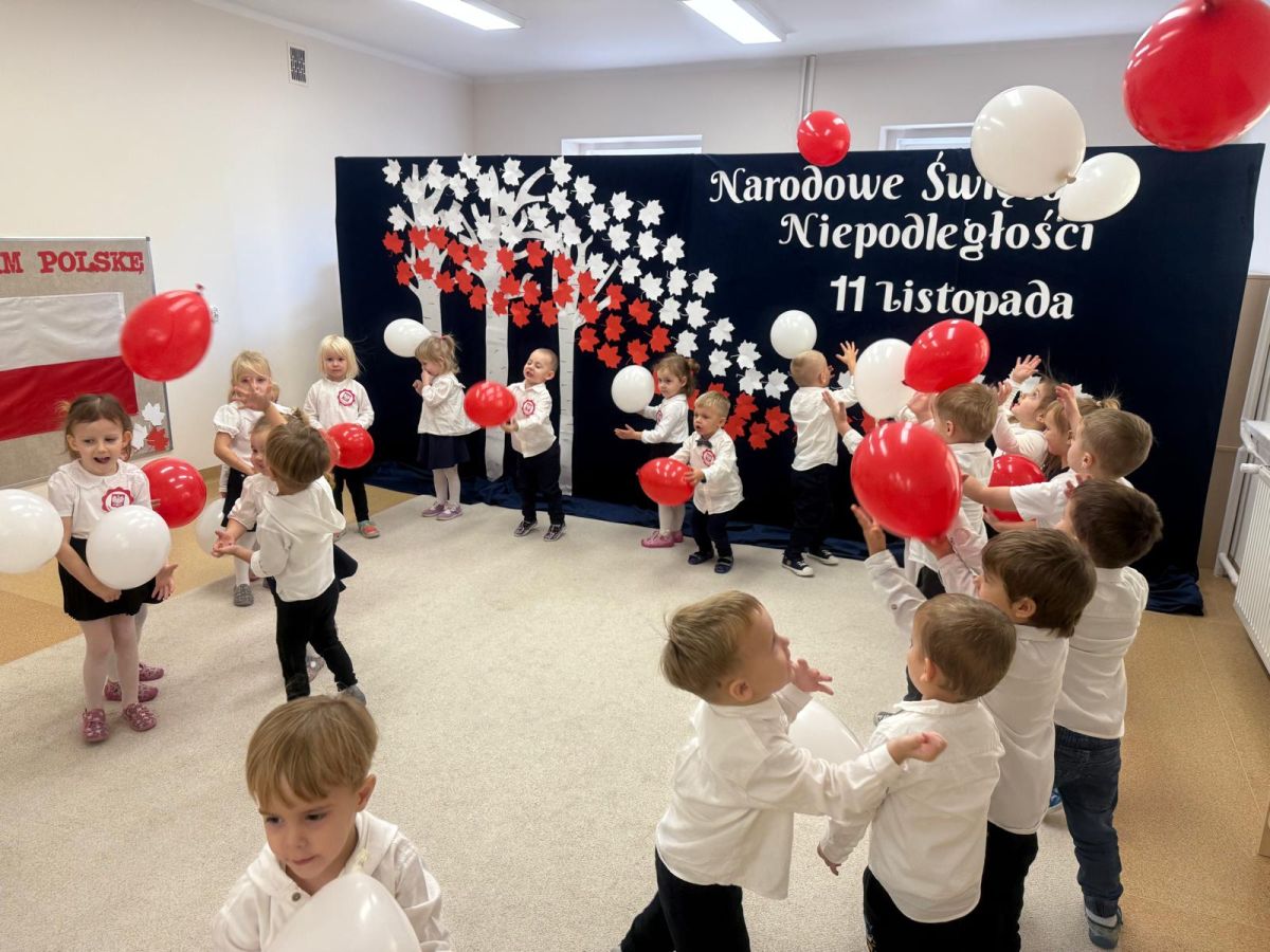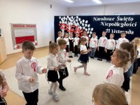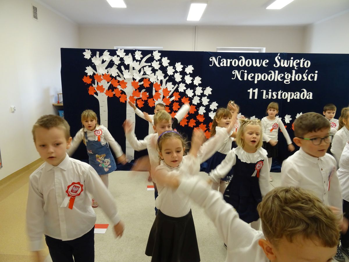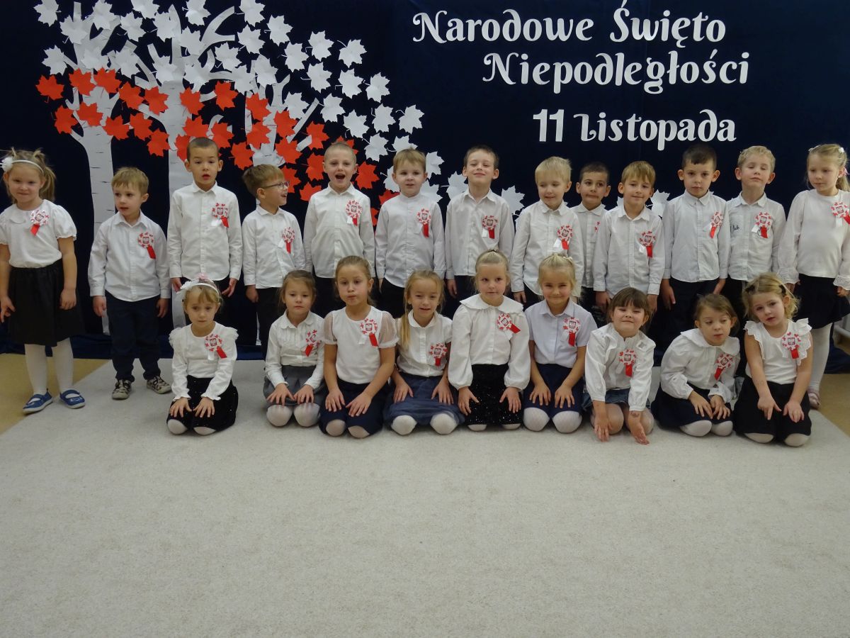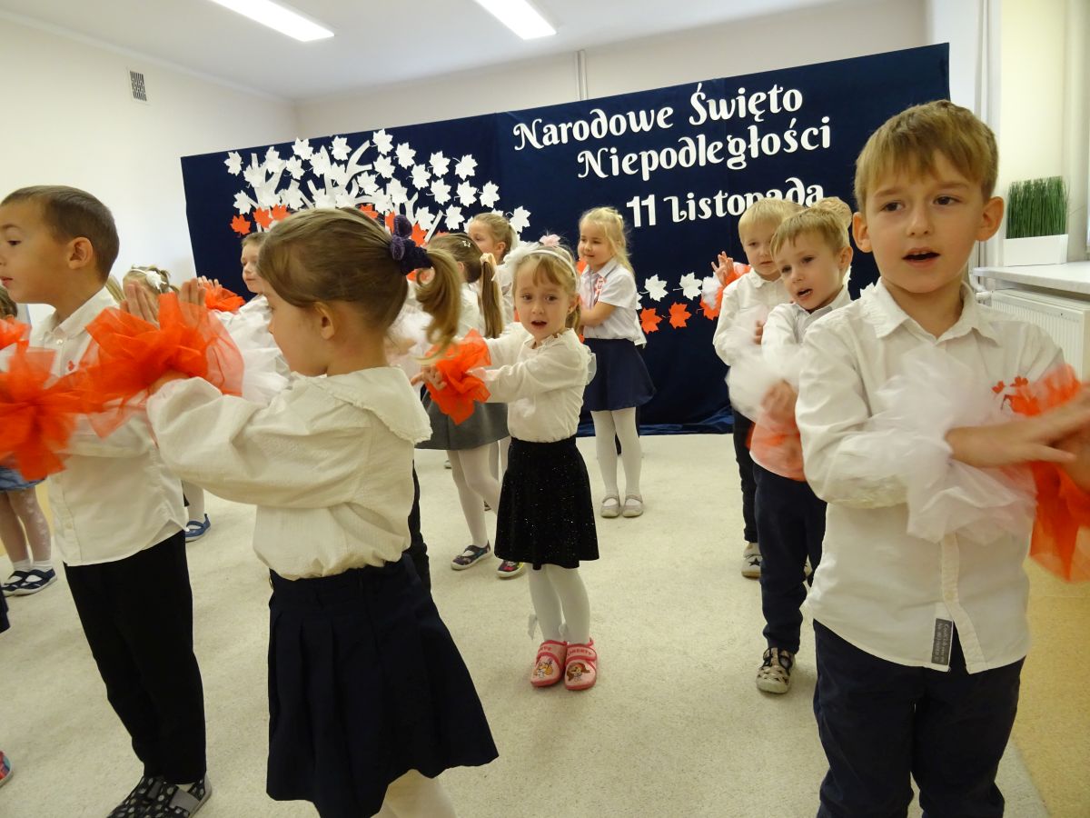 7 listopada w naszym przedszkolu odbyła się uroczysta akademia z okazji "Święta Odzyskania Niepodległości". Przedszkolacy w pełnej gali zaprezentowali piosenki, tańce oraz wiersze nawiązujące tematyką do naszej Ojczyzny - barw narodowych, godła, flagi oraz ważnych wydarzeń związanych z Polską. Na zakończenie wszyscy bardzo uroczyście odśpiewali "Mazurek Dąbrowskiego" - hymn Polski.. Cała uroczystość miała bardzo podniosły charakter. Na twarzach dzieci widać było skupienie i zrozumienie ważności tego święta.
