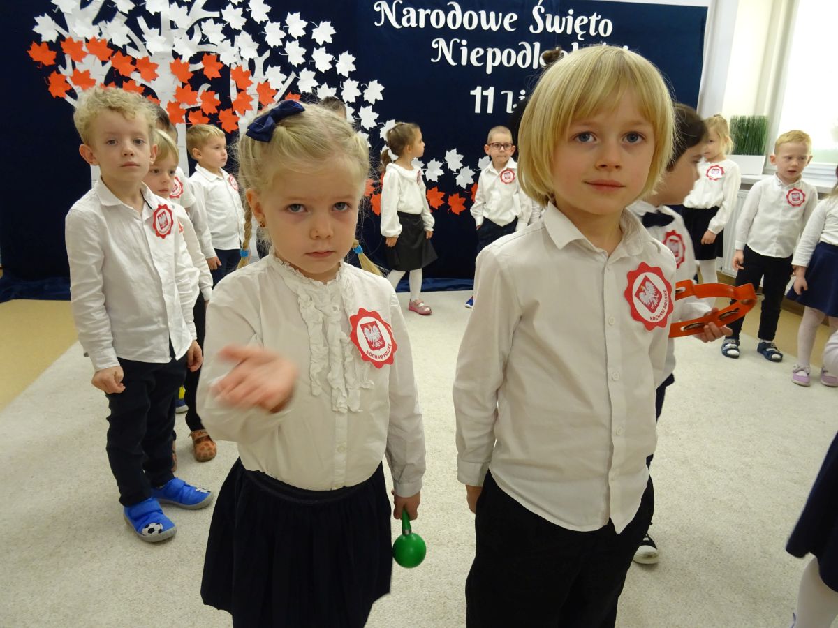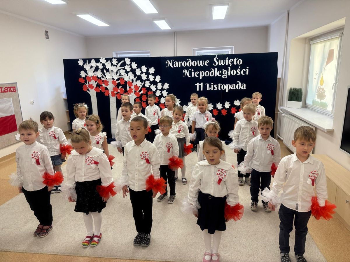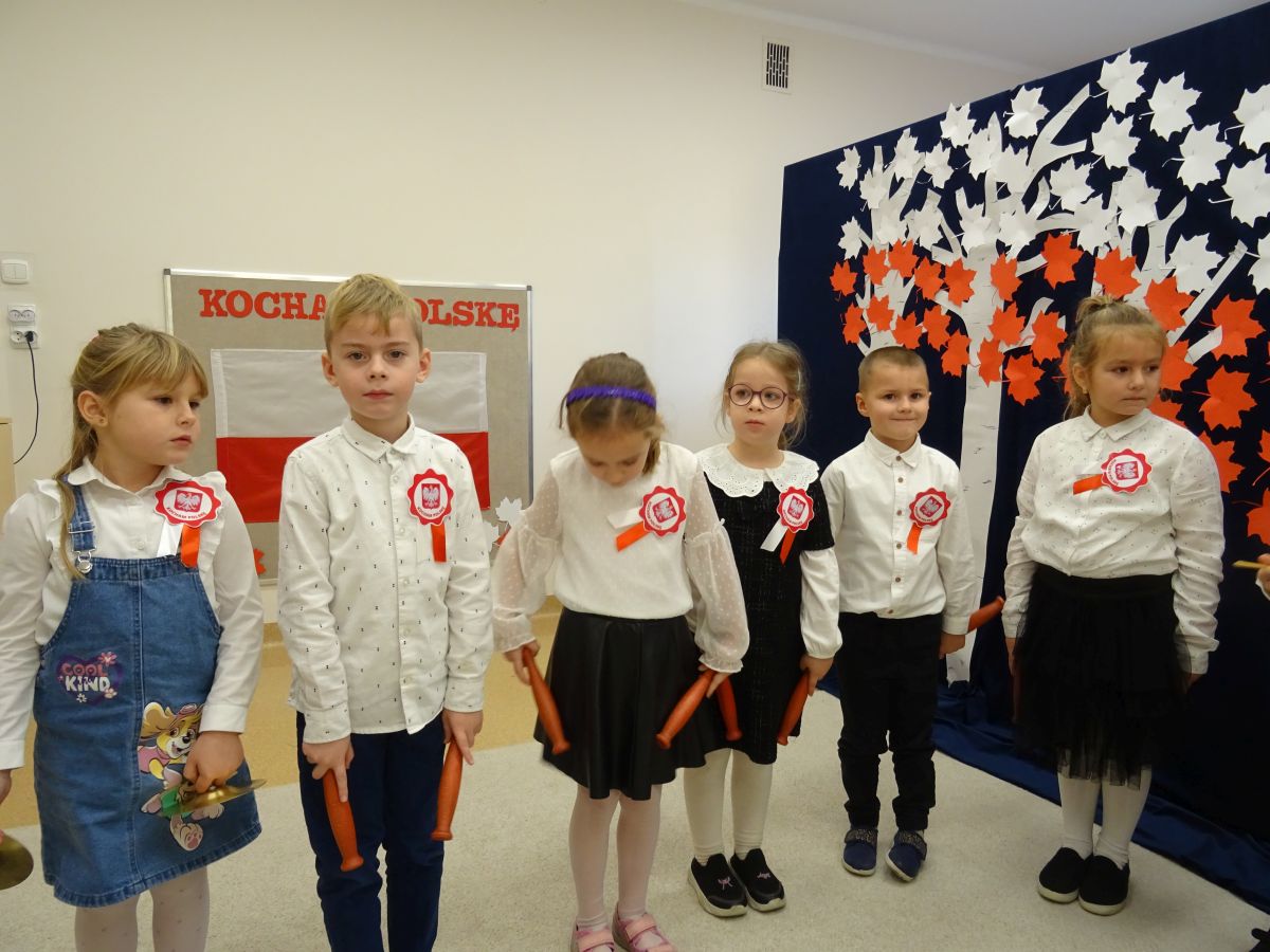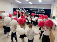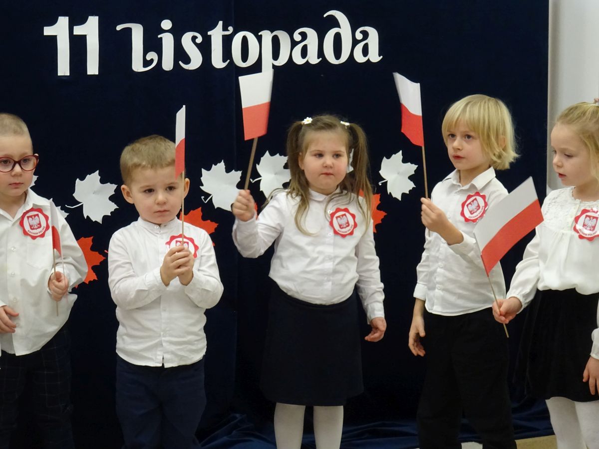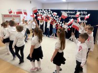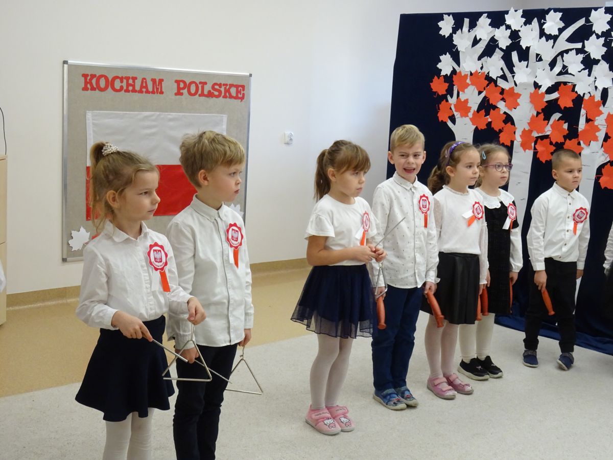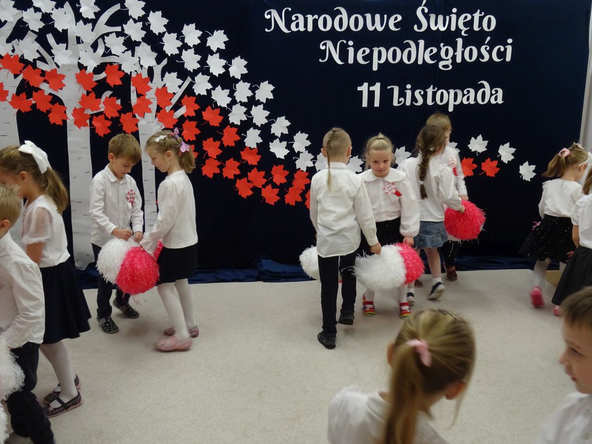 7 listopada w naszym przedszkolu odbyła się uroczysta akademia z okazji "Święta Odzyskania Niepodległości". Przedszkolacy w pełnej gali zaprezentowali piosenki, tańce oraz wiersze nawiązujące tematyką do naszej Ojczyzny - barw narodowych, godła, flagi oraz ważnych wydarzeń związanych z Polską. Na zakończenie wszyscy bardzo uroczyście odśpiewali "Mazurek Dąbrowskiego" - hymn Polski.. Cała uroczystość miała bardzo podniosły charakter. Na twarzach dzieci widać było skupienie i zrozumienie ważności tego święta.