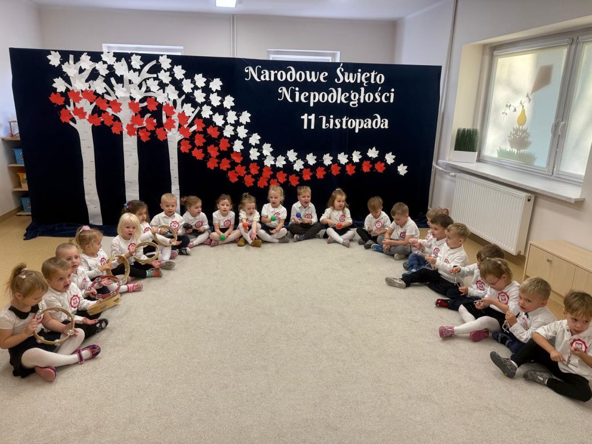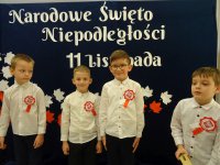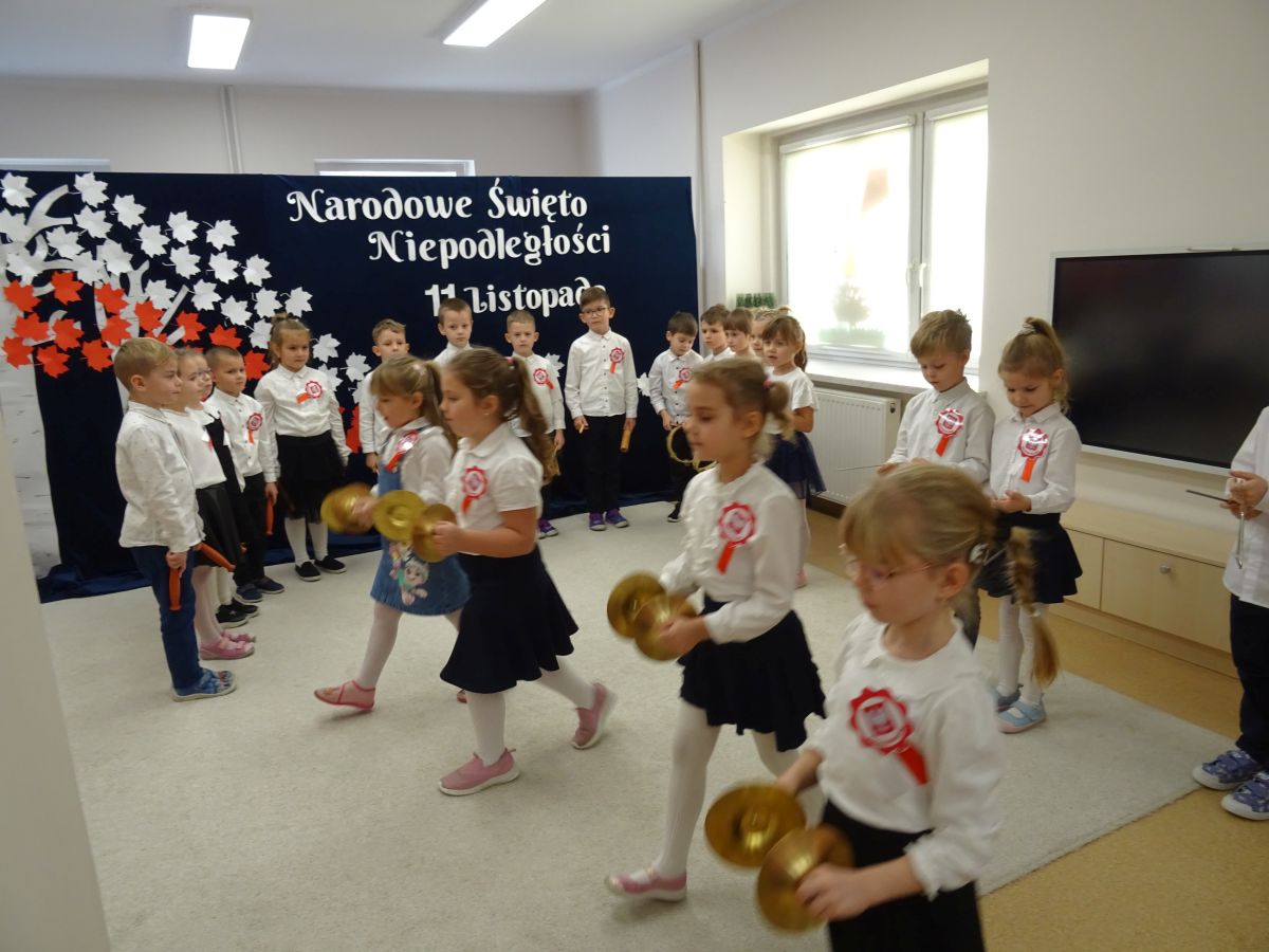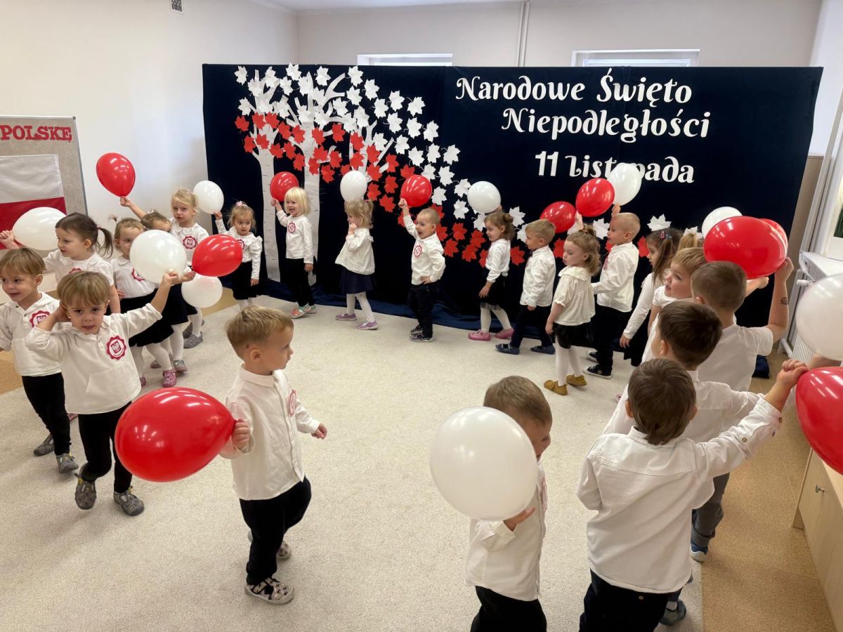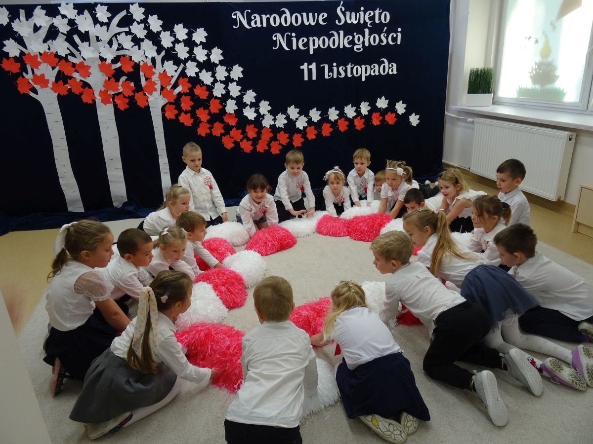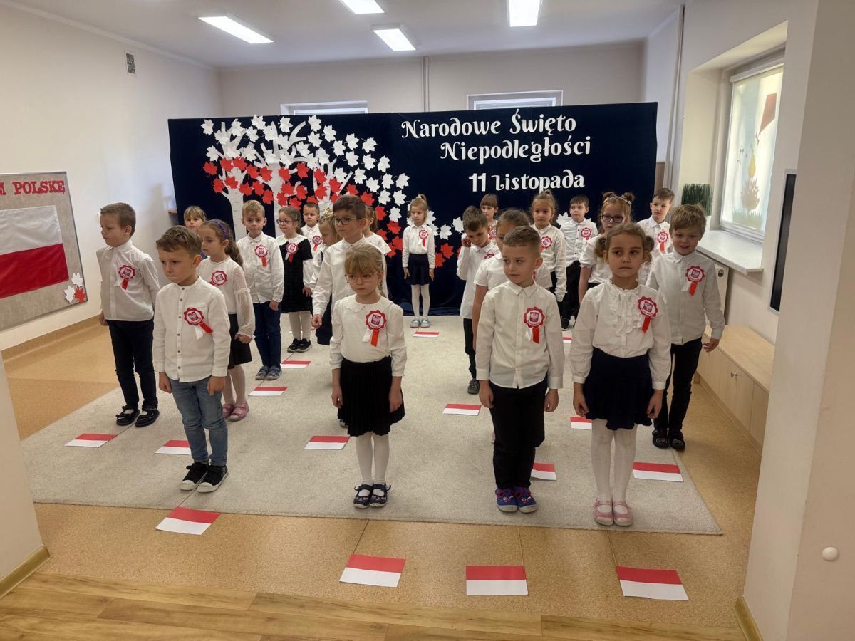 7 listopada w naszym przedszkolu odbyła się uroczysta akademia z okazji "Święta Odzyskania Niepodległości". Przedszkolacy w pełnej gali zaprezentowali piosenki, tańce oraz wiersze nawiązujące tematyką do naszej Ojczyzny - barw narodowych, godła, flagi oraz ważnych wydarzeń związanych z Polską. Na zakończenie wszyscy bardzo uroczyście odśpiewali "Mazurek Dąbrowskiego" - hymn Polski.. Cała uroczystość miała bardzo podniosły charakter. Na twarzach dzieci widać było skupienie i zrozumienie ważności tego święta.