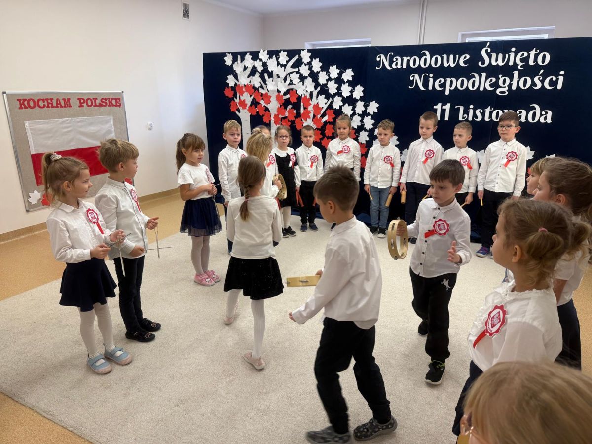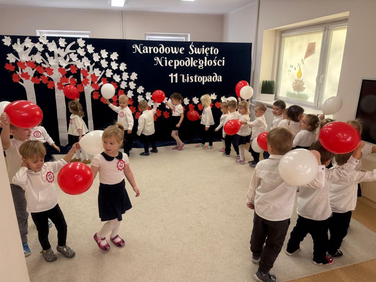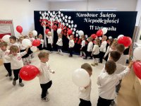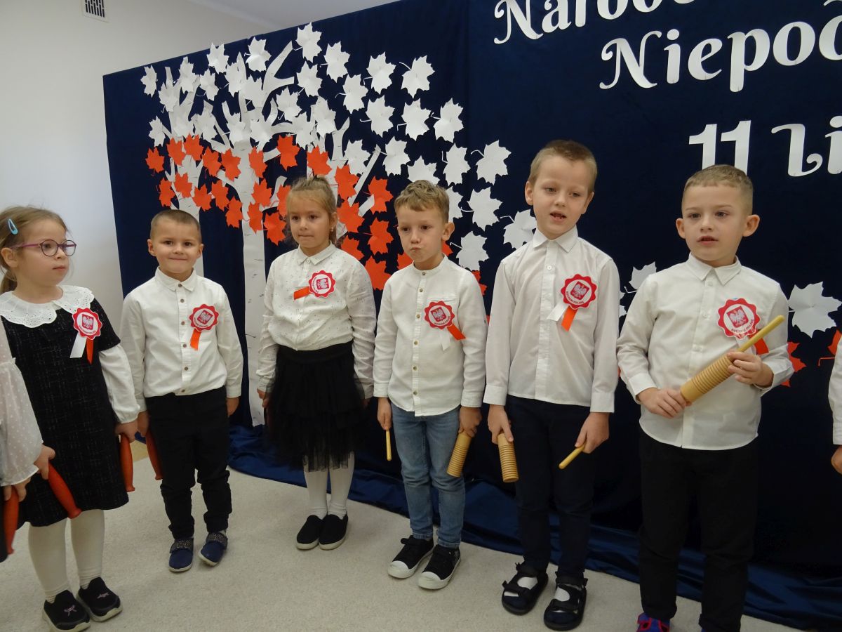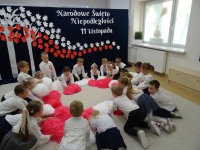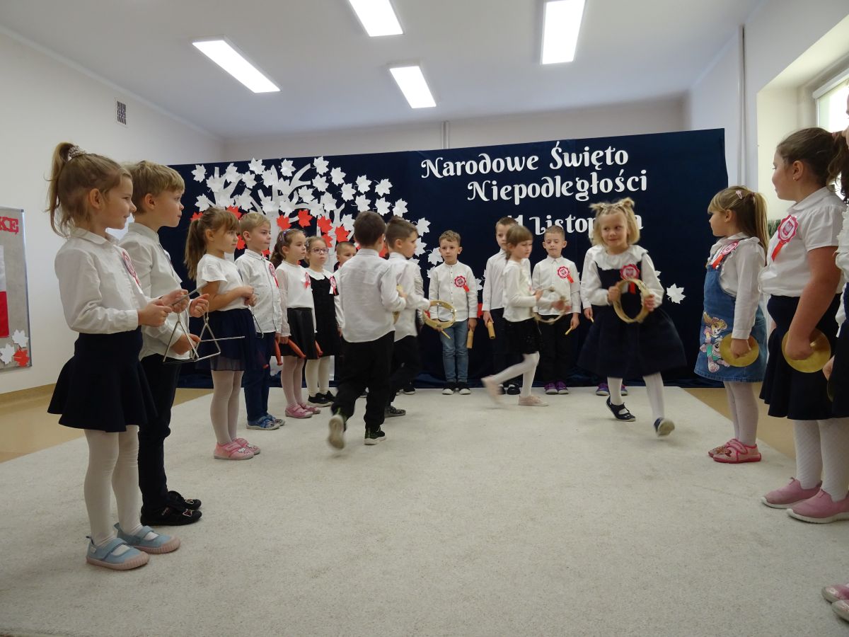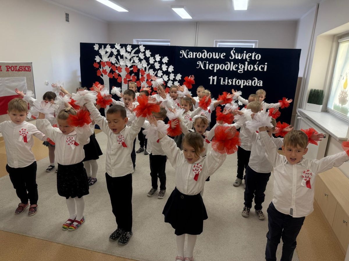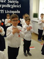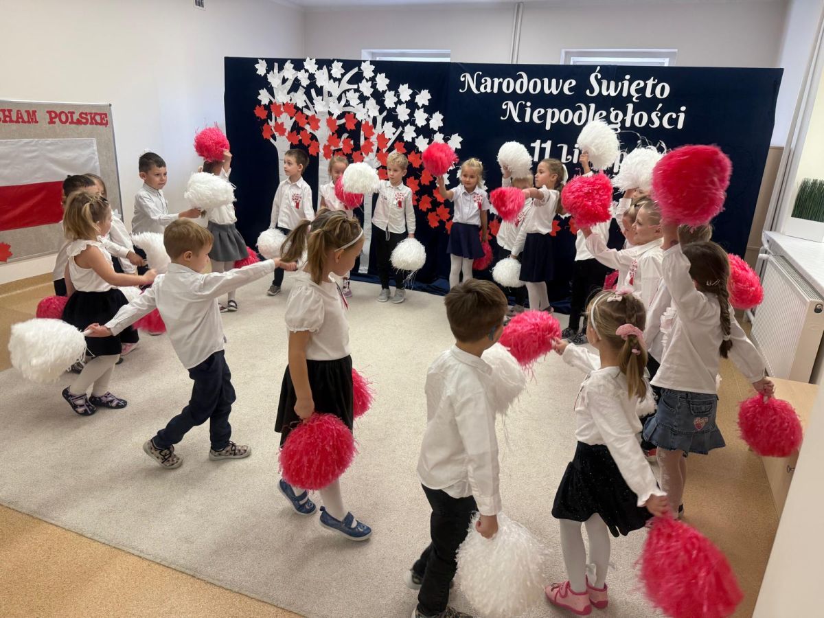 7 listopada w naszym przedszkolu odbyła się uroczysta akademia z okazji "Święta Odzyskania Niepodległości". Przedszkolacy w pełnej gali zaprezentowali piosenki, tańce oraz wiersze nawiązujące tematyką do naszej Ojczyzny - barw narodowych, godła, flagi oraz ważnych wydarzeń związanych z Polską. Na zakończenie wszyscy bardzo uroczyście odśpiewali "Mazurek Dąbrowskiego" - hymn Polski.. Cała uroczystość miała bardzo podniosły charakter. Na twarzach dzieci widać było skupienie i zrozumienie ważności tego święta.